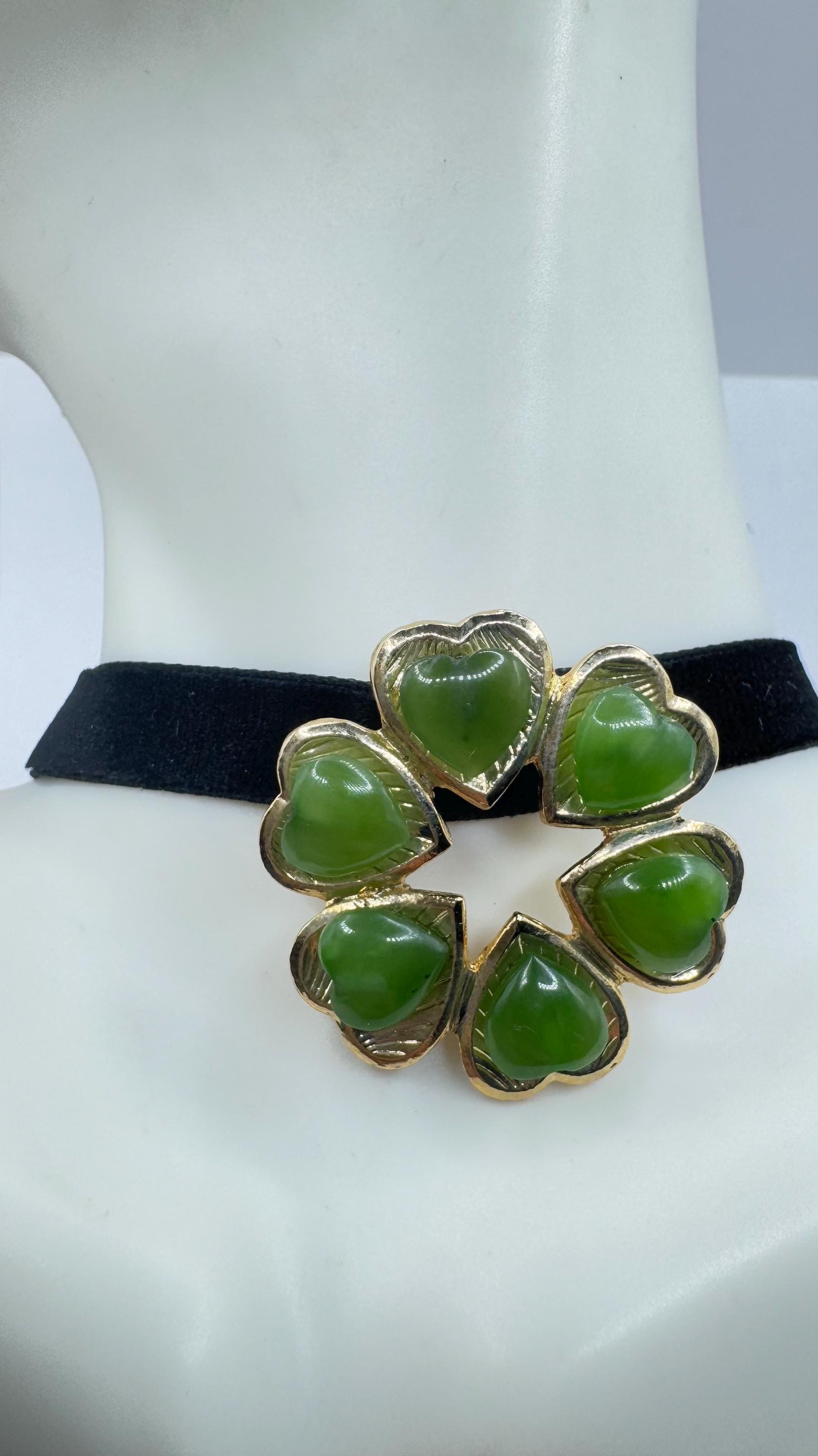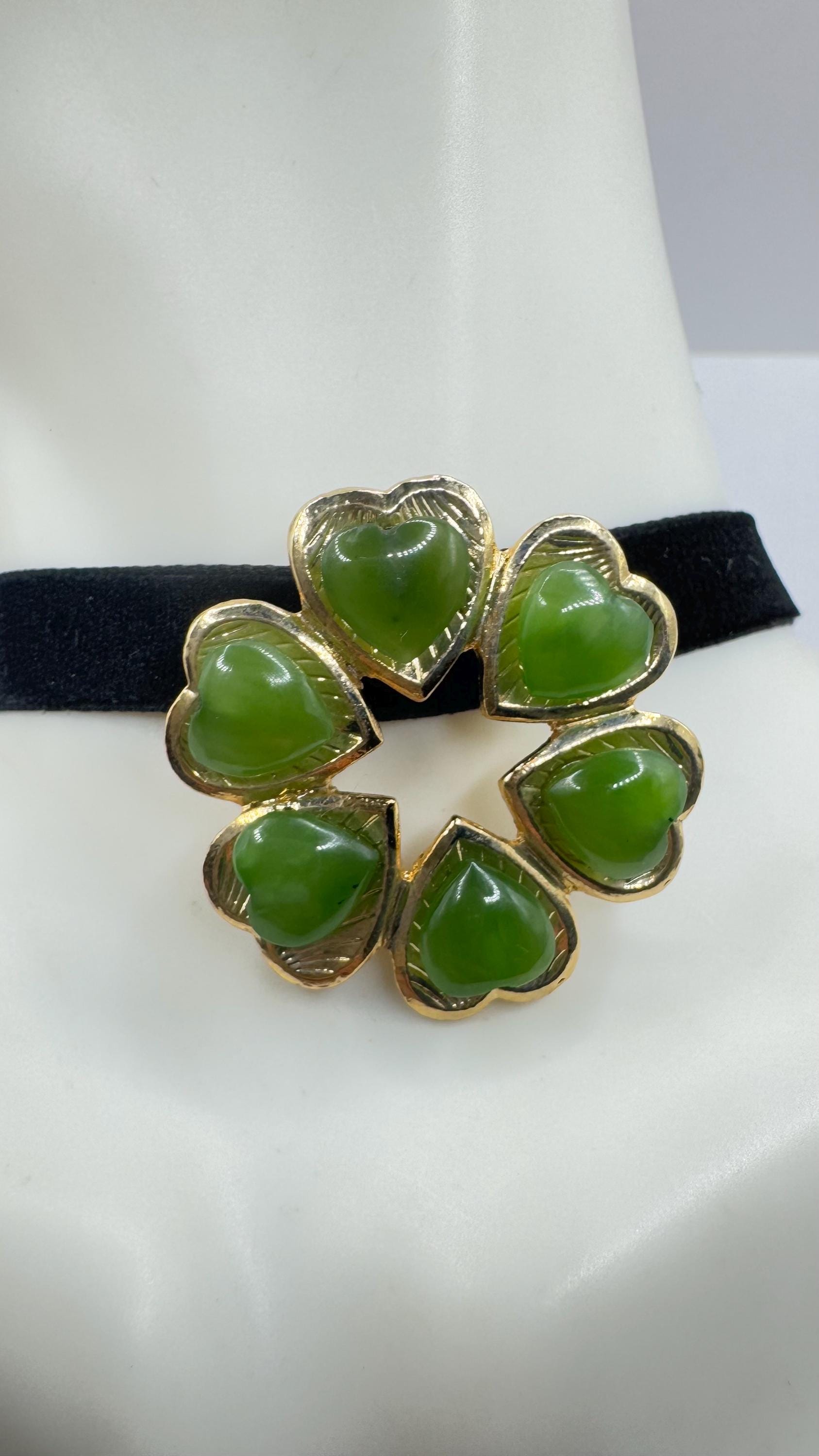 Vintage Green Jade Yellow Gold Filled Brooch Pin