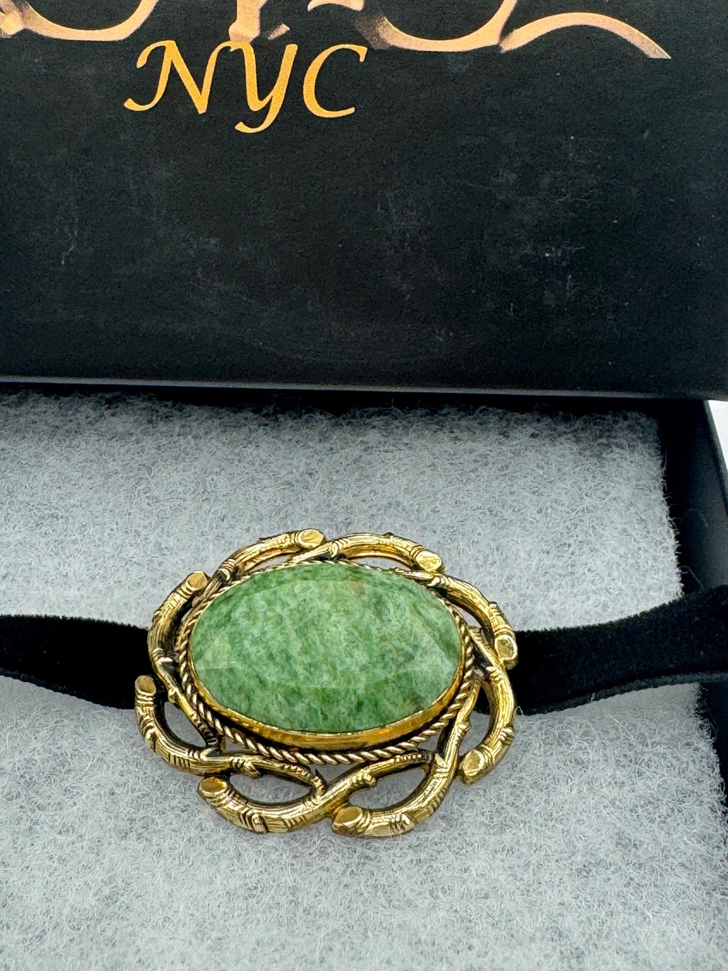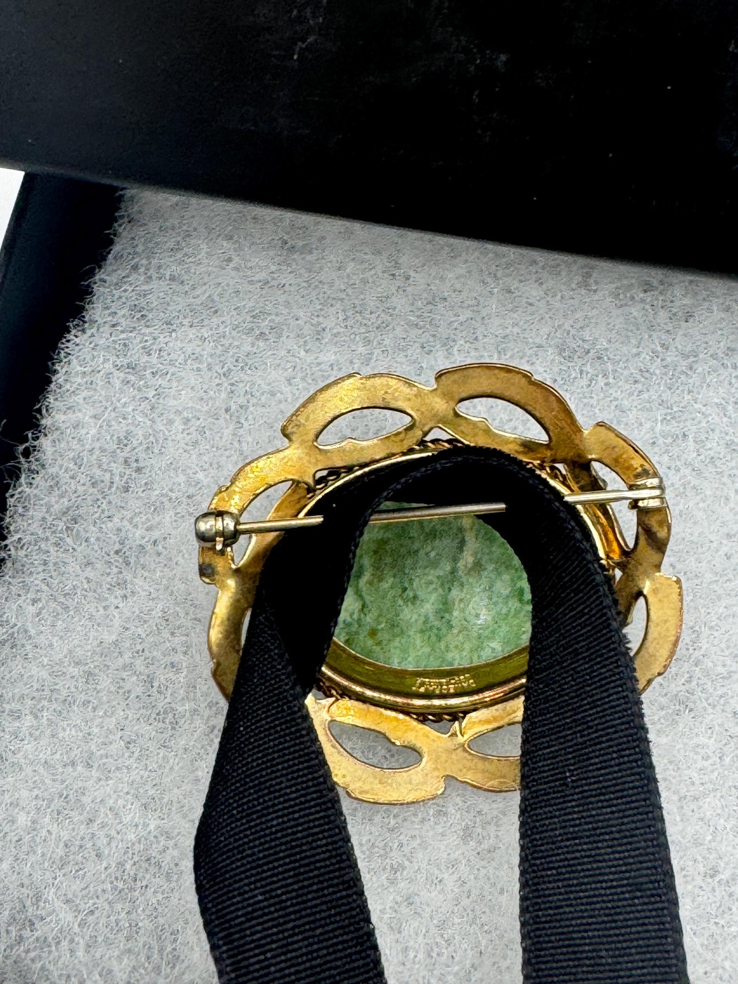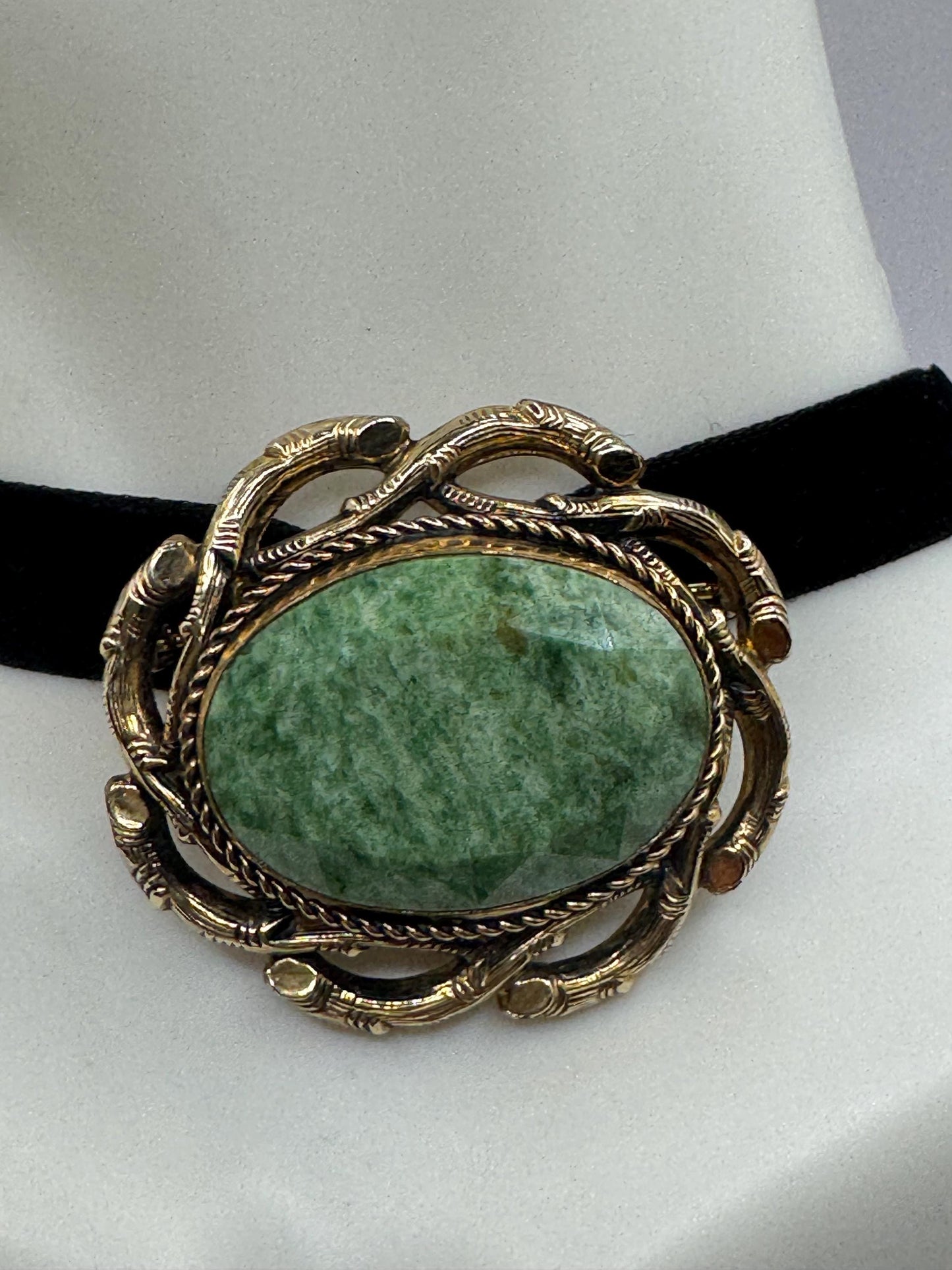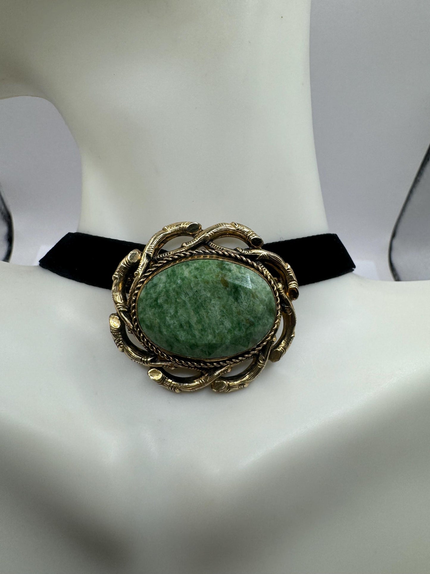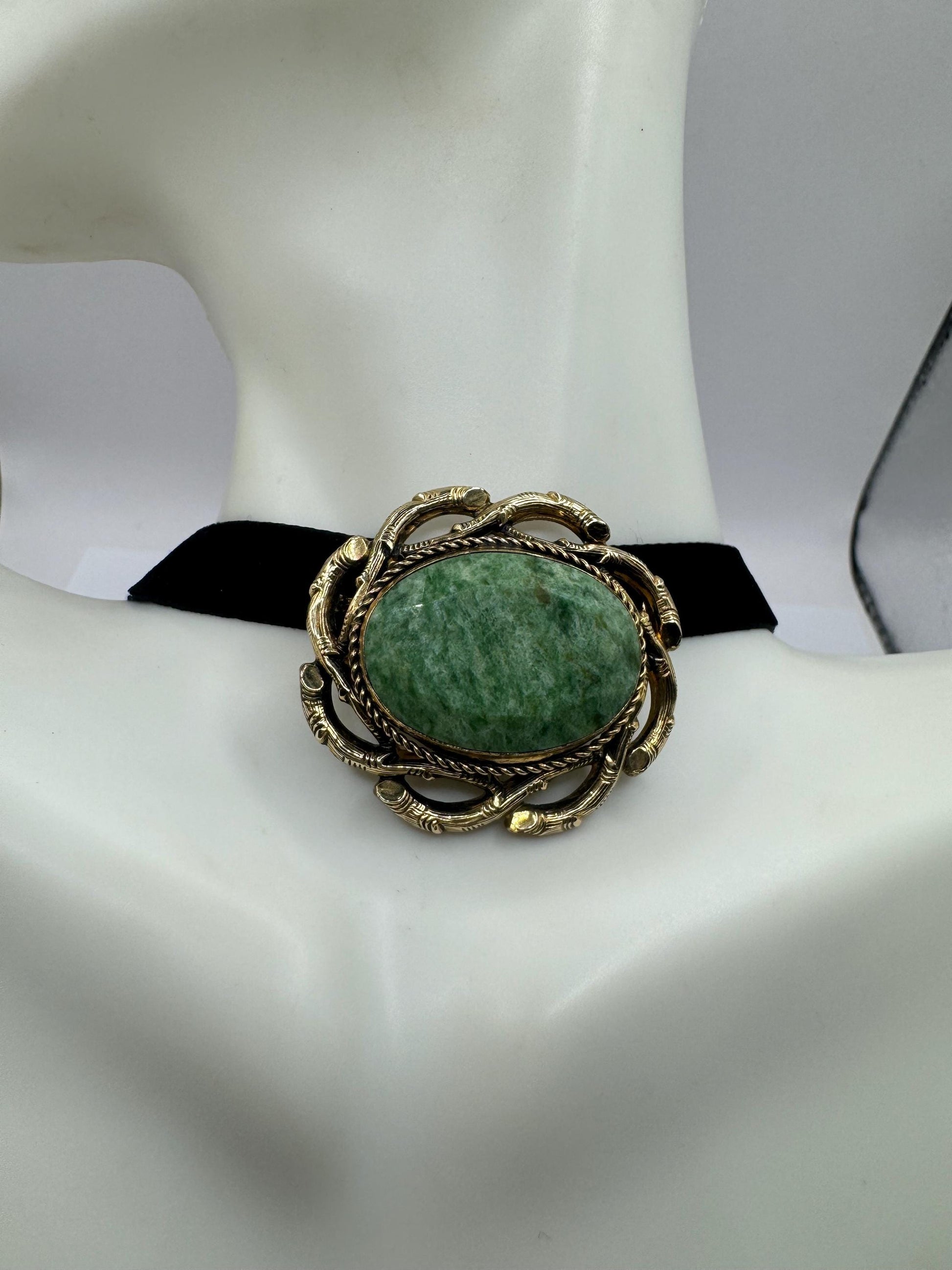 Vintage Green Jade Yellow Gold Filled Brooch Pin