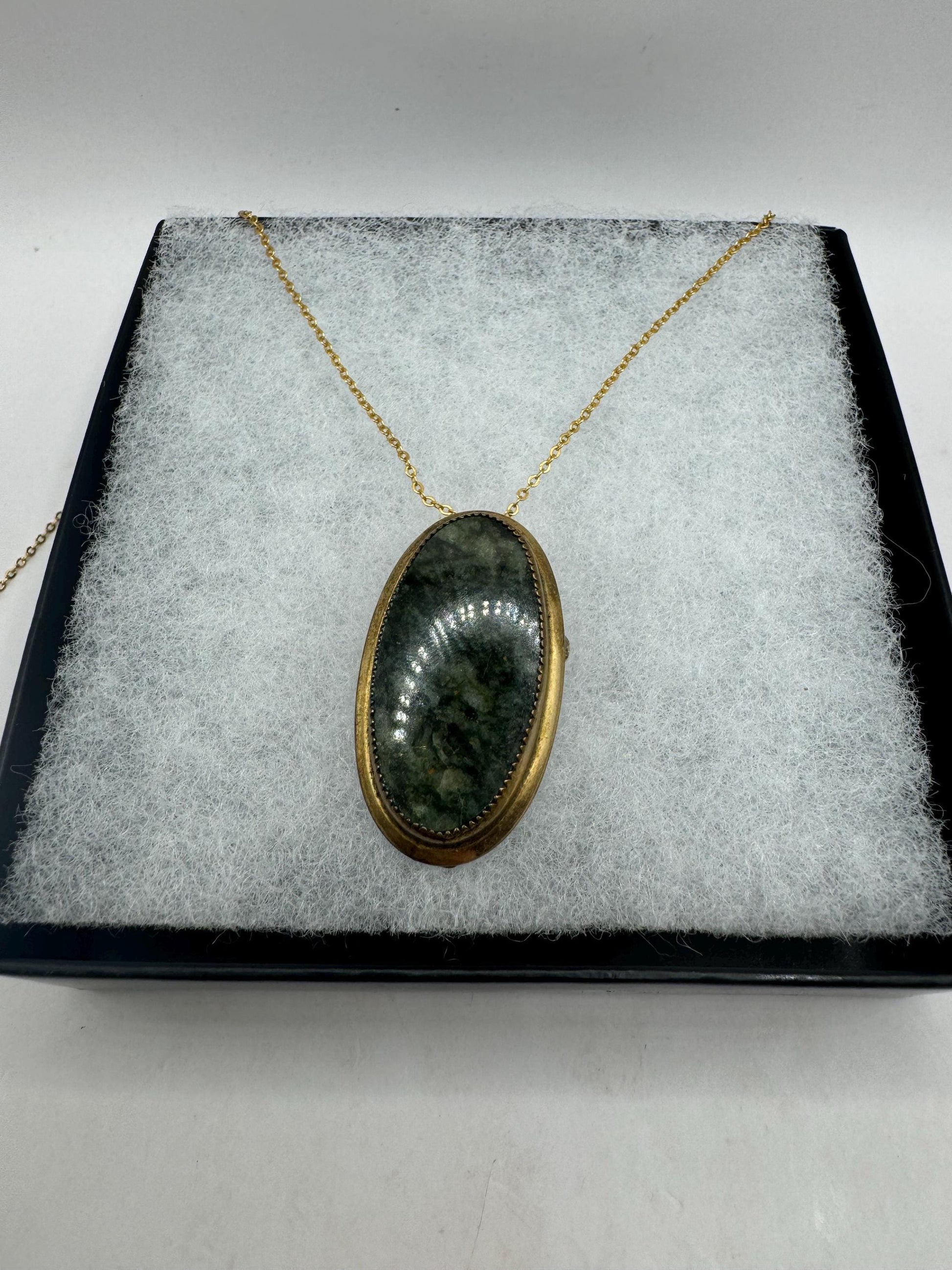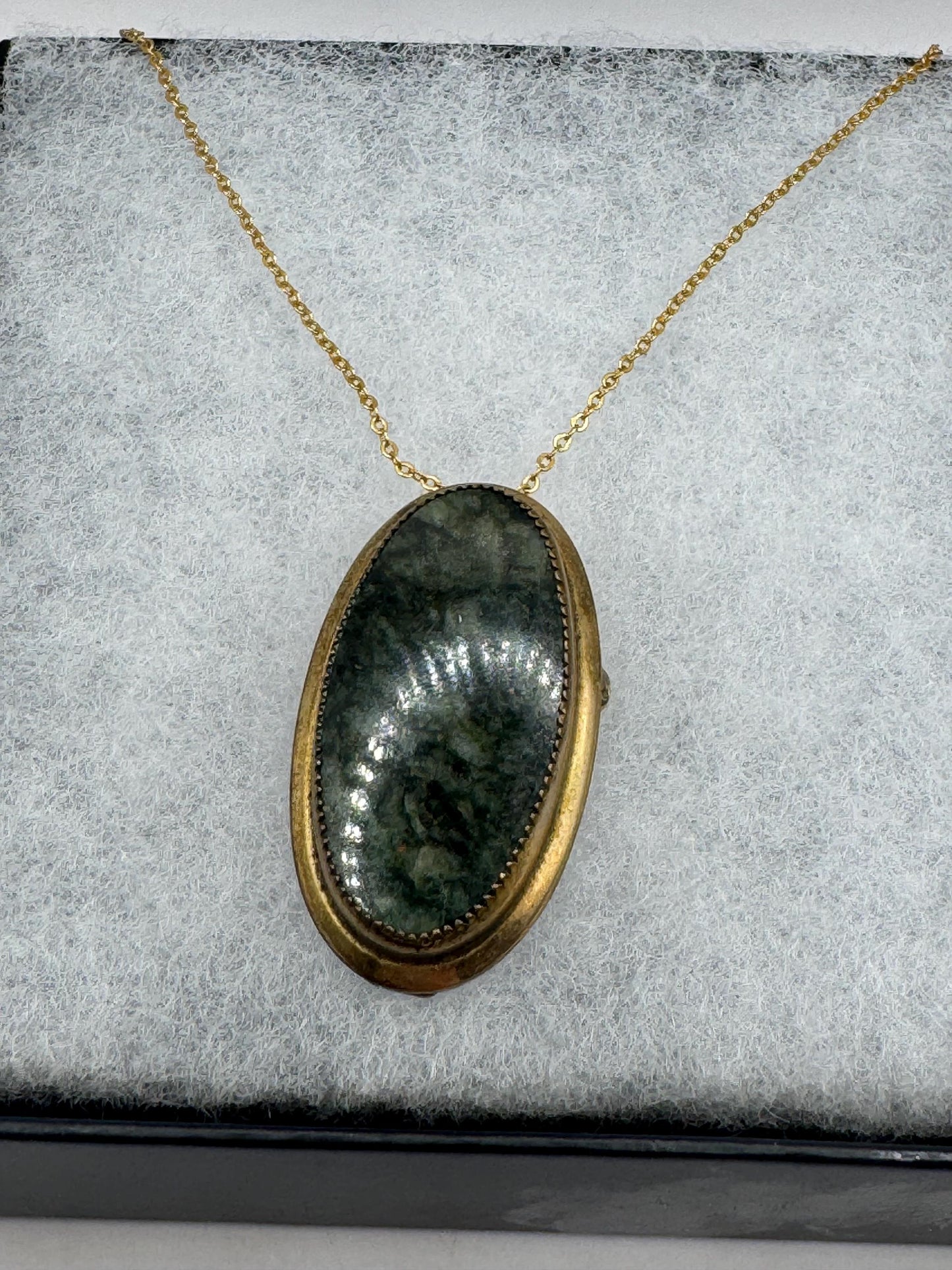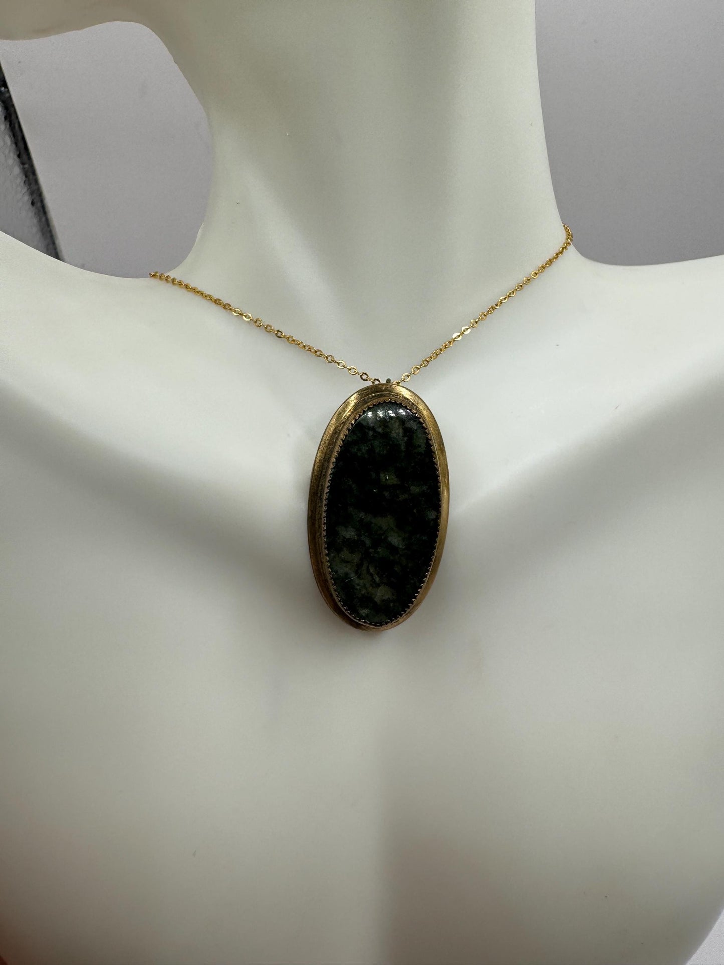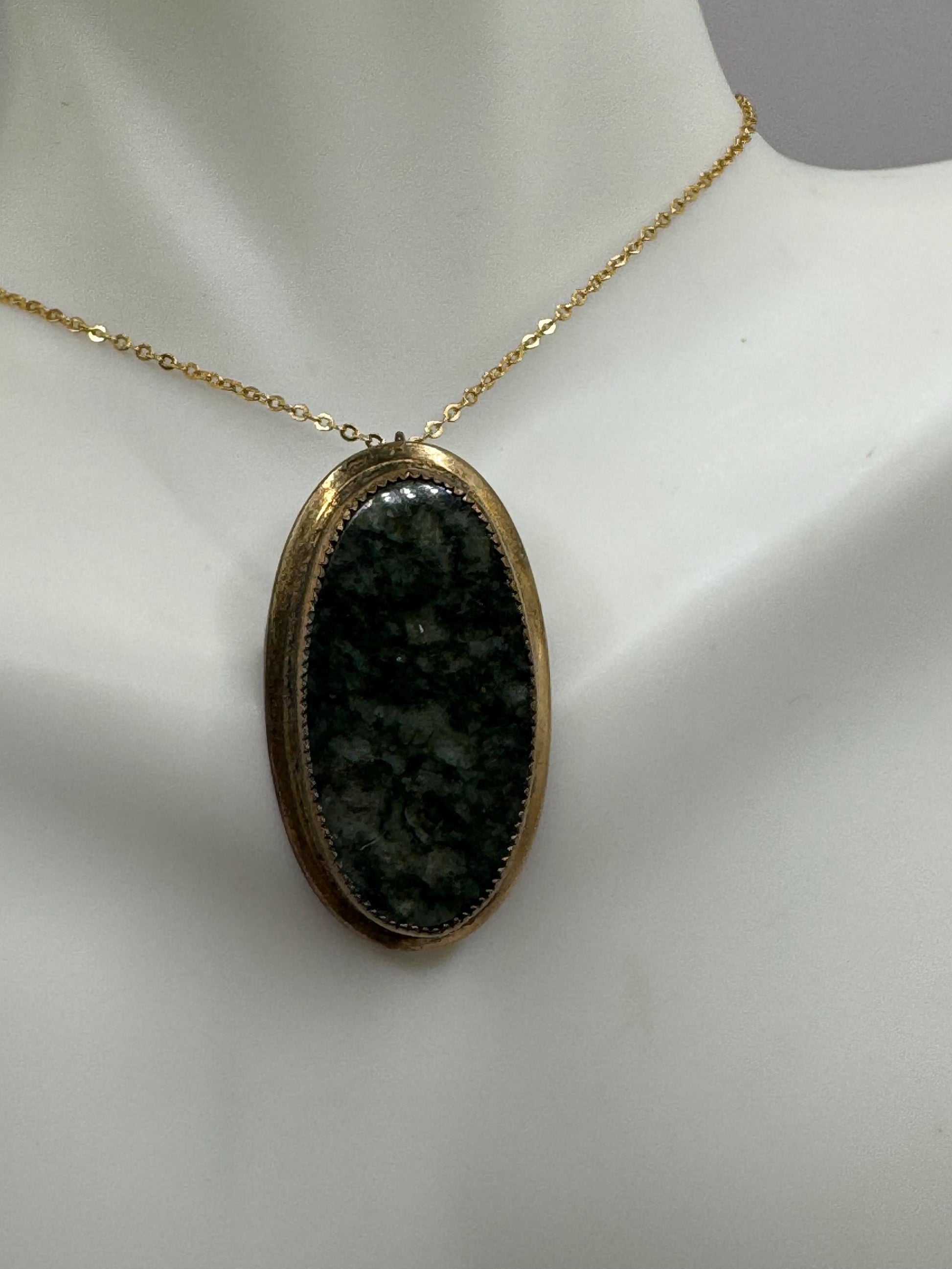 Vintage Green Jade Yellow Gold Filled Lucky Necklace pin