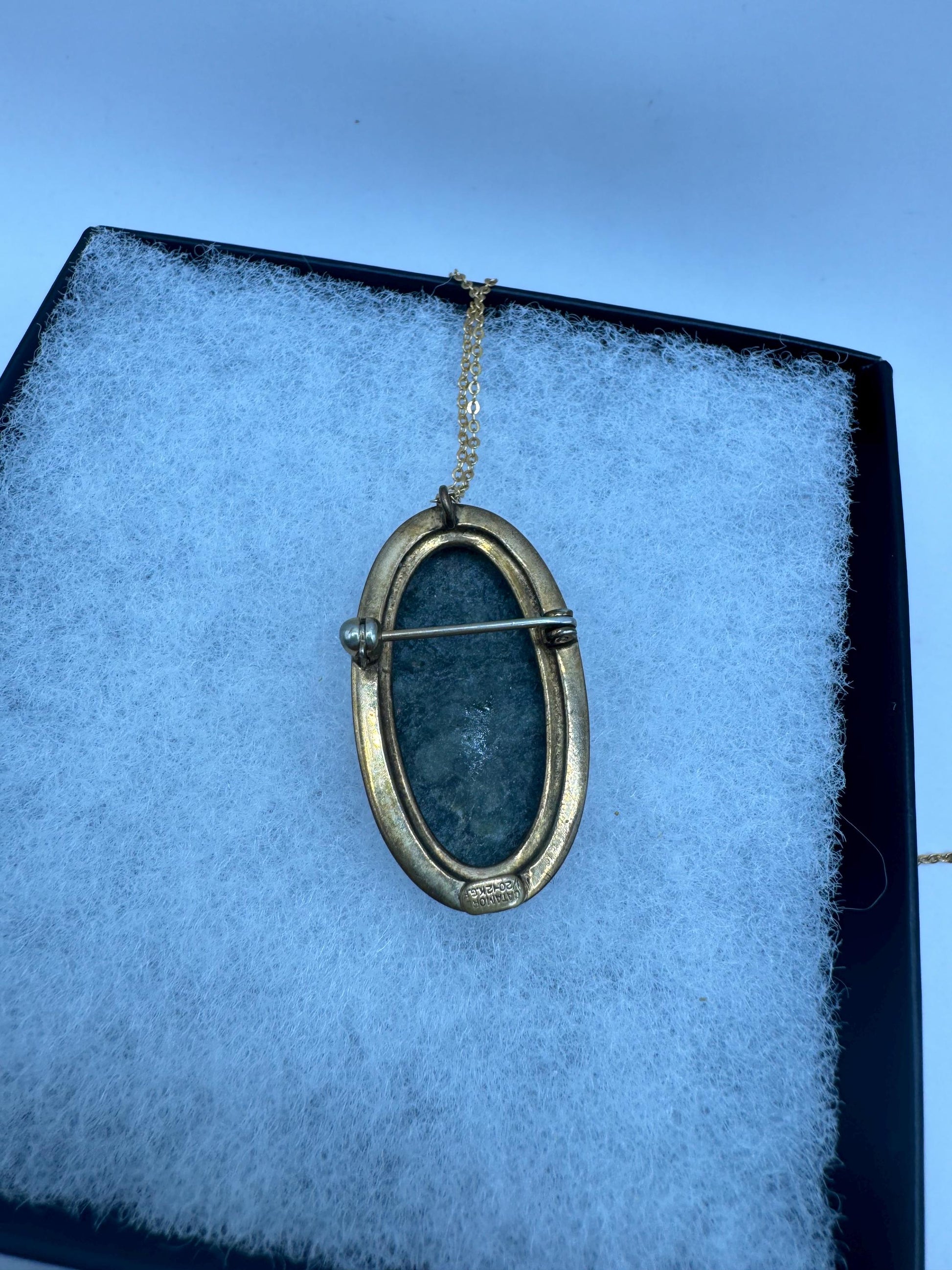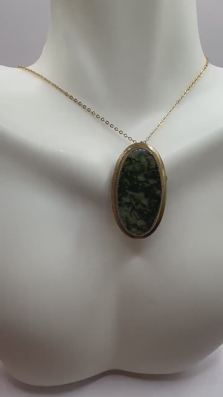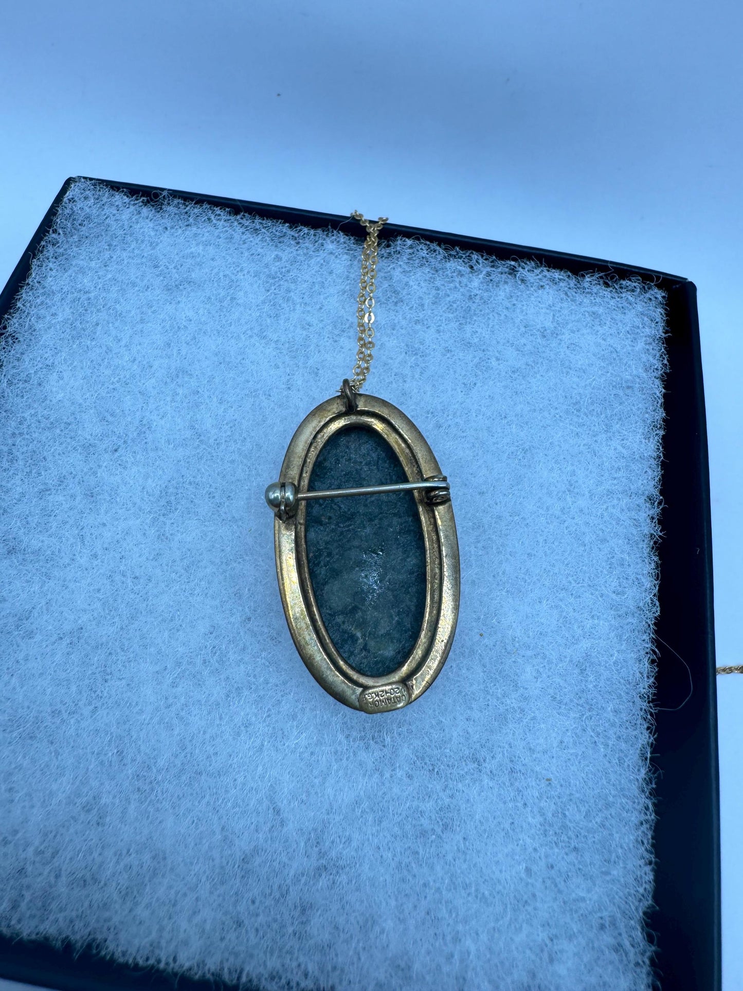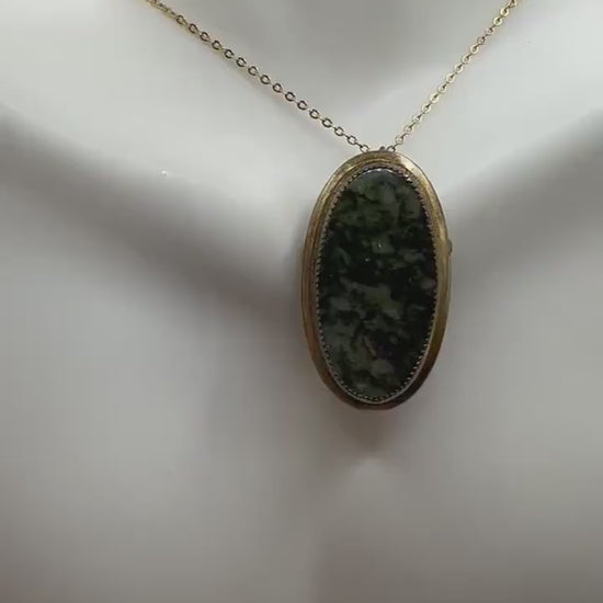 Vintage Green Jade Yellow Gold Filled Lucky Necklace pin