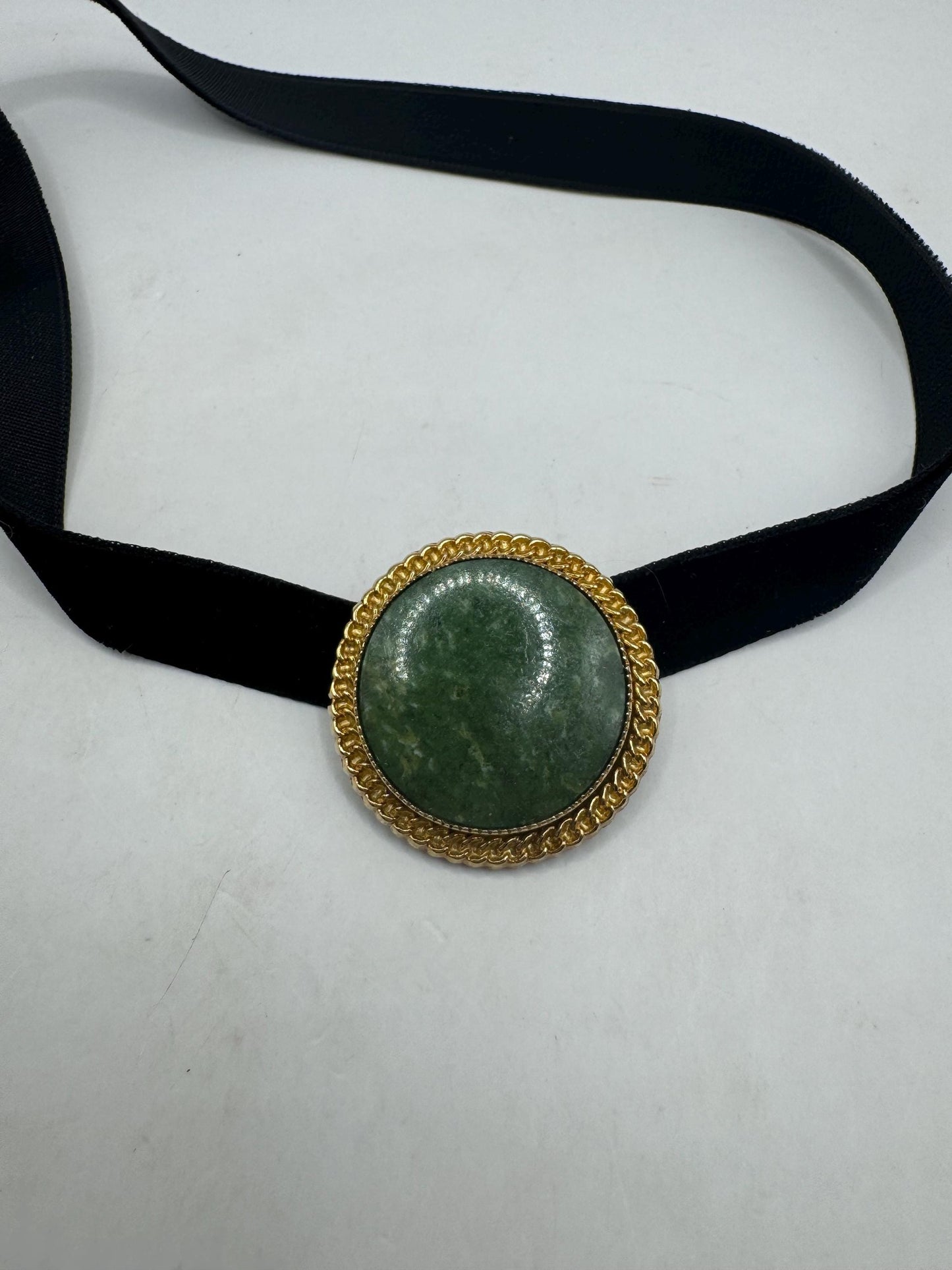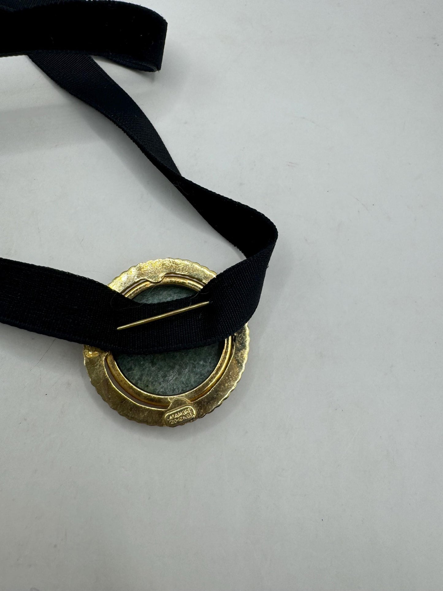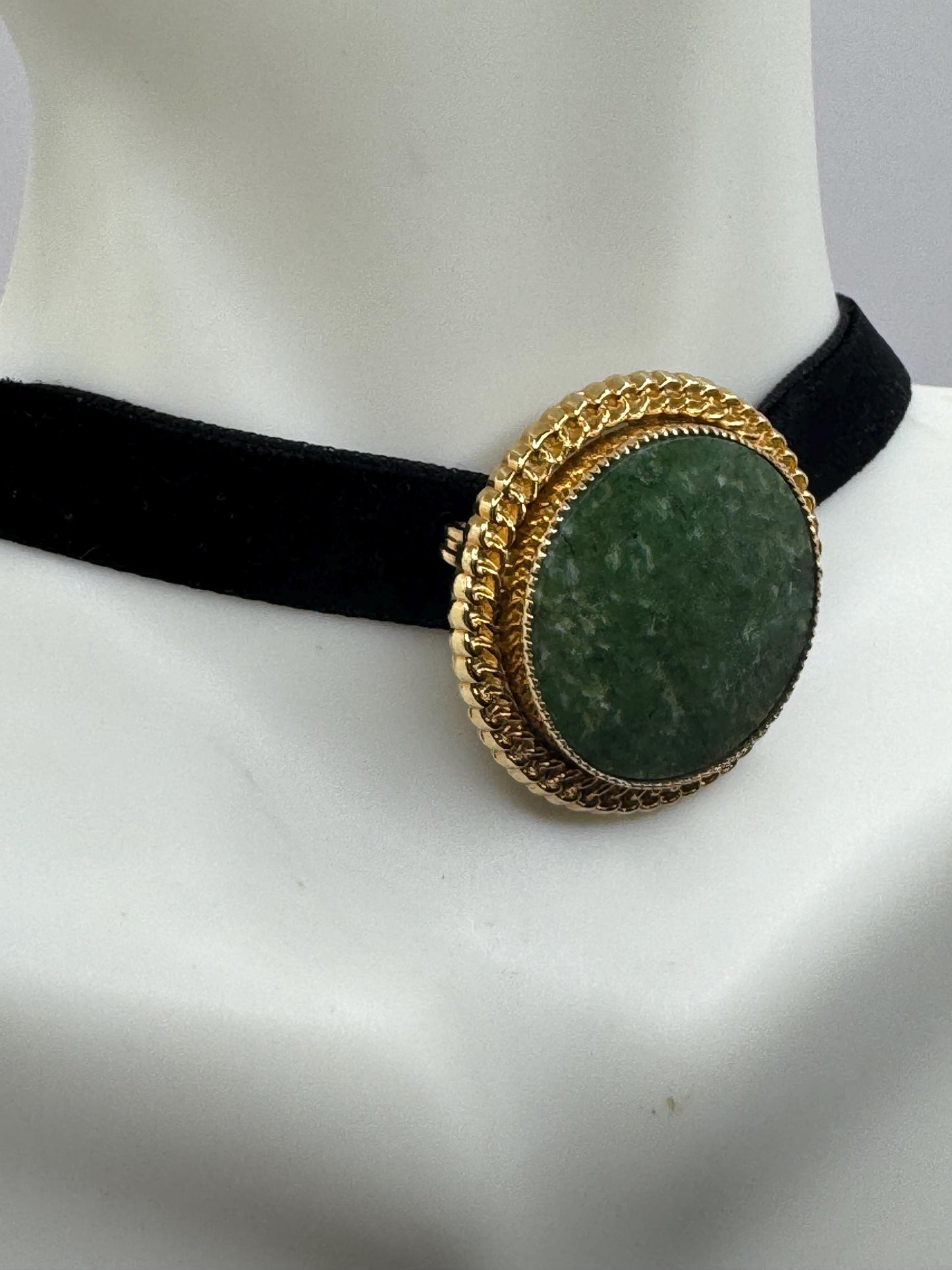 Vintage Green Jade Yellow Gold Filled Brooch Pin