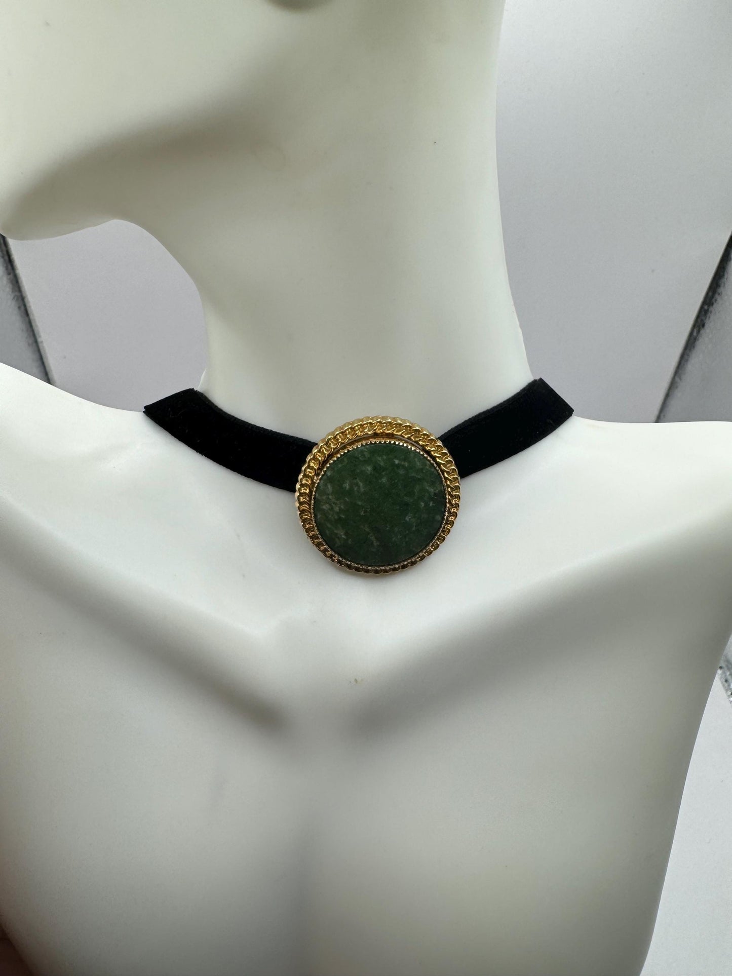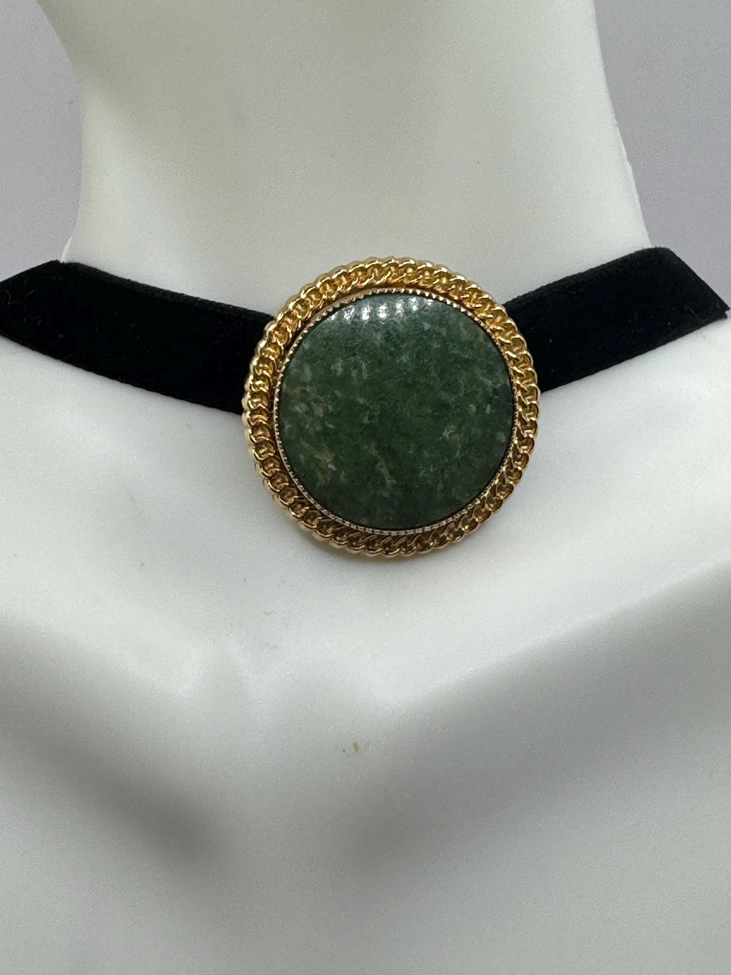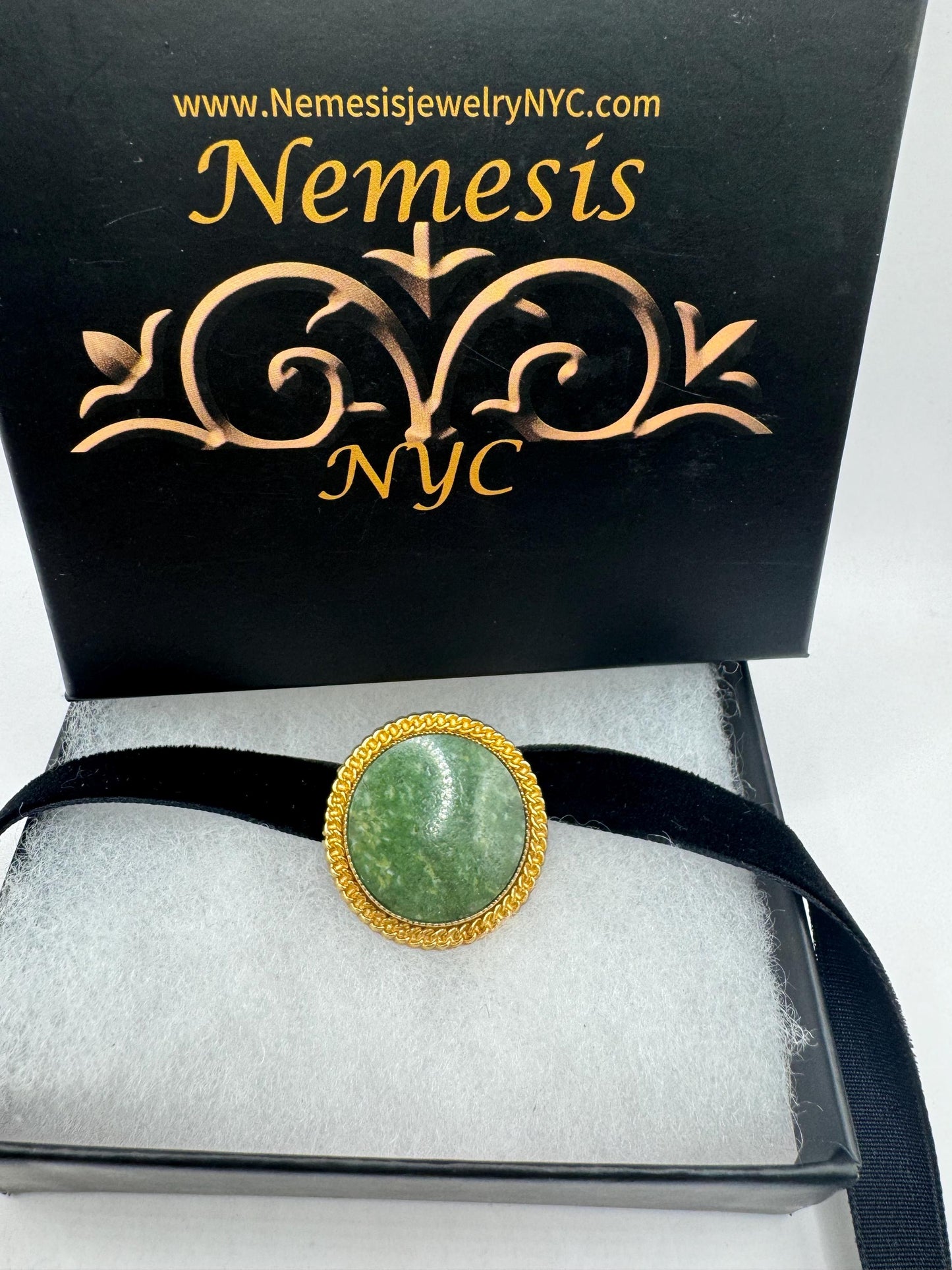 Vintage Green Jade Yellow Gold Filled Brooch Pin