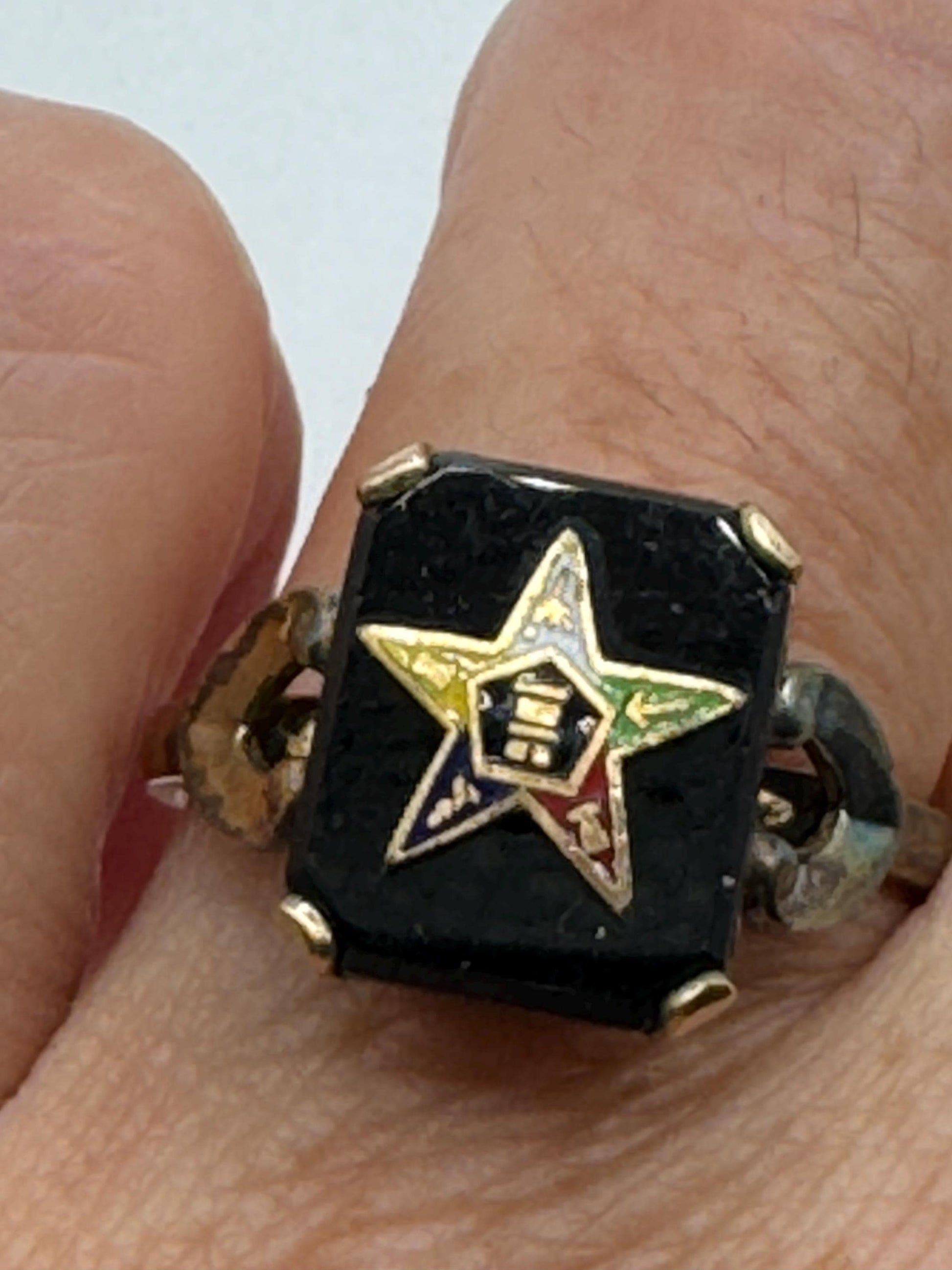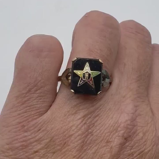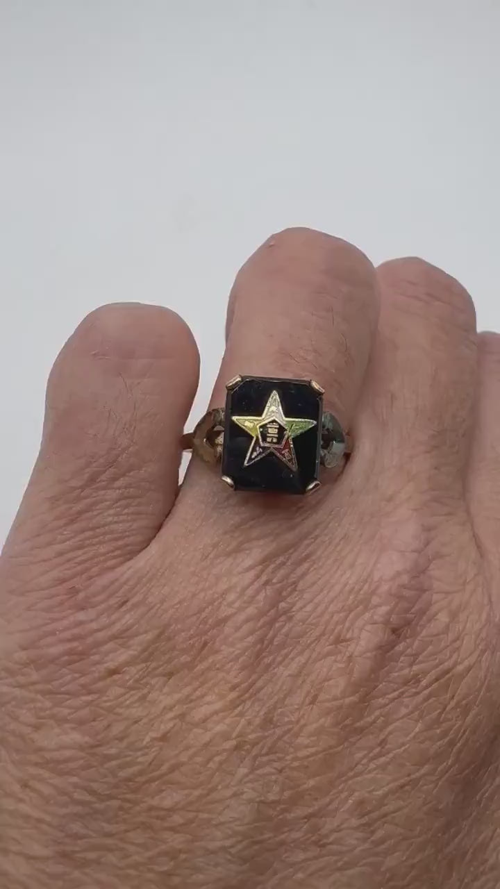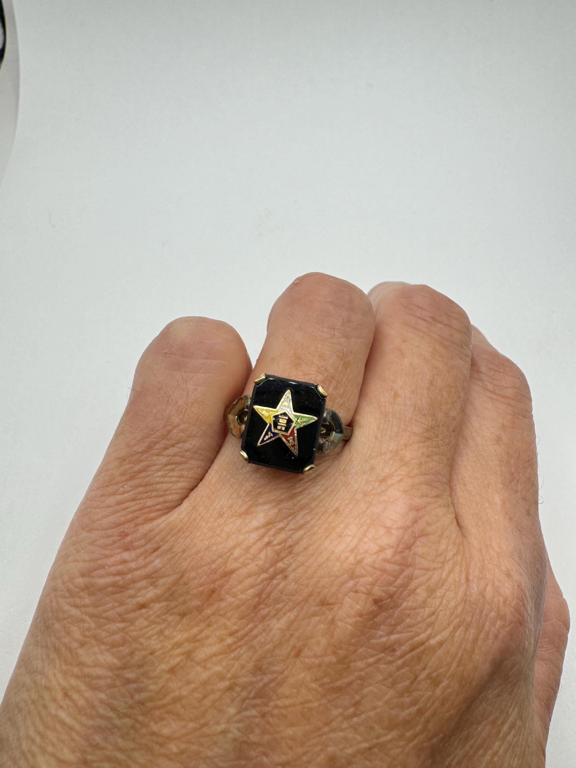 Vintage Lucky Eastern Star Free Mason Ring Gold Filled Enameled with crystal