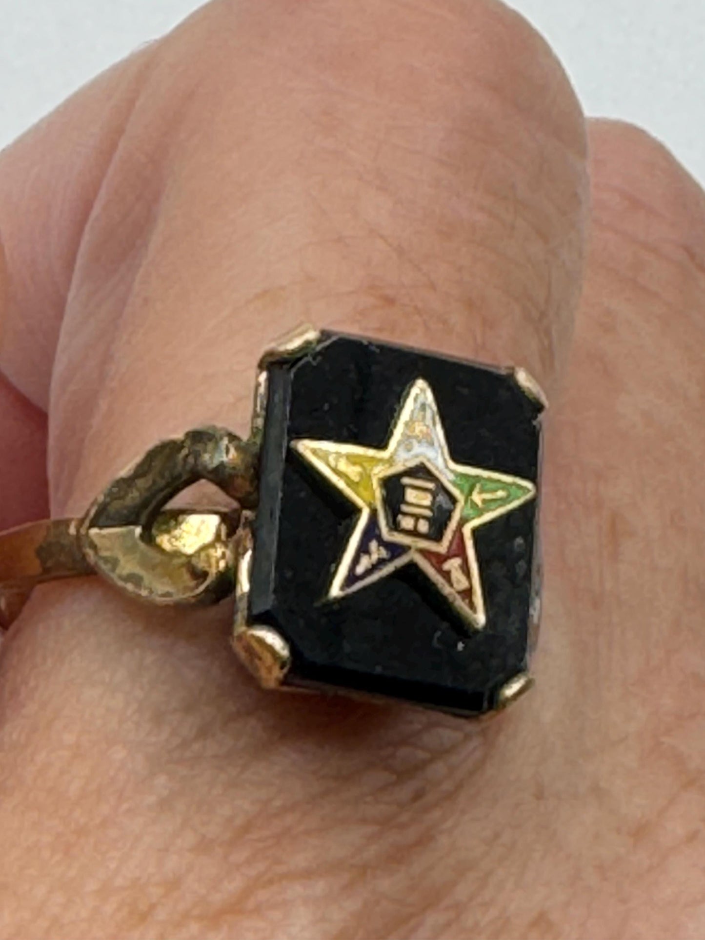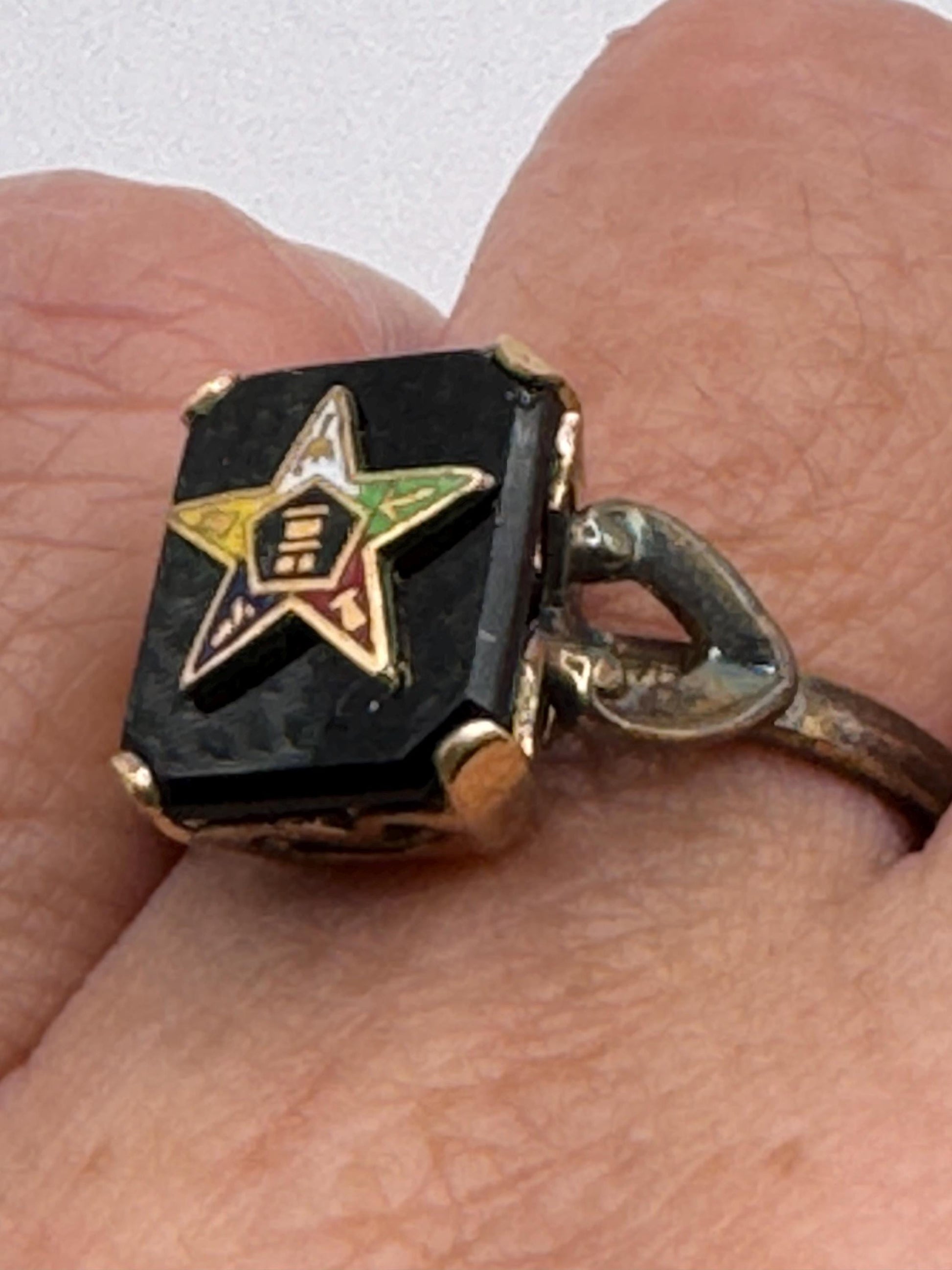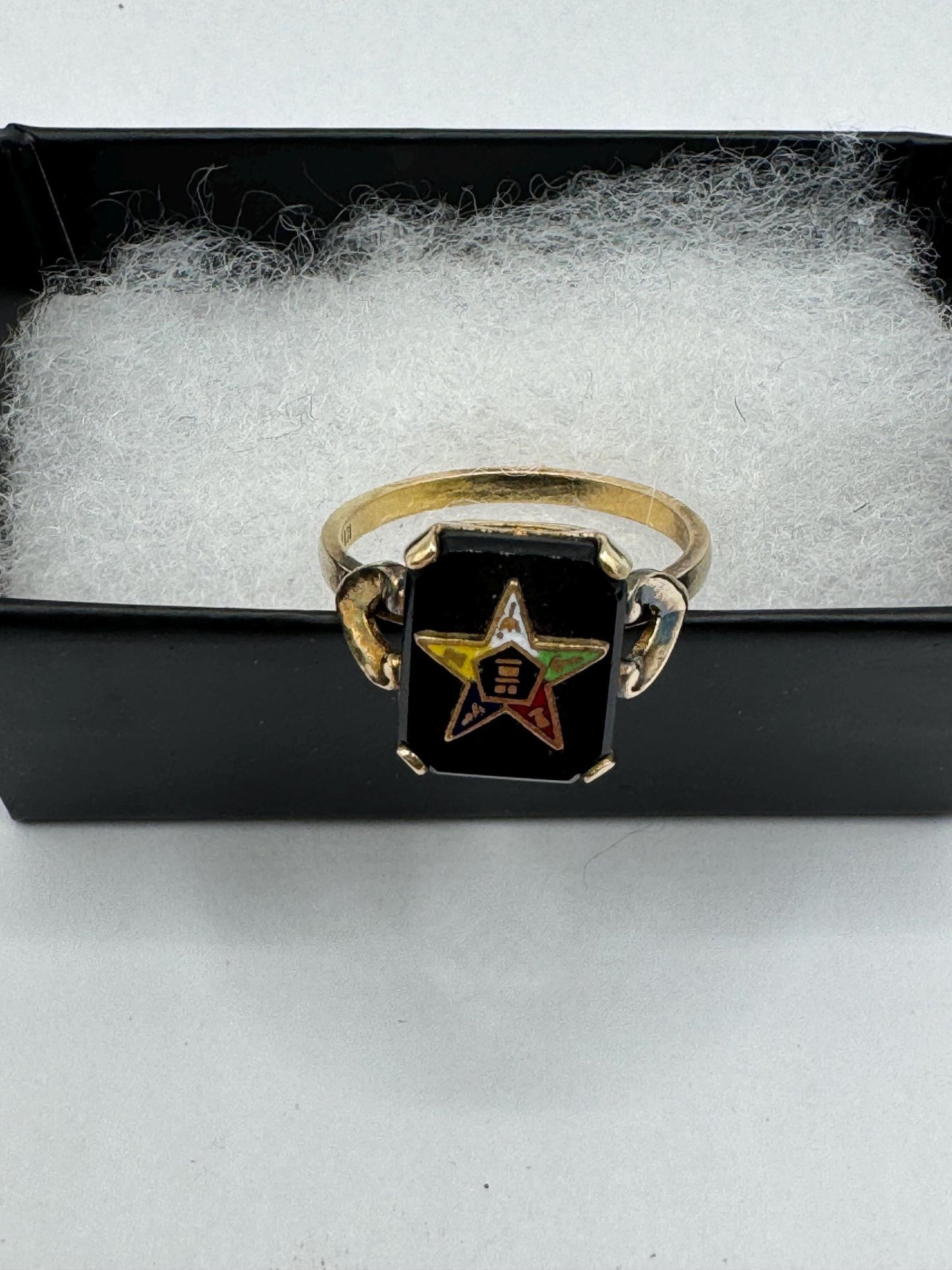 Vintage Lucky Eastern Star Free Mason Ring Gold Filled Enameled with crystal