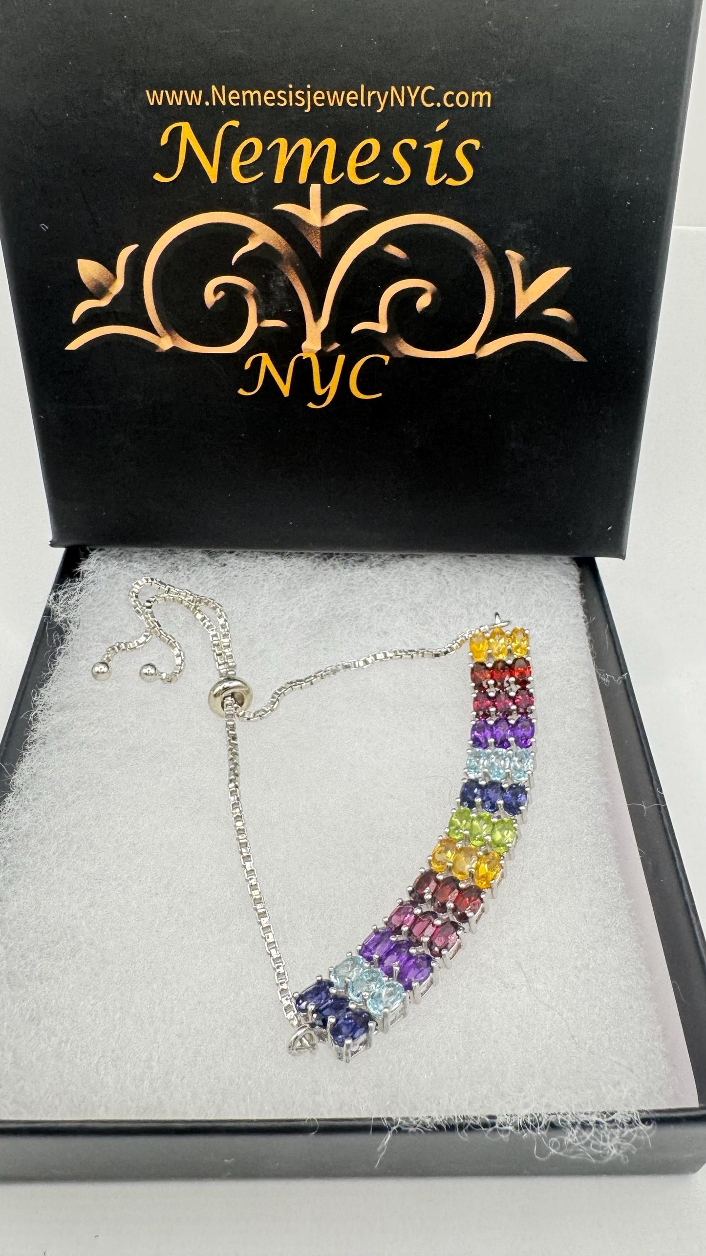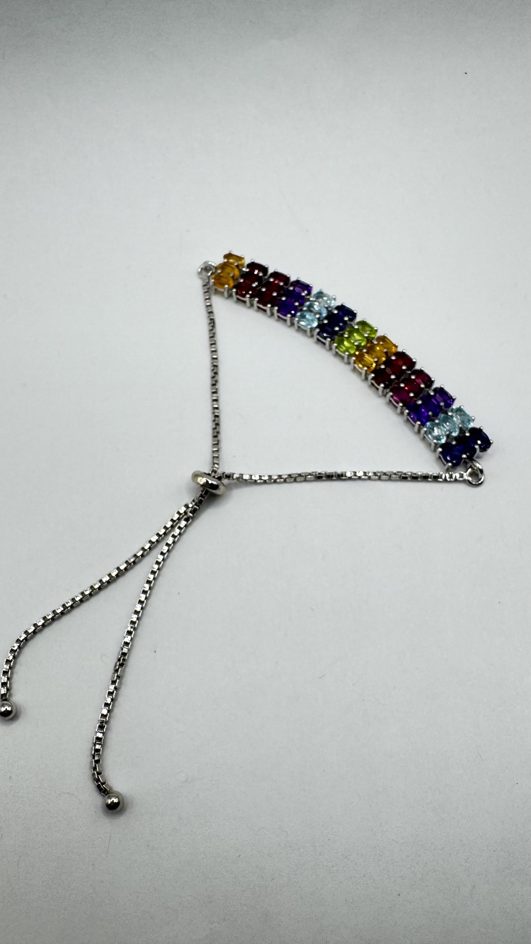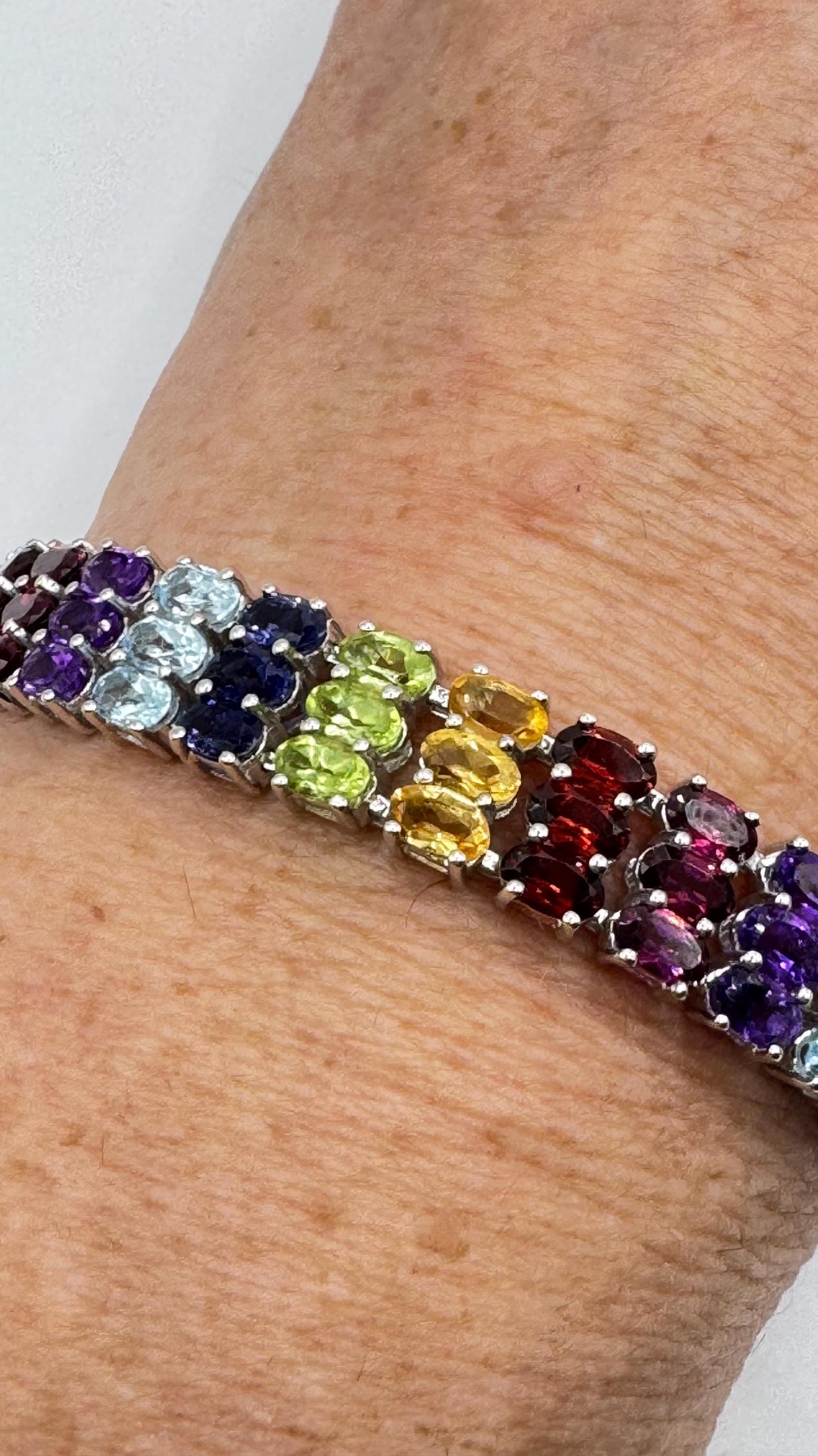 Vintage Mixed Gemstone 925 Sterling Silver Tennis Bracelet