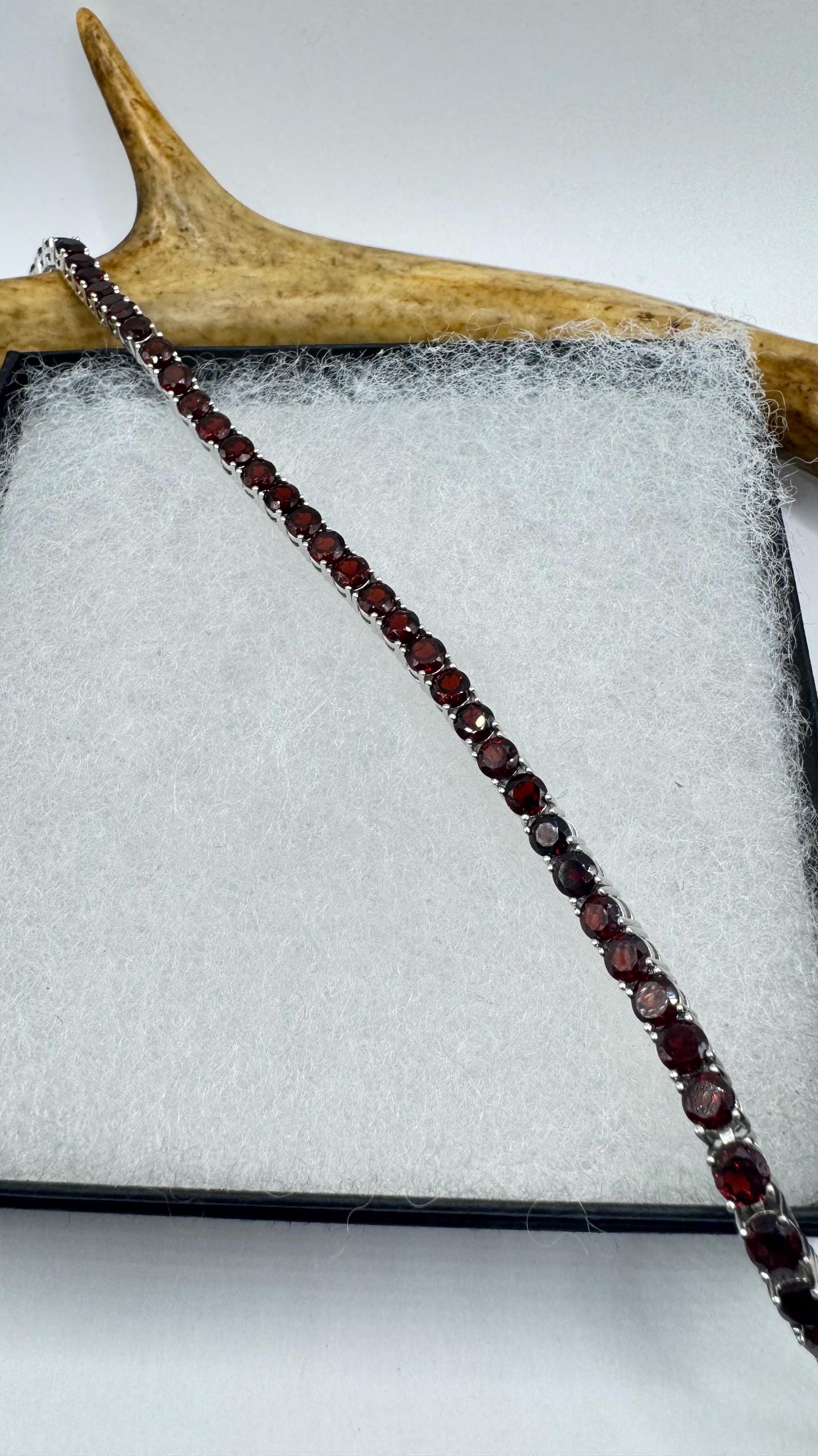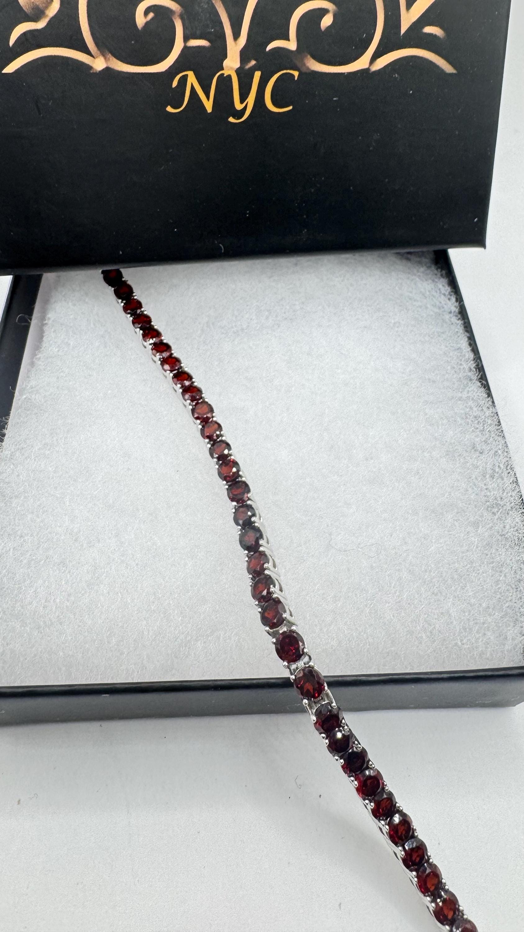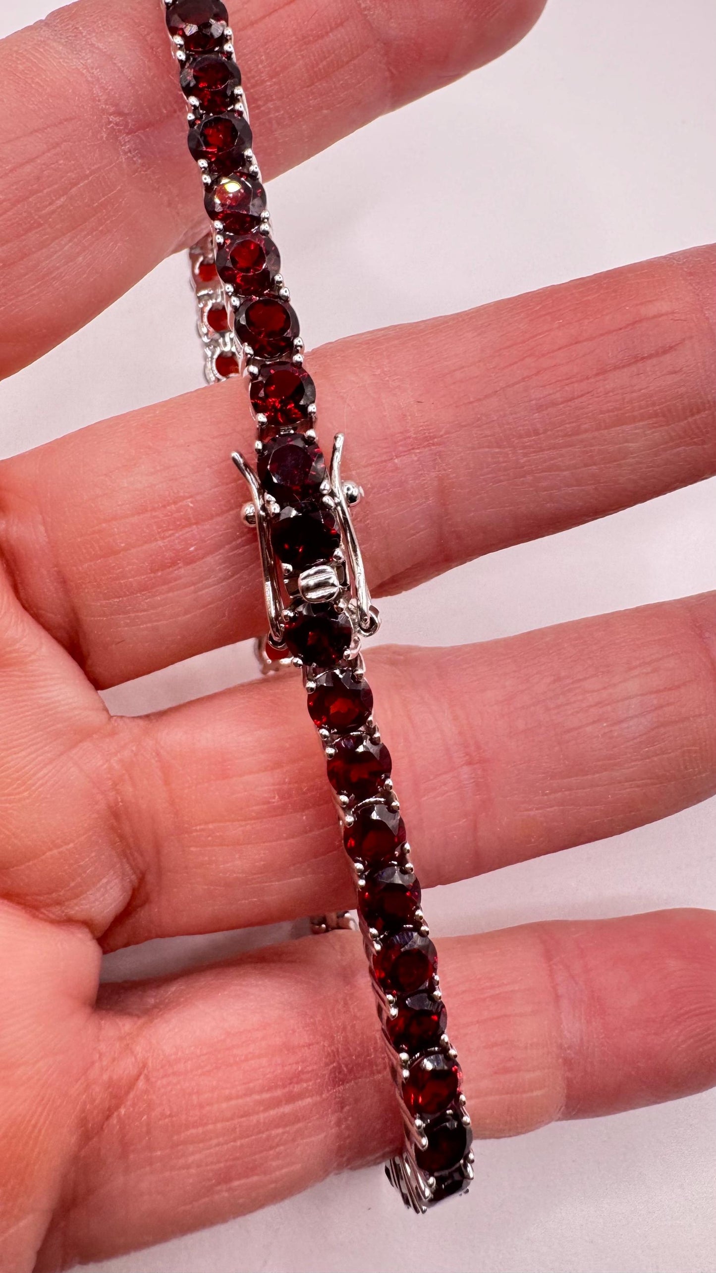 Vintage Red Bohemian Garnet Tennis Bracelet in 925 Sterling Silver