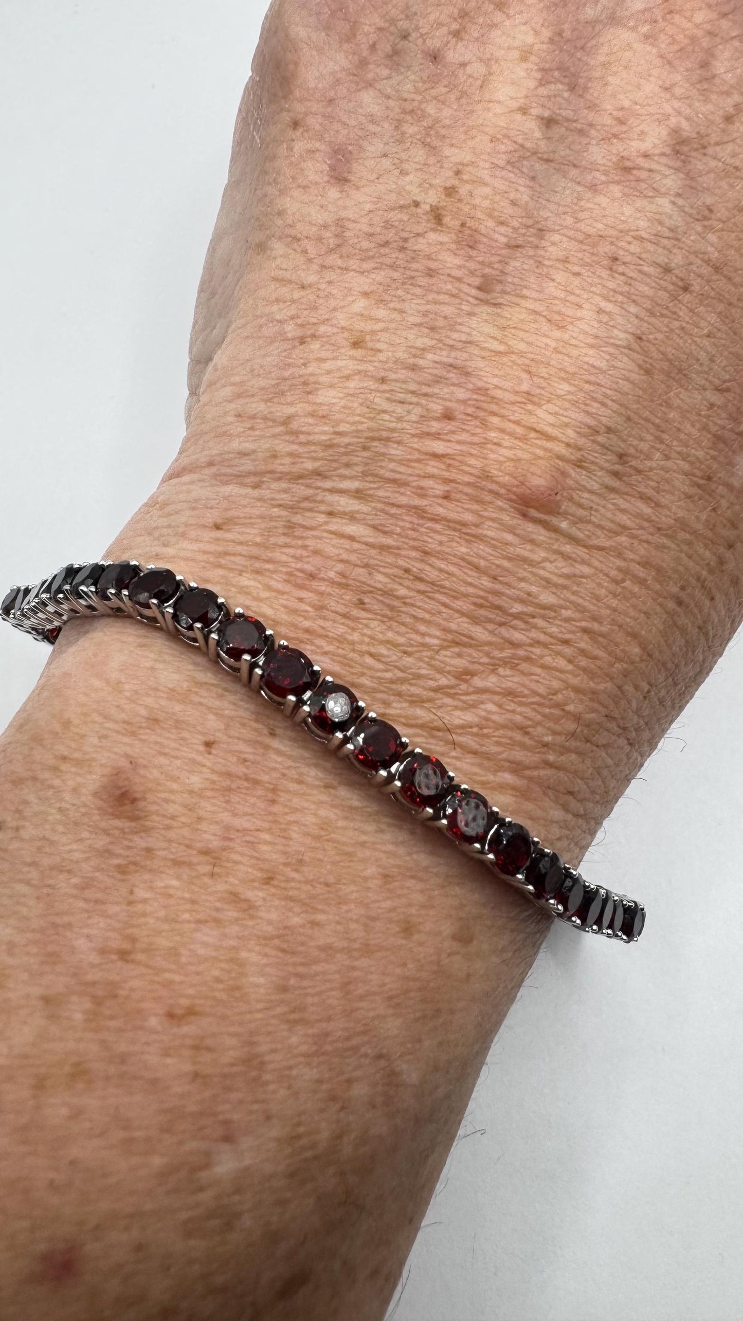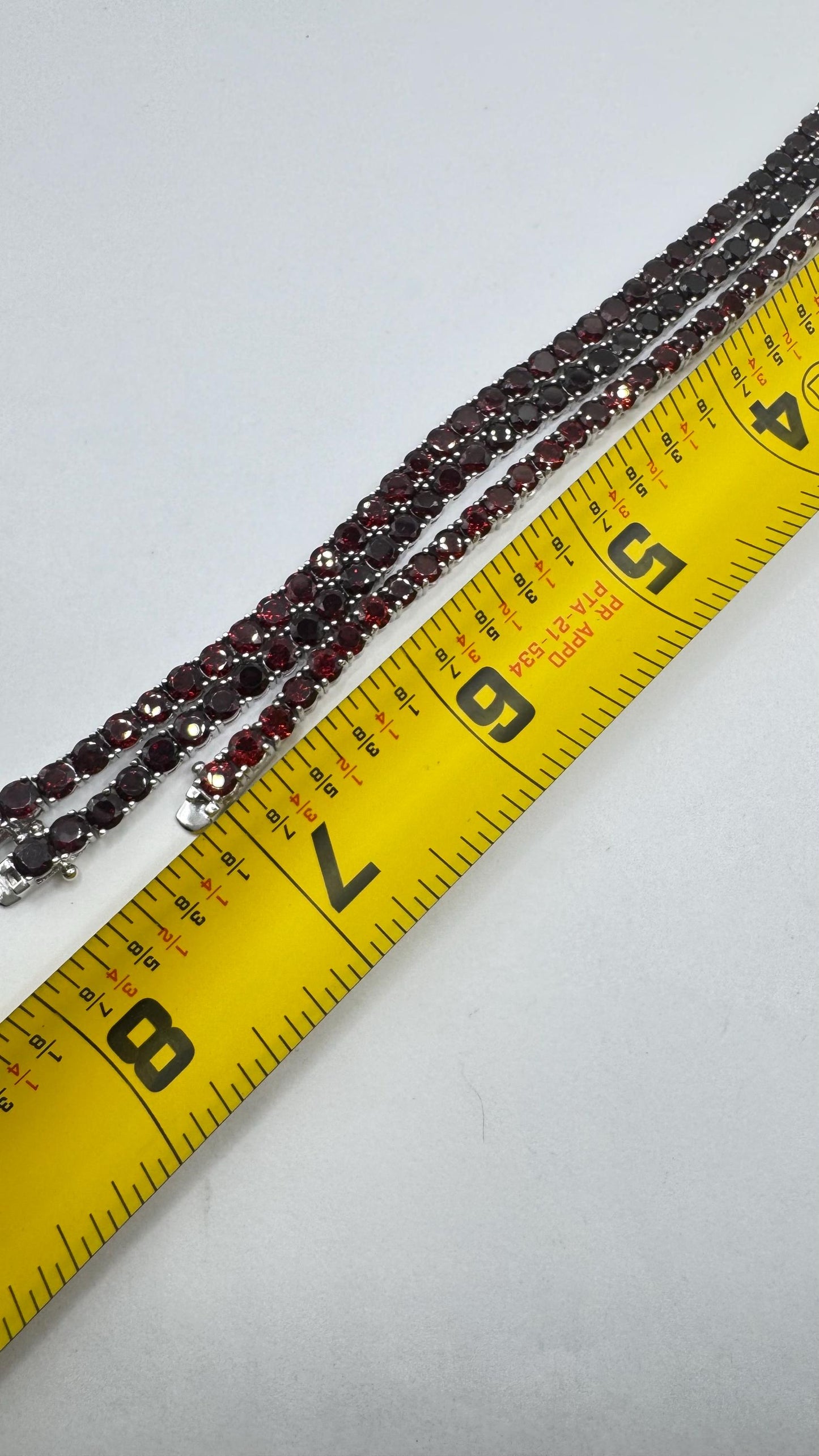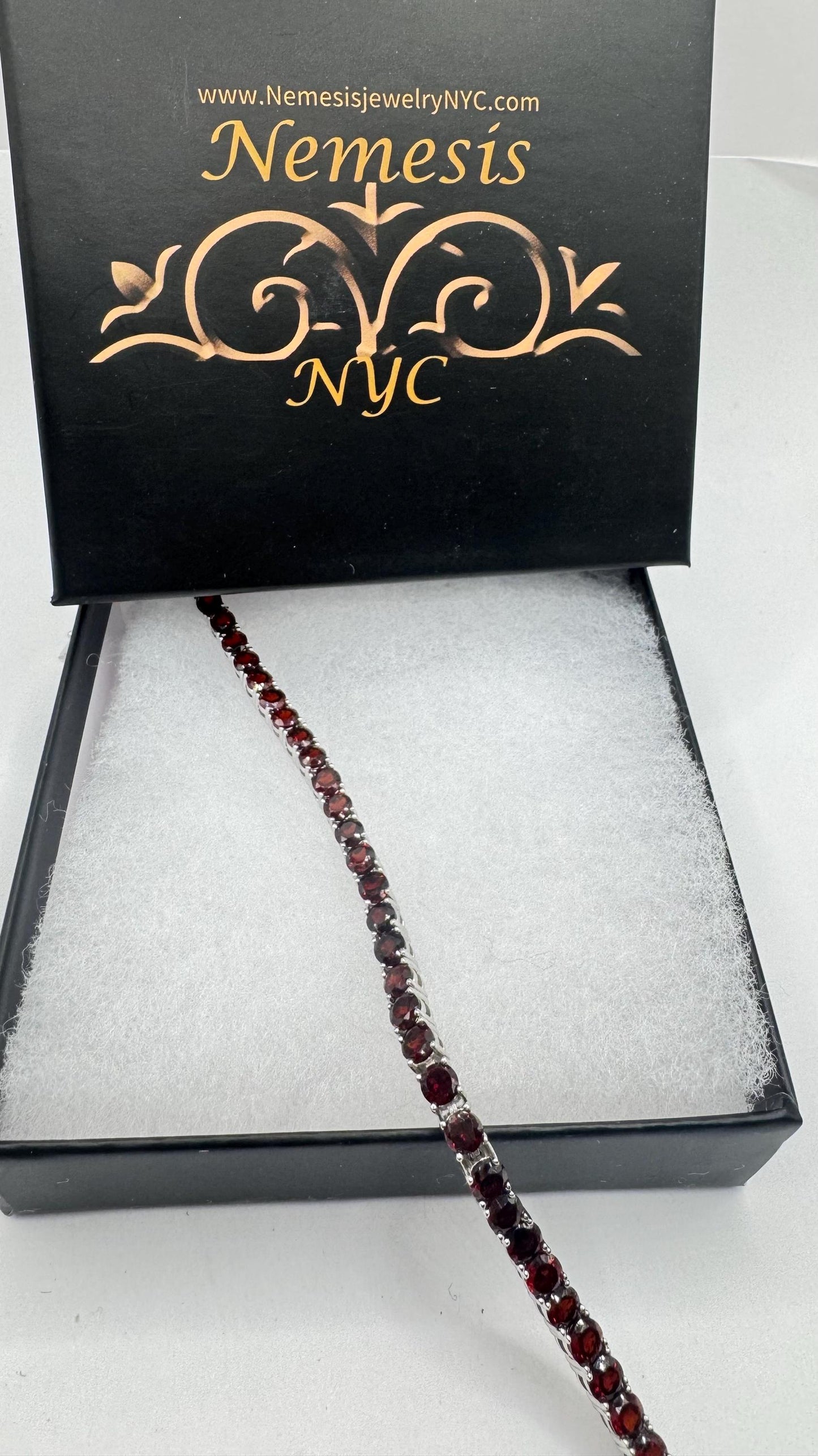 Vintage Red Bohemian Garnet Tennis Bracelet in 925 Sterling Silver