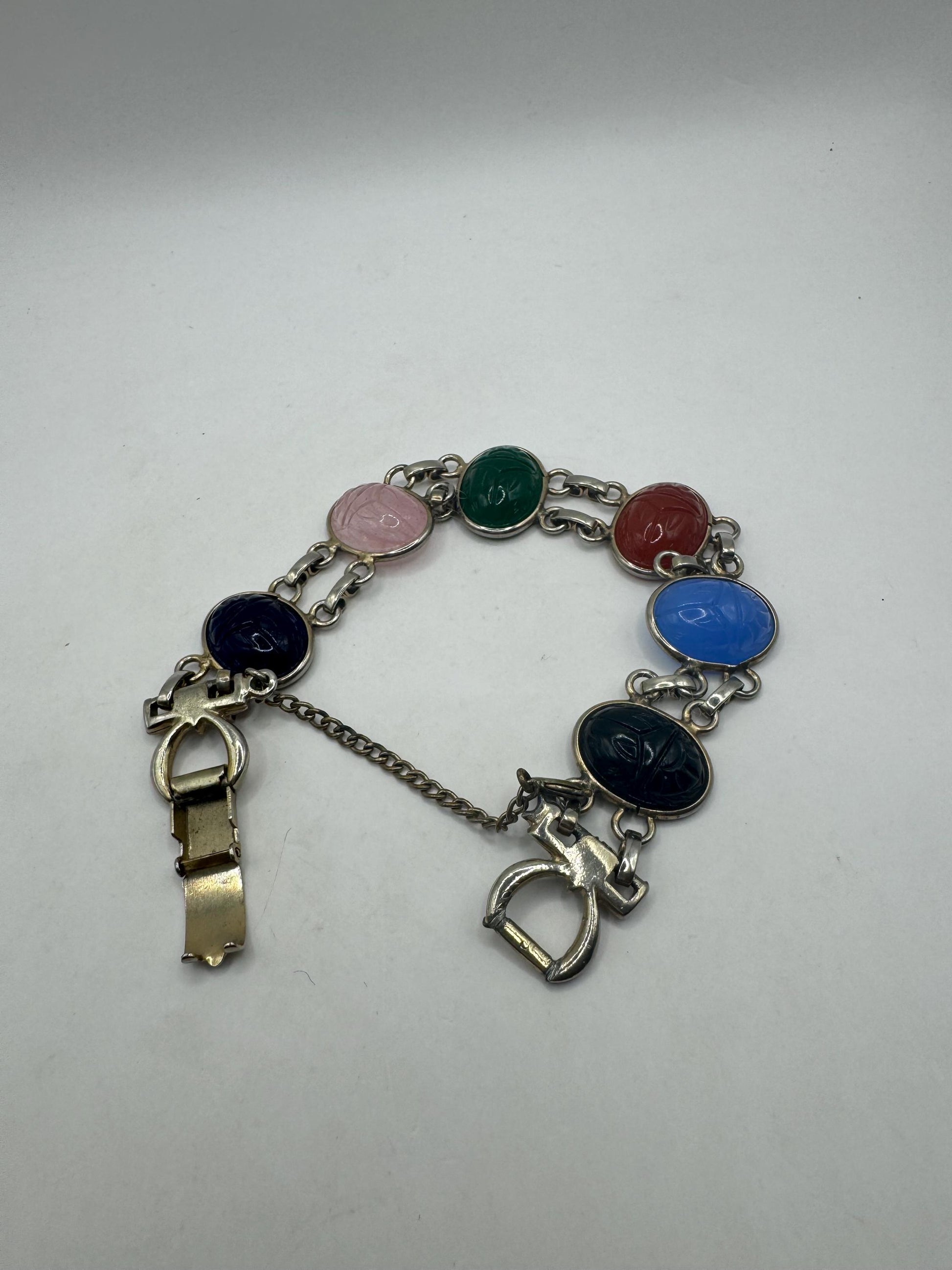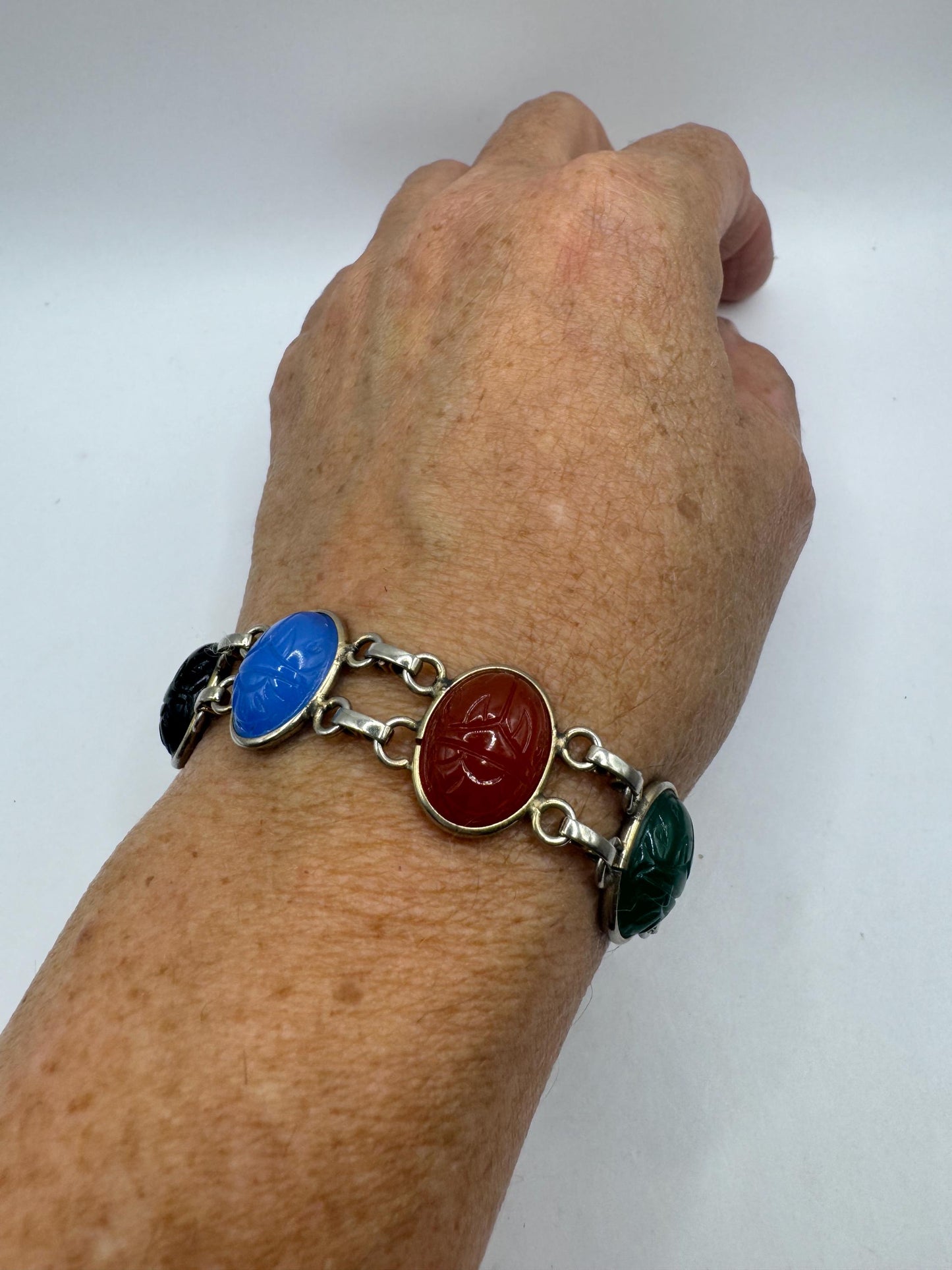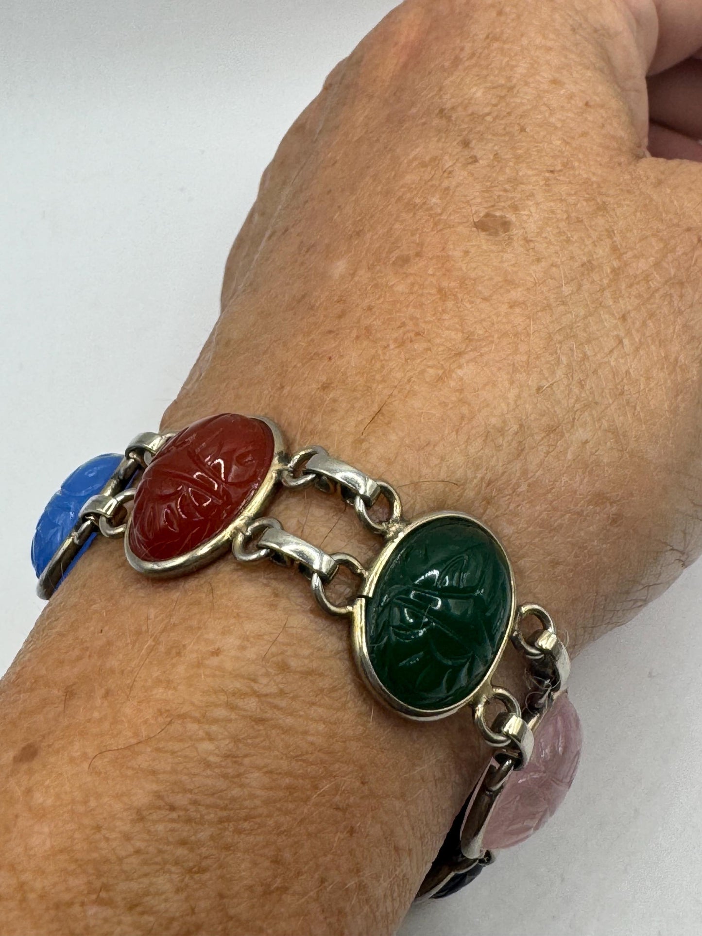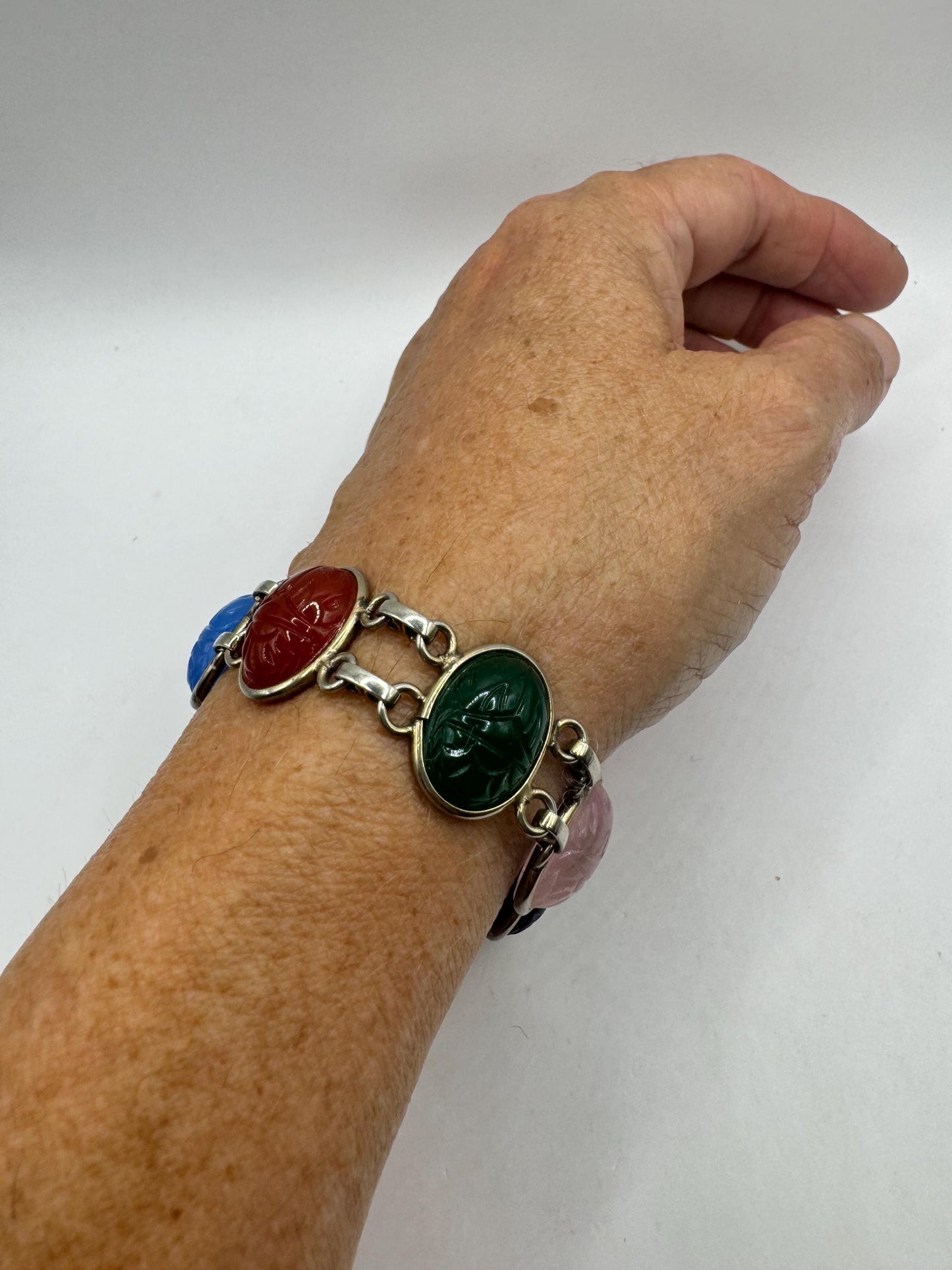 Vintage Scarab Bracelet Gold filled Carved Gemstones