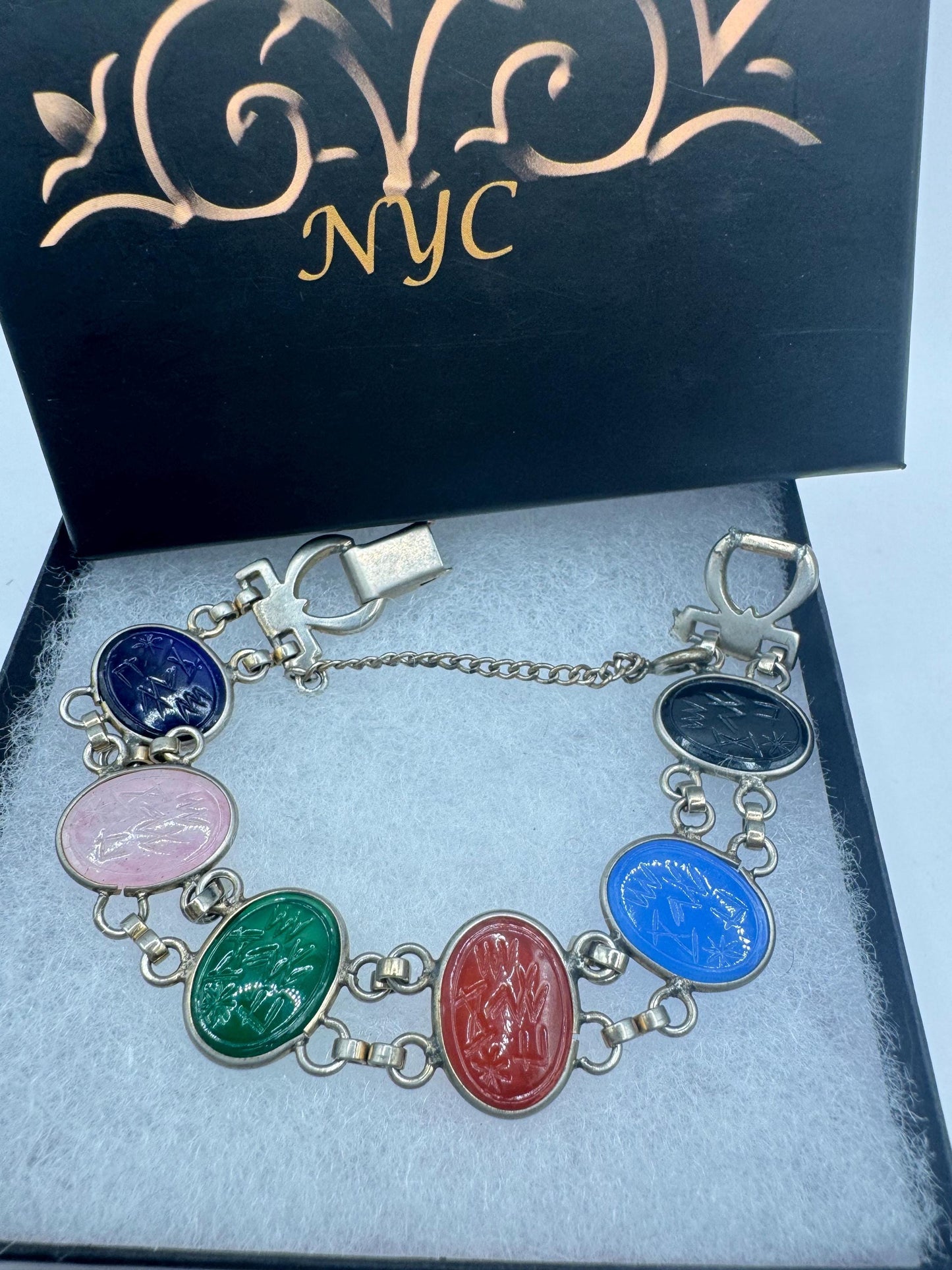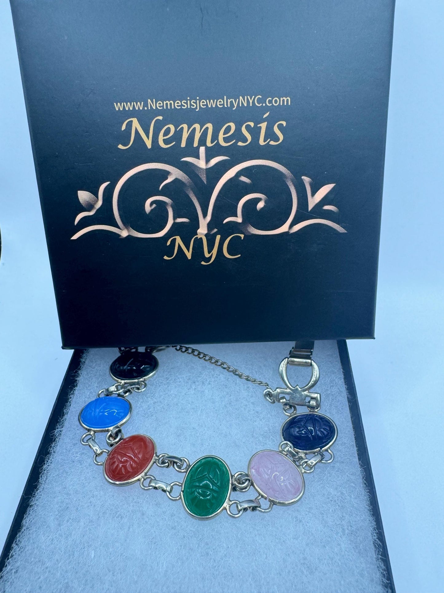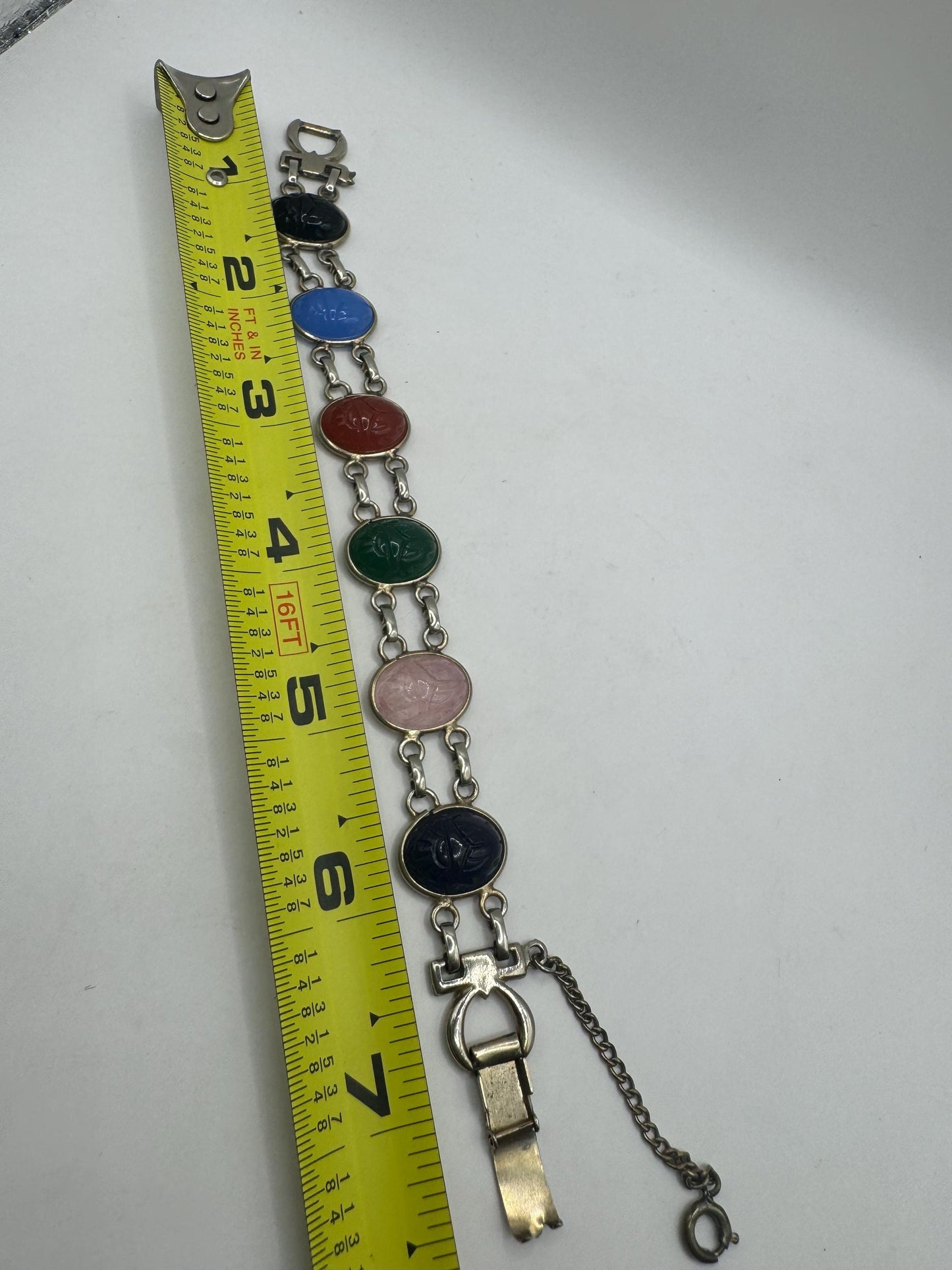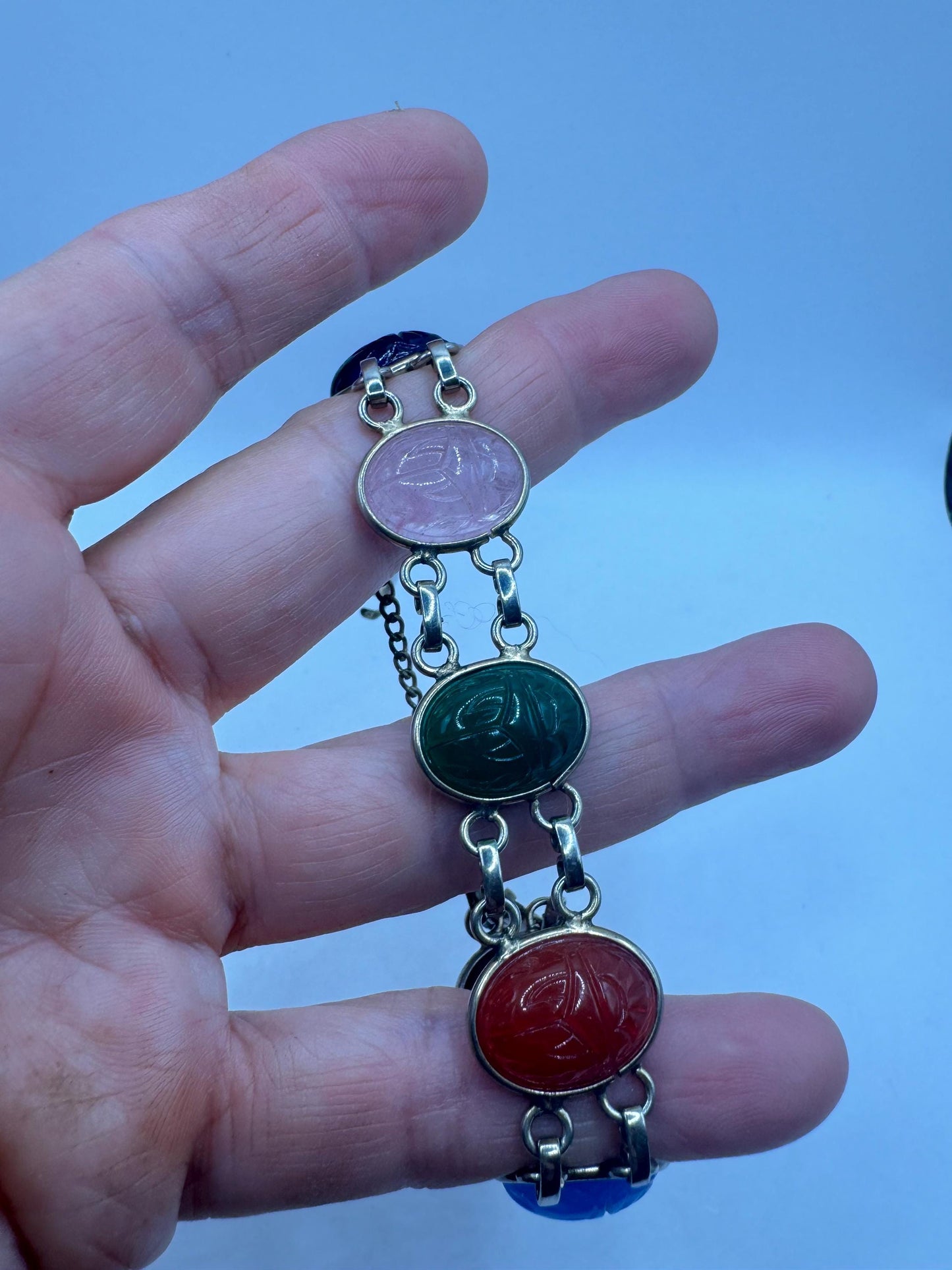 Vintage Scarab Bracelet Gold filled Carved Gemstones