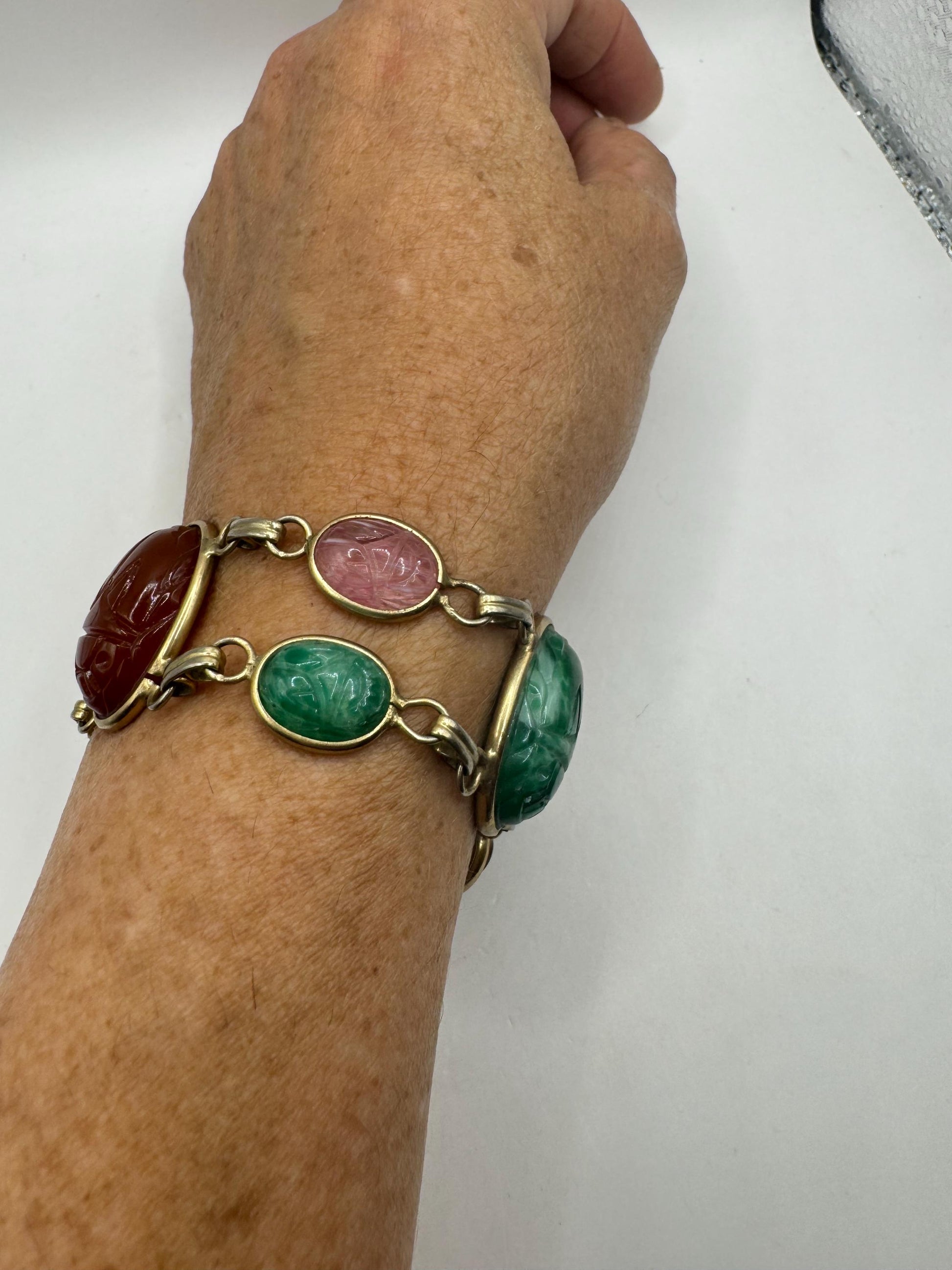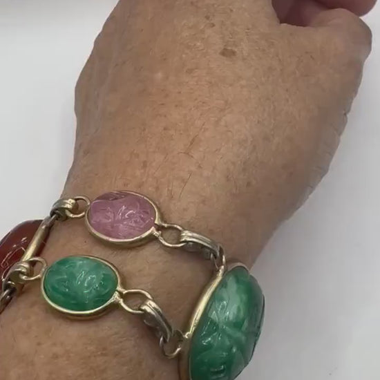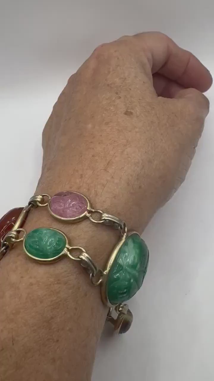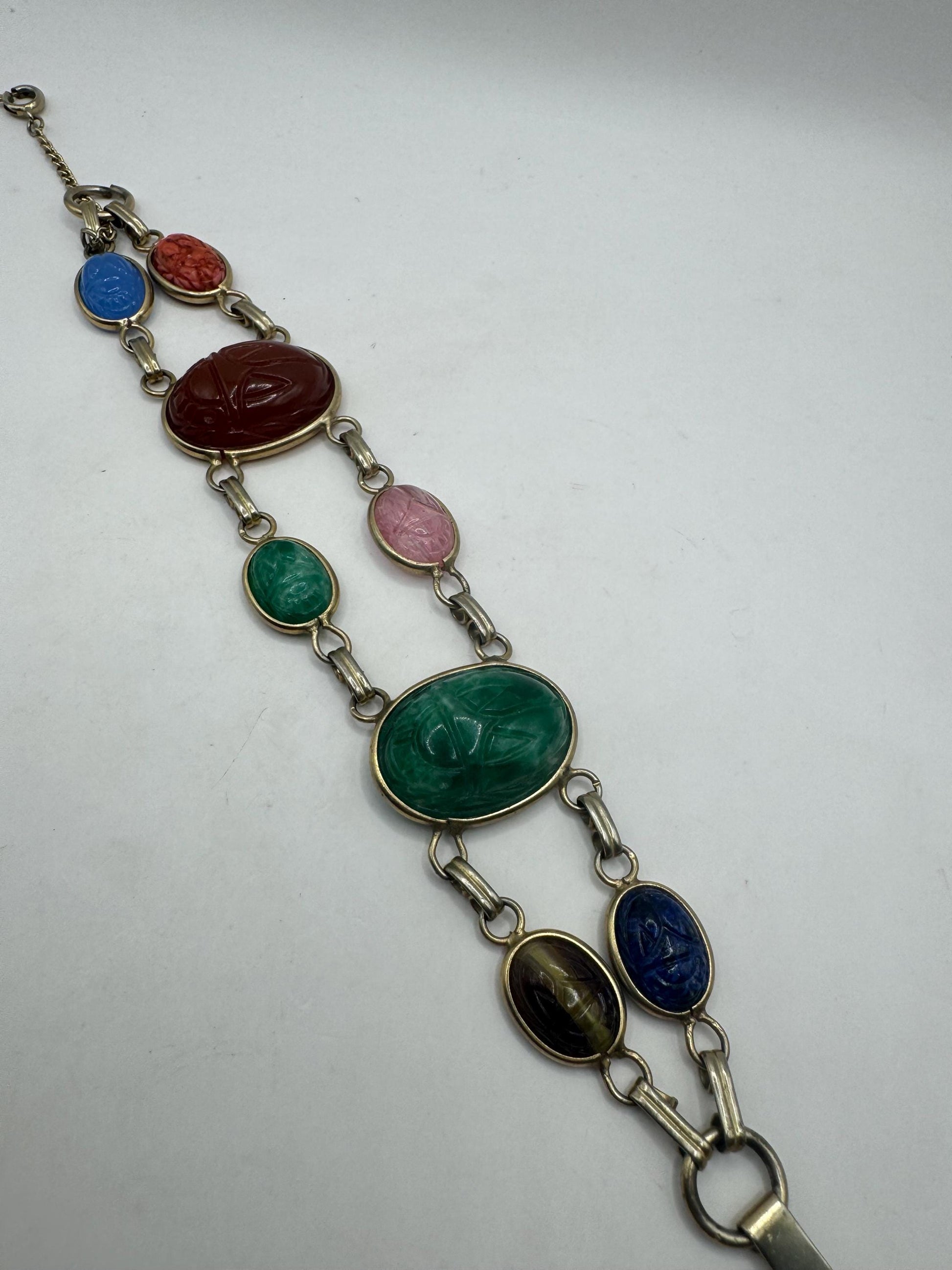 Vintage Scarab Bracelet Gold filled Carved Gemstones