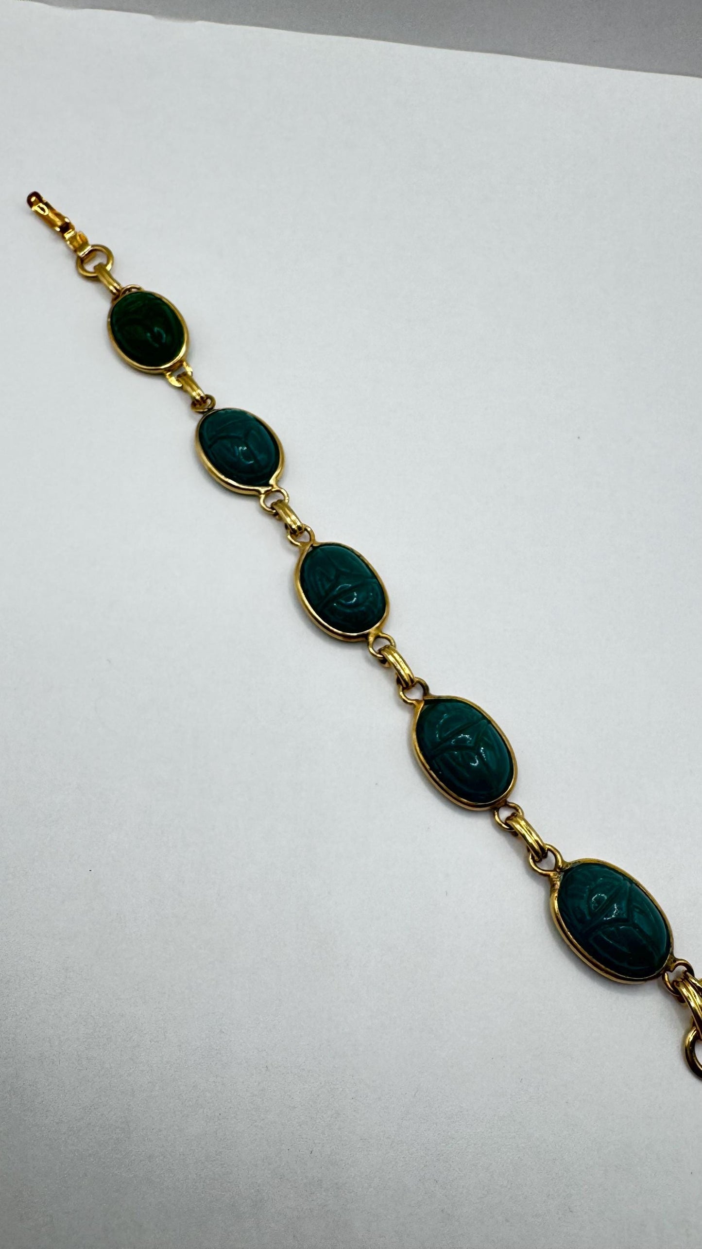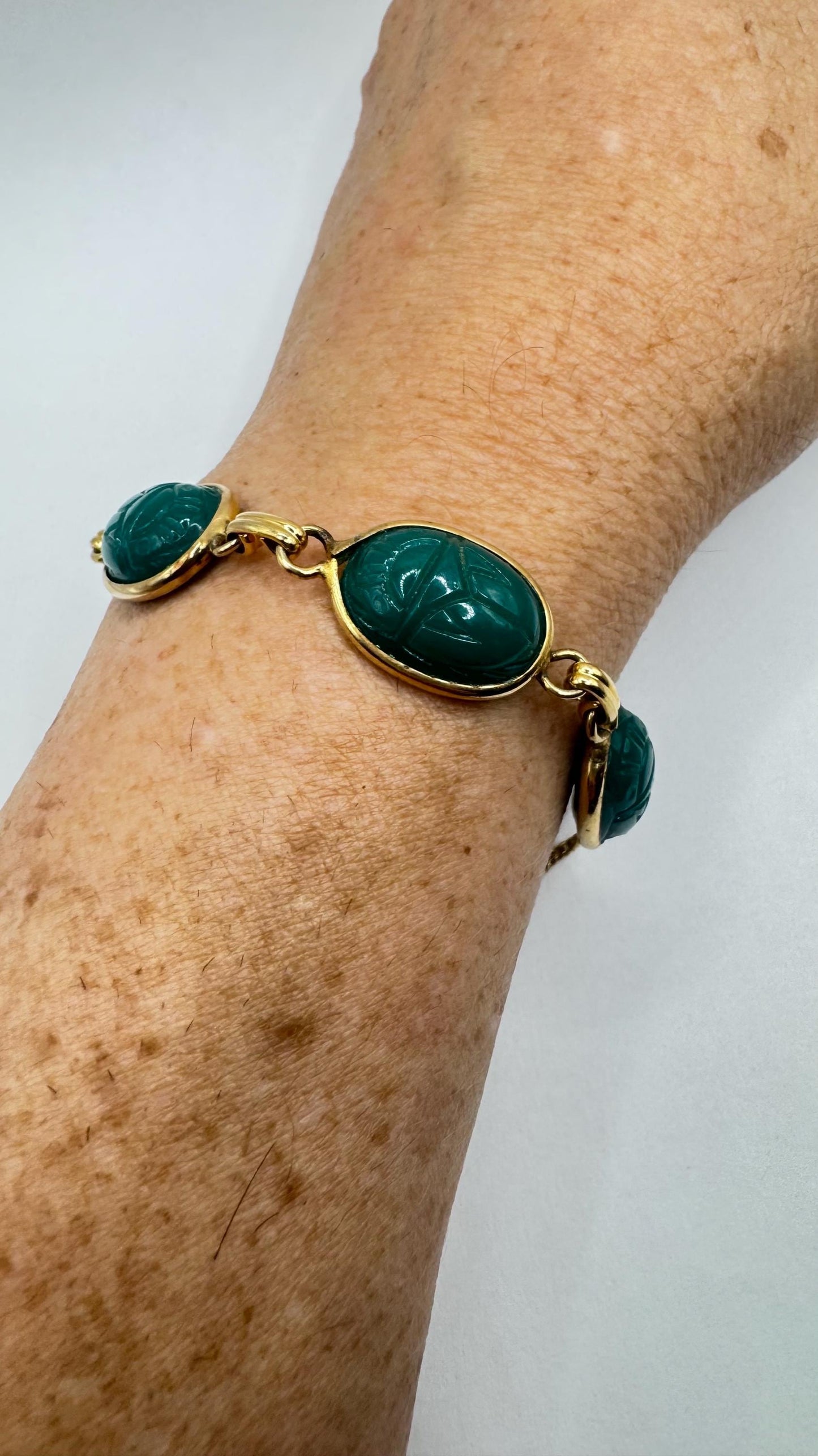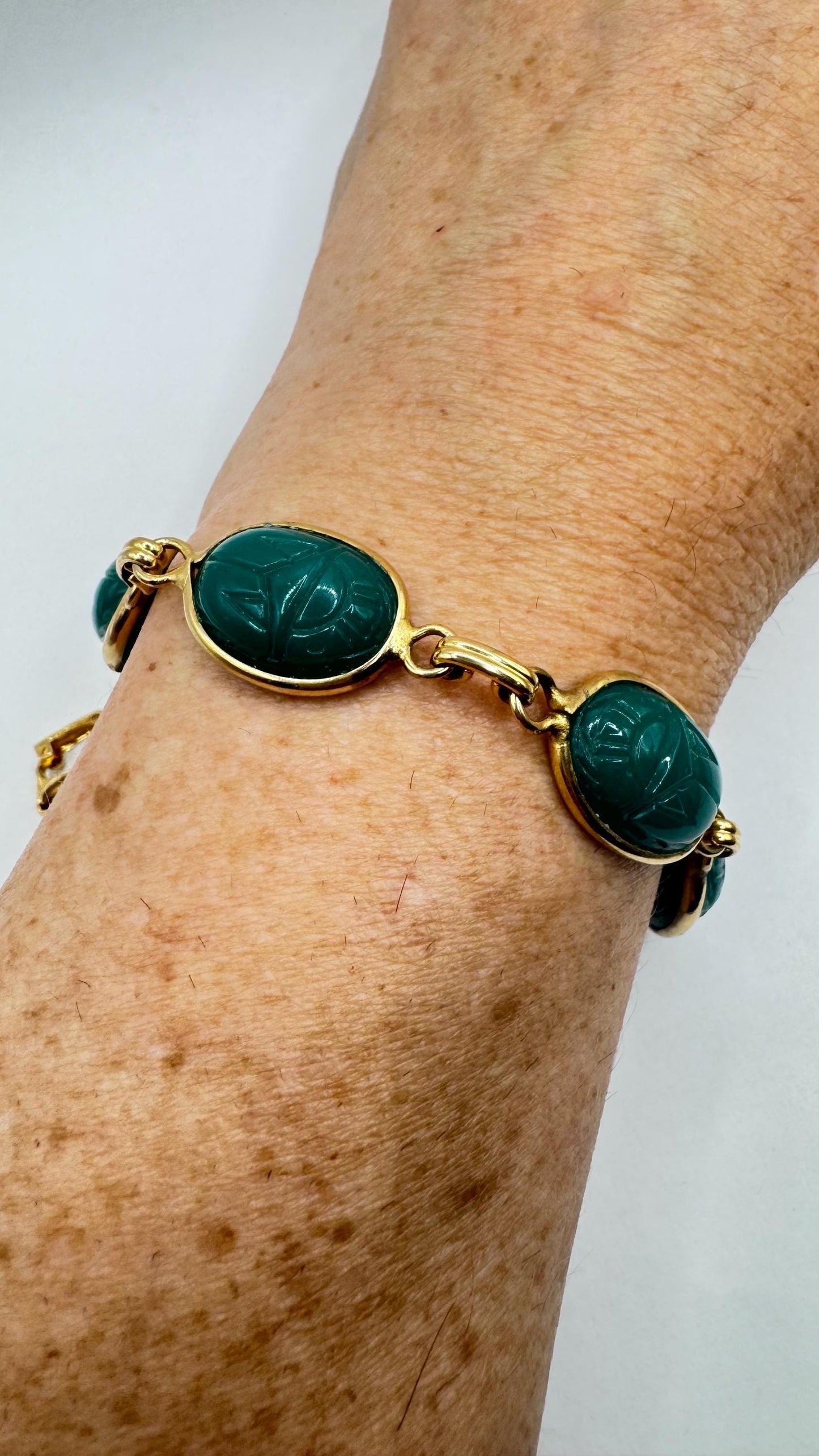 Vintage Scarab Bracelet Gold filled Carved Gemstones