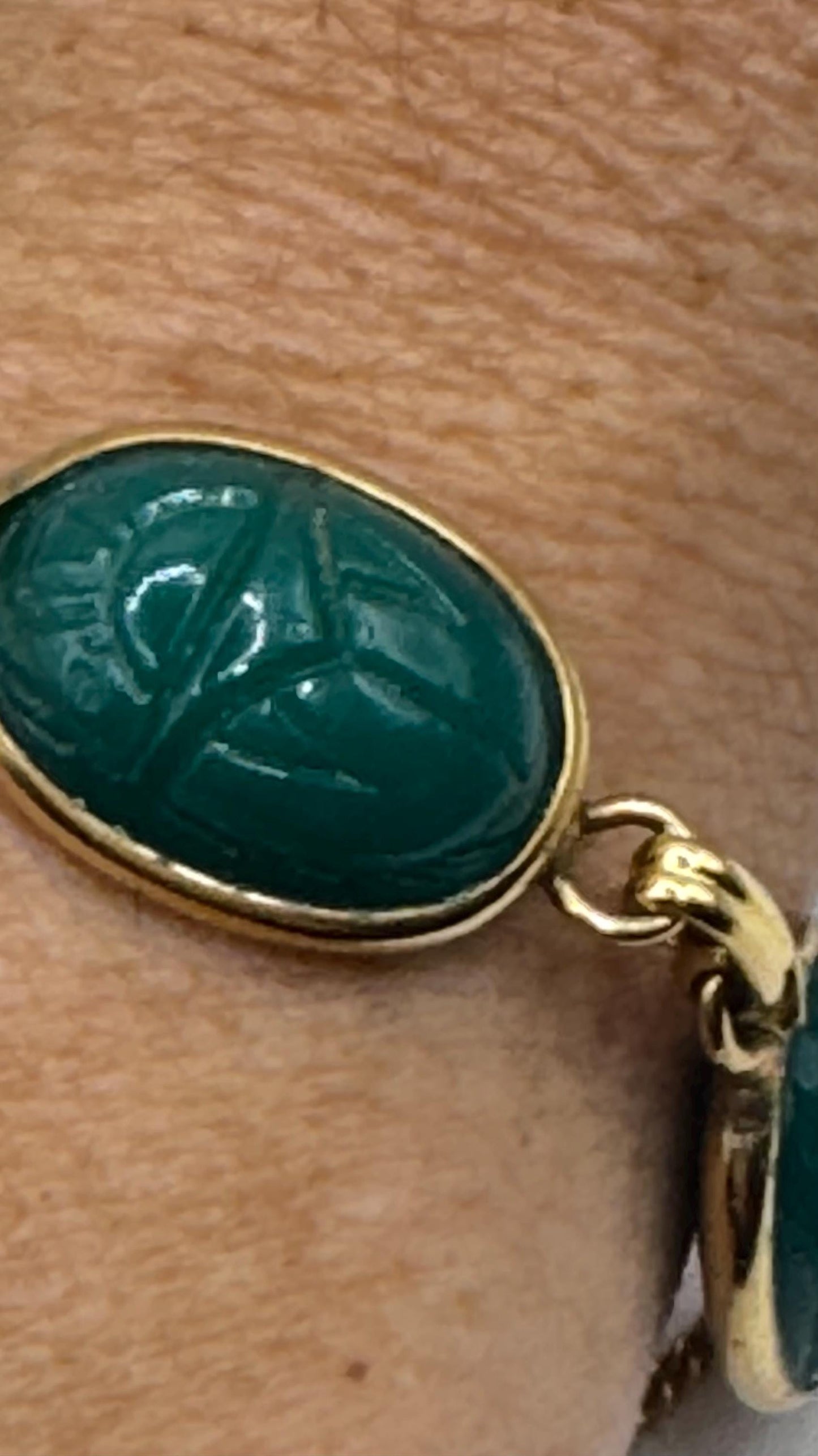 Vintage stone scarab bracelet gold filled