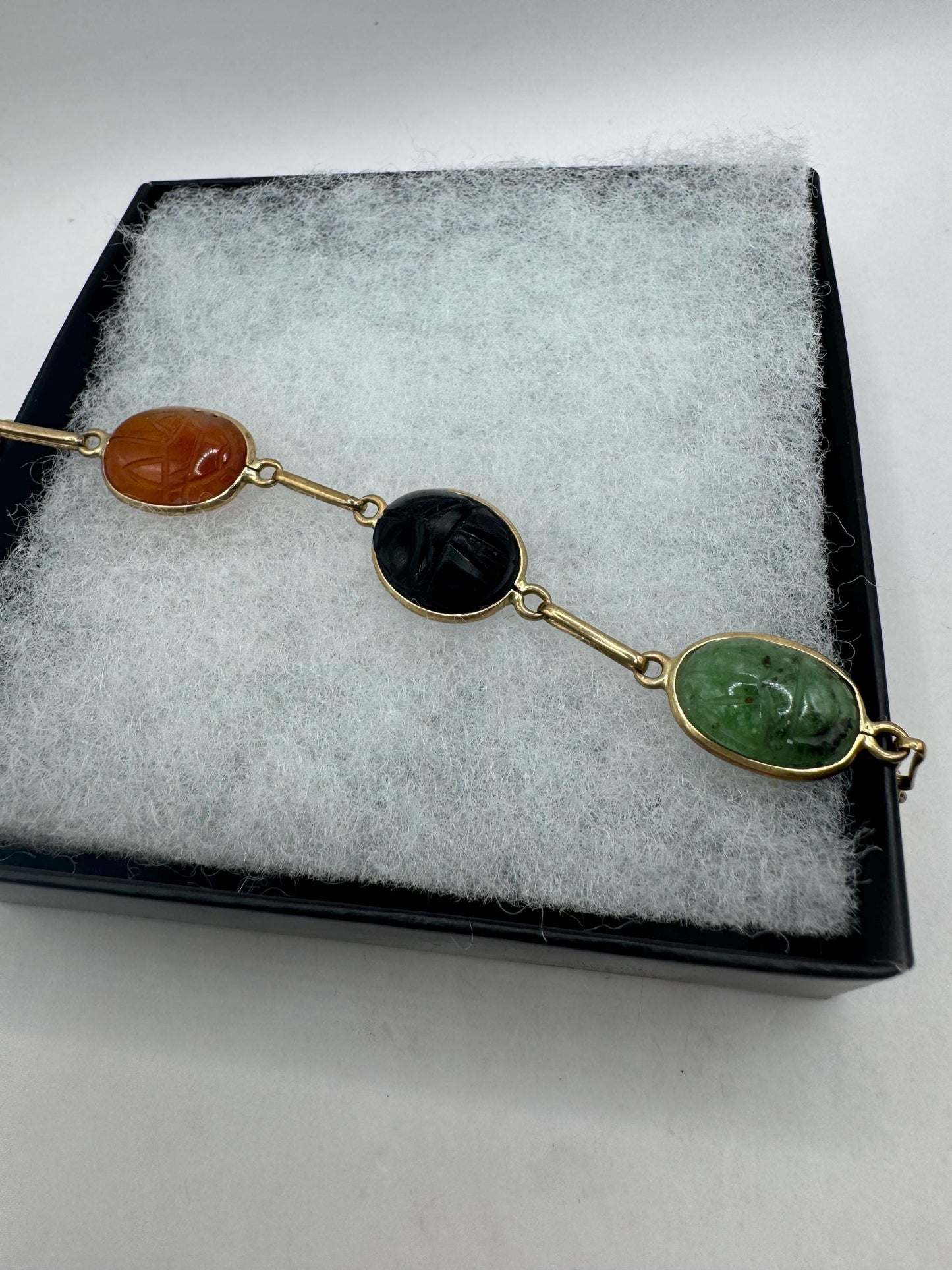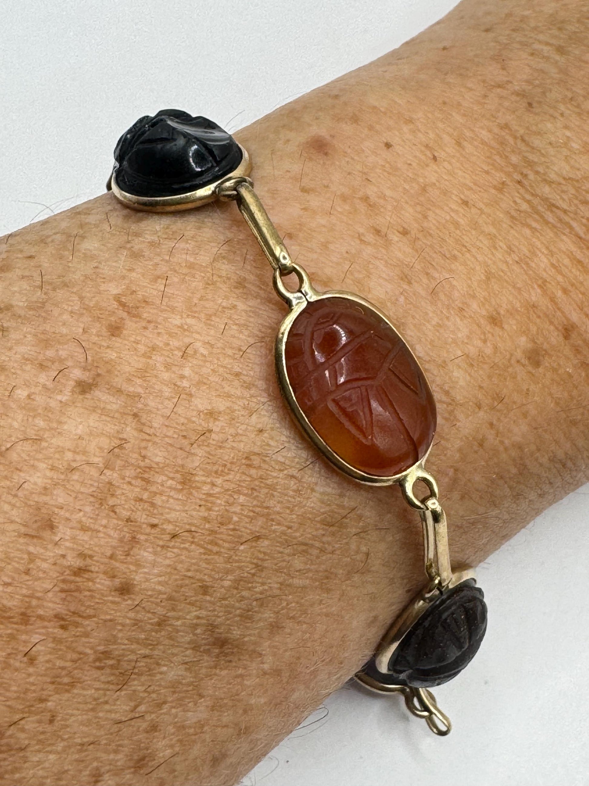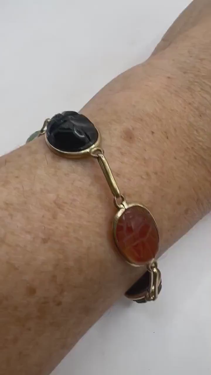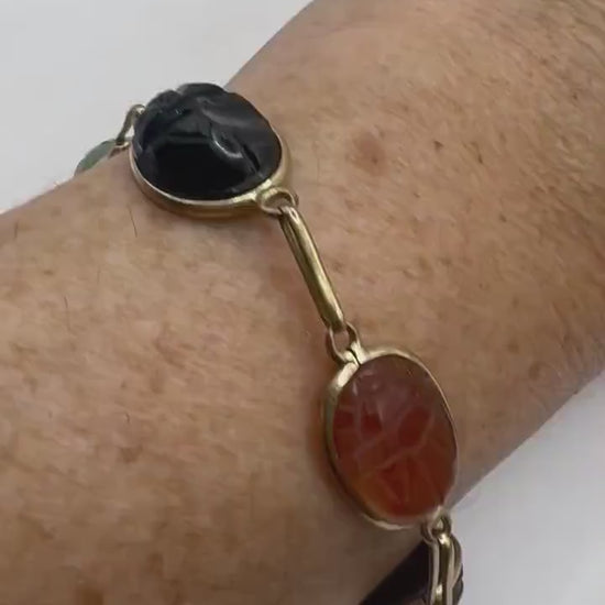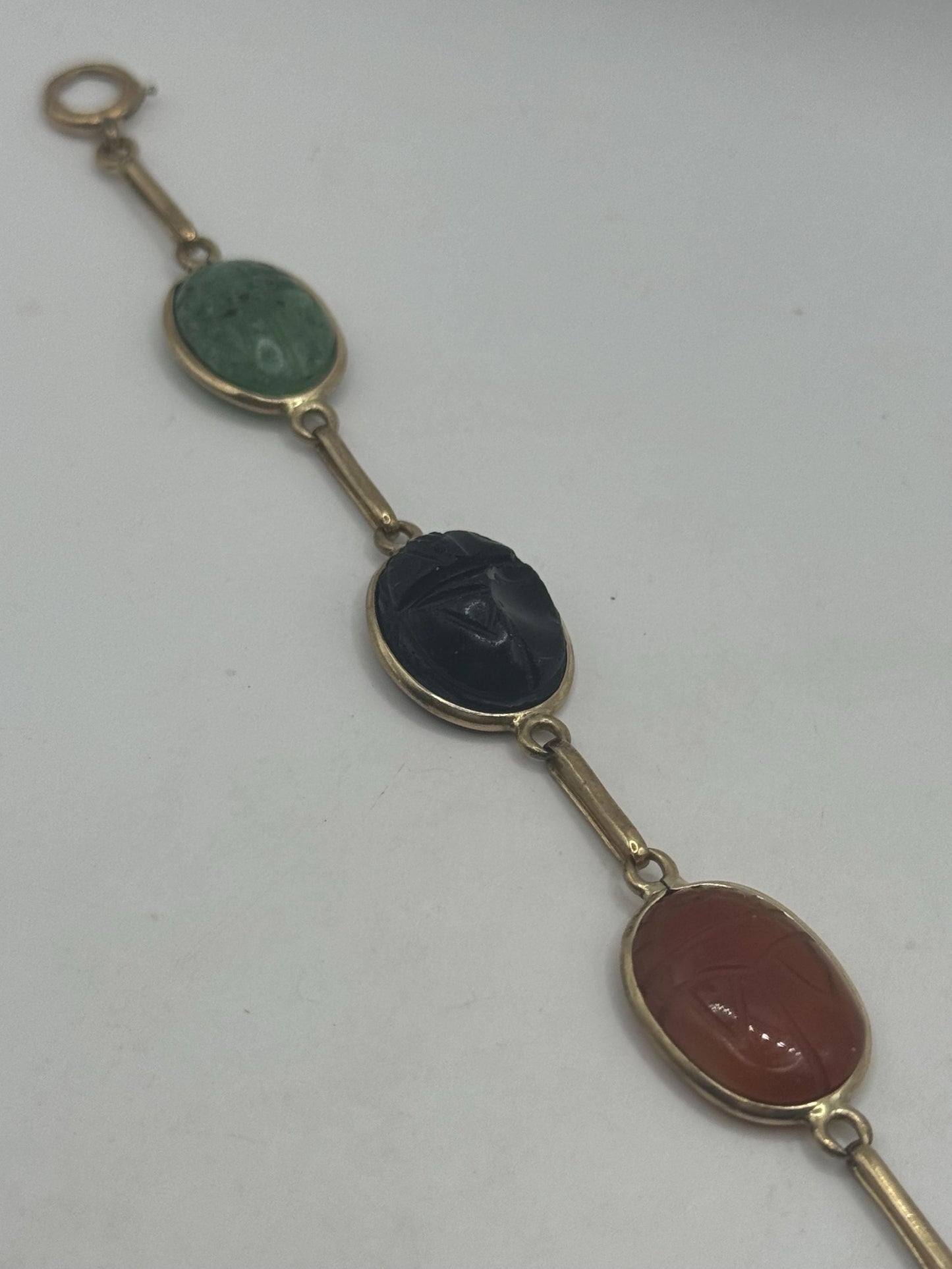 Vintage Scarab Bracelet Gold filled Carved Gemstones