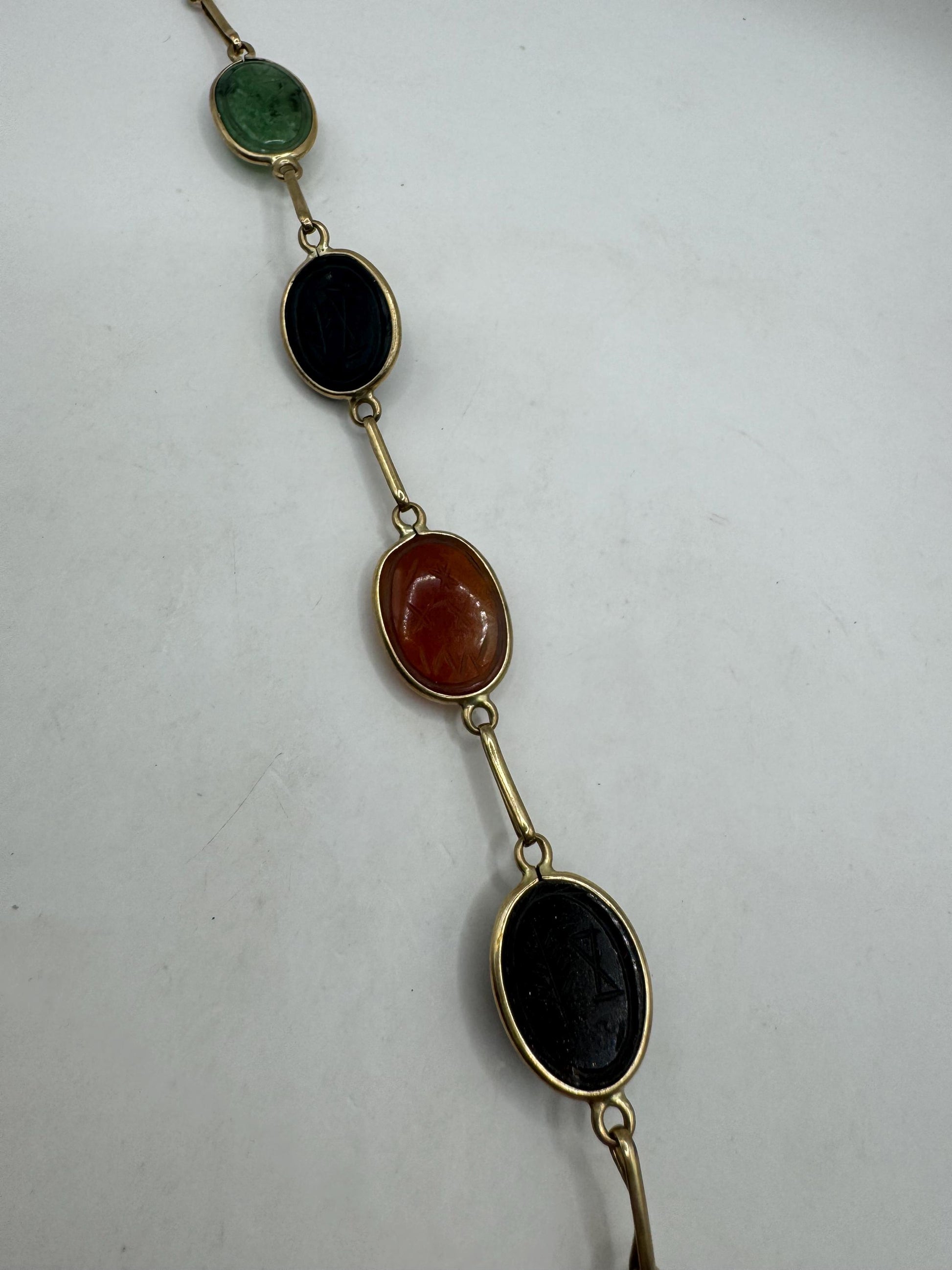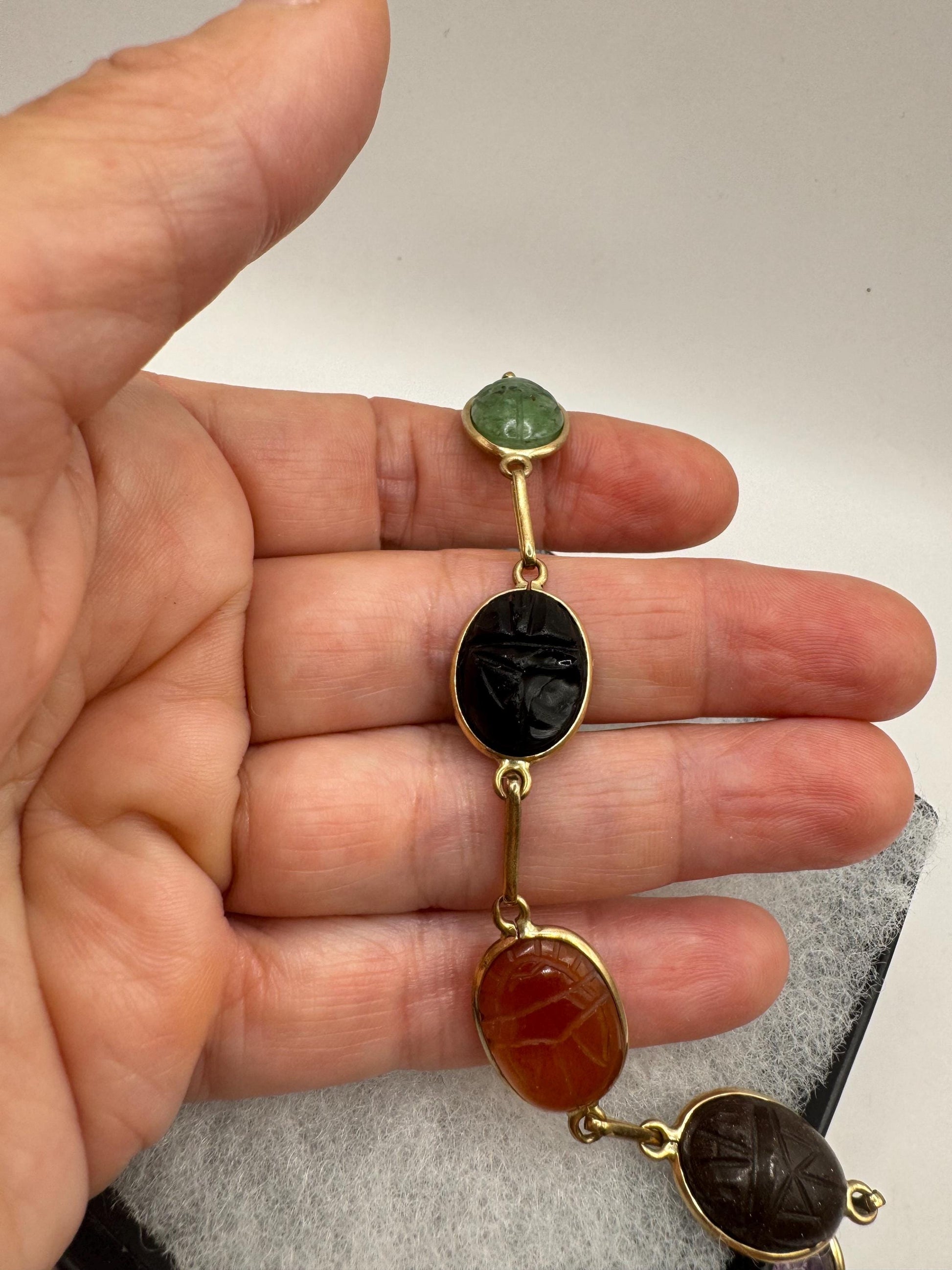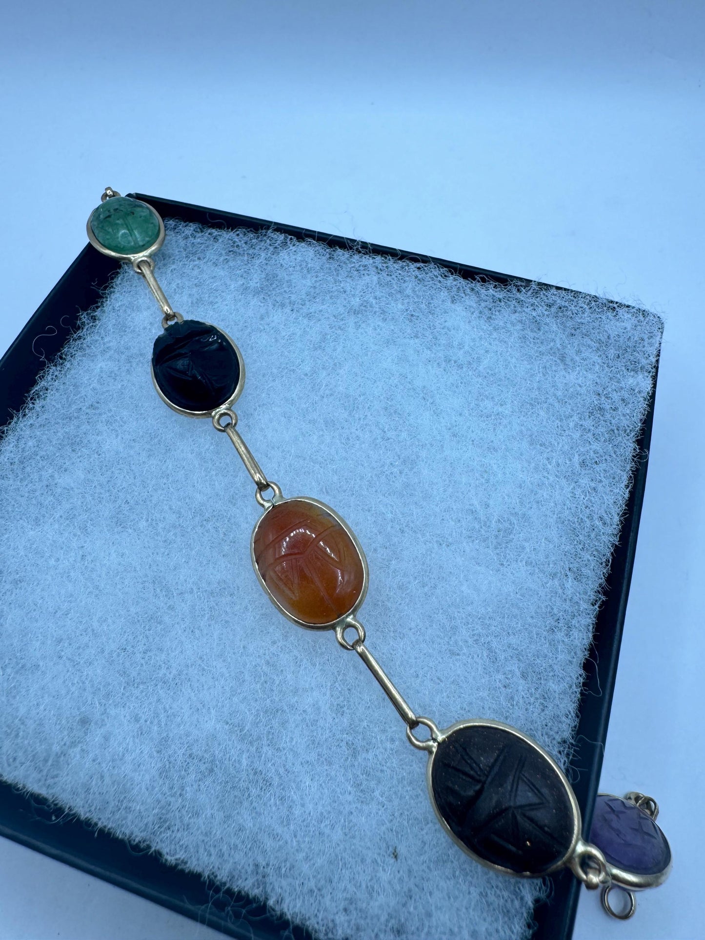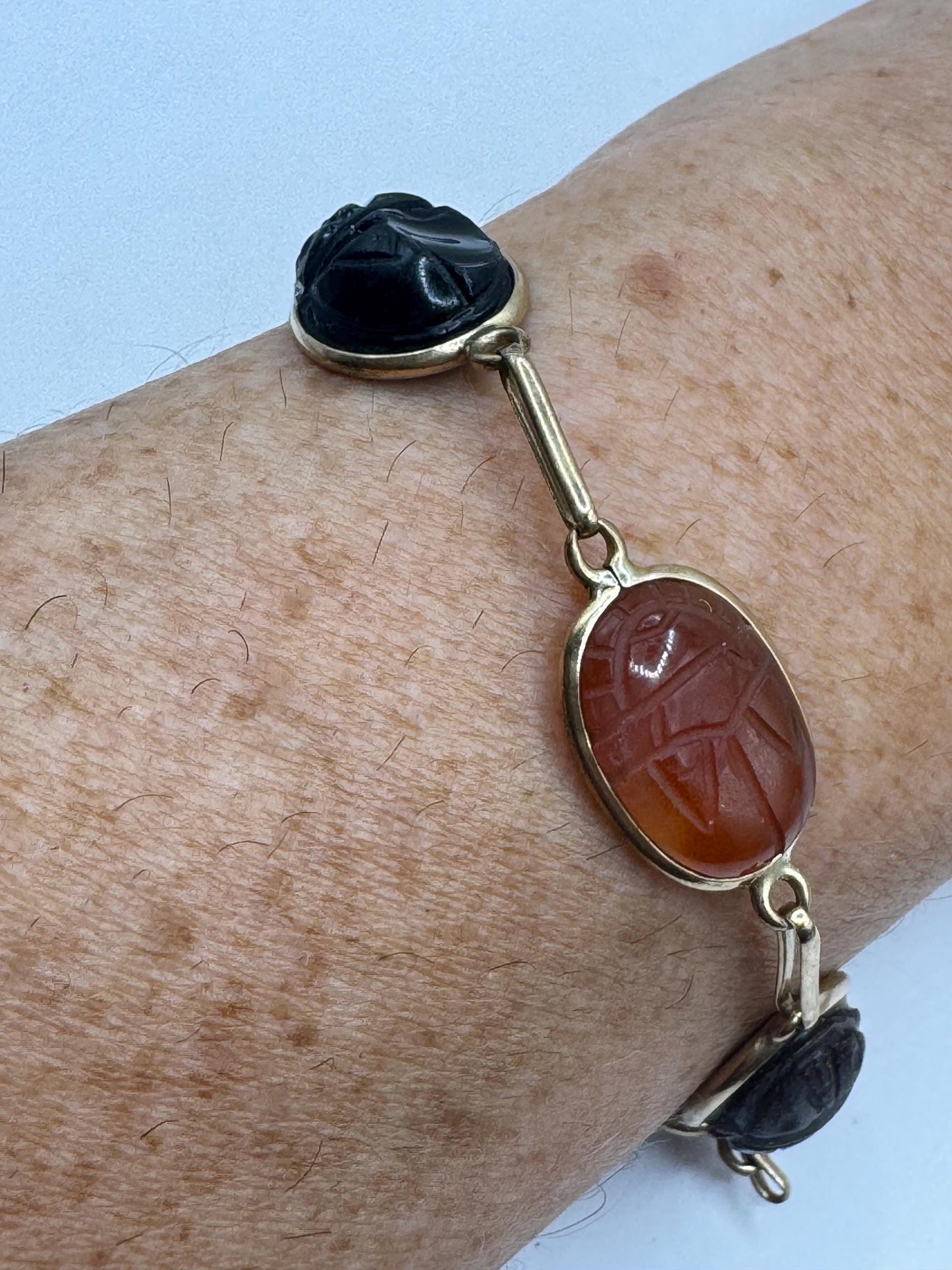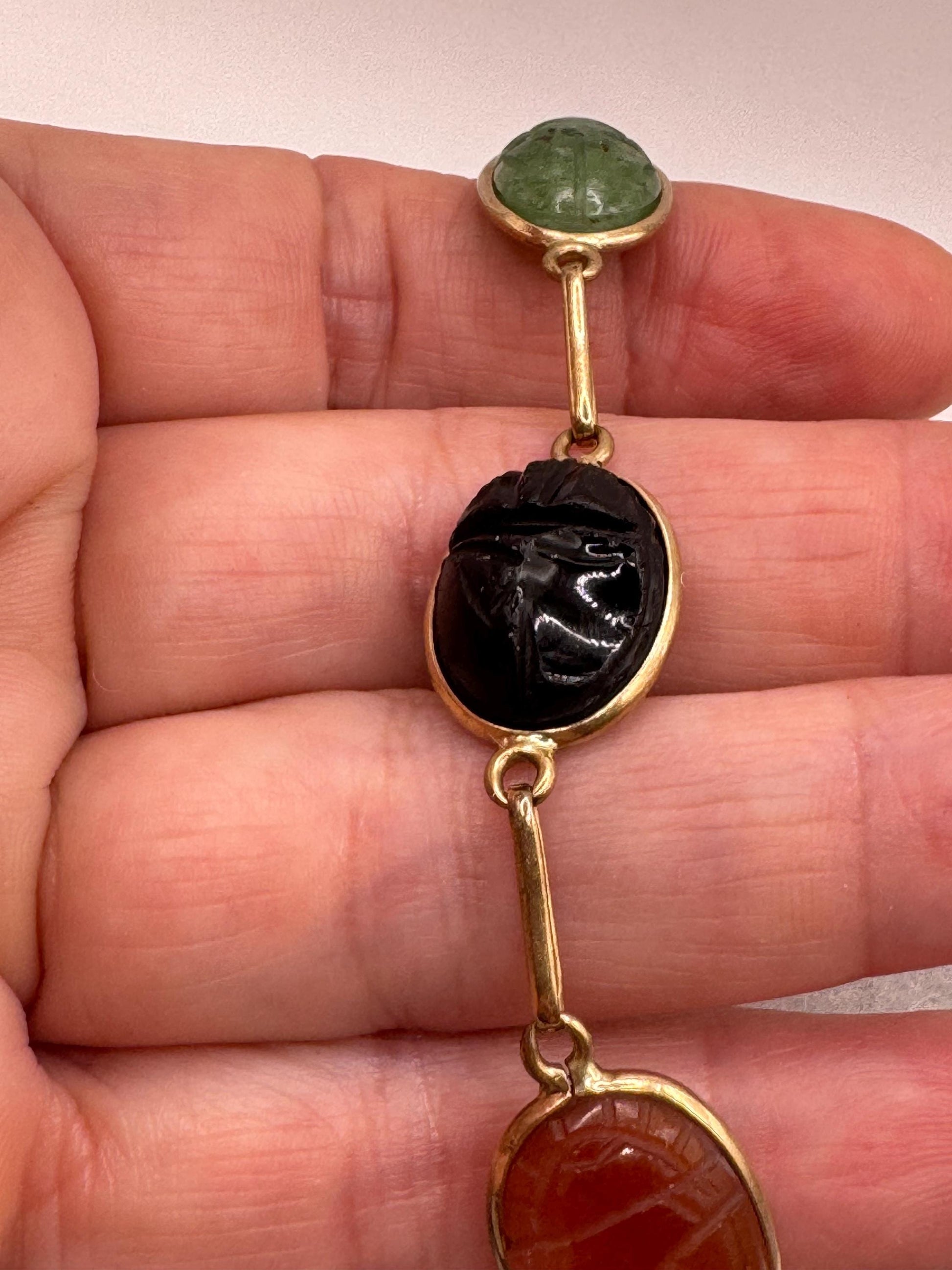 Vintage Scarab Bracelet Gold filled Carved Gemstones