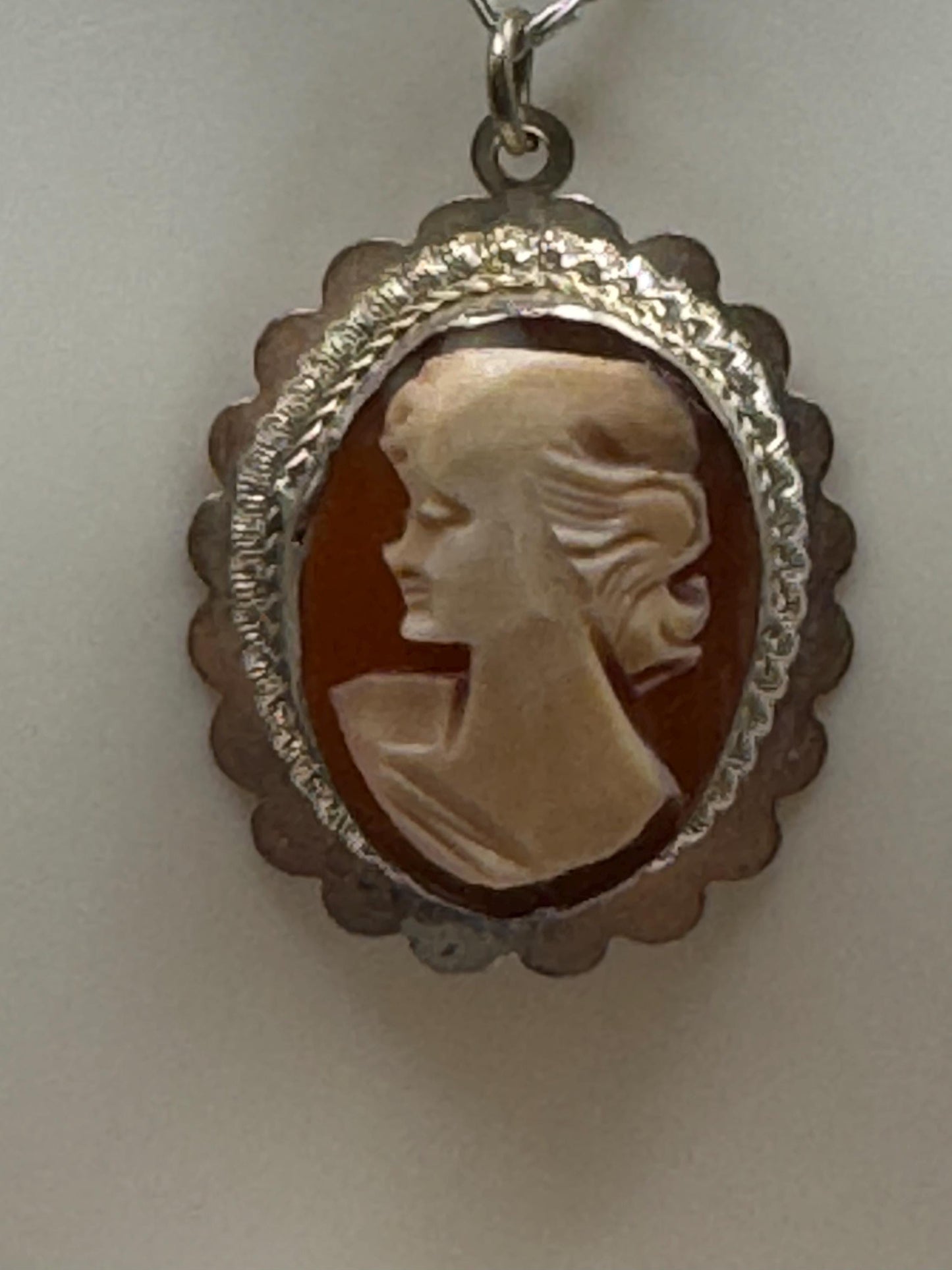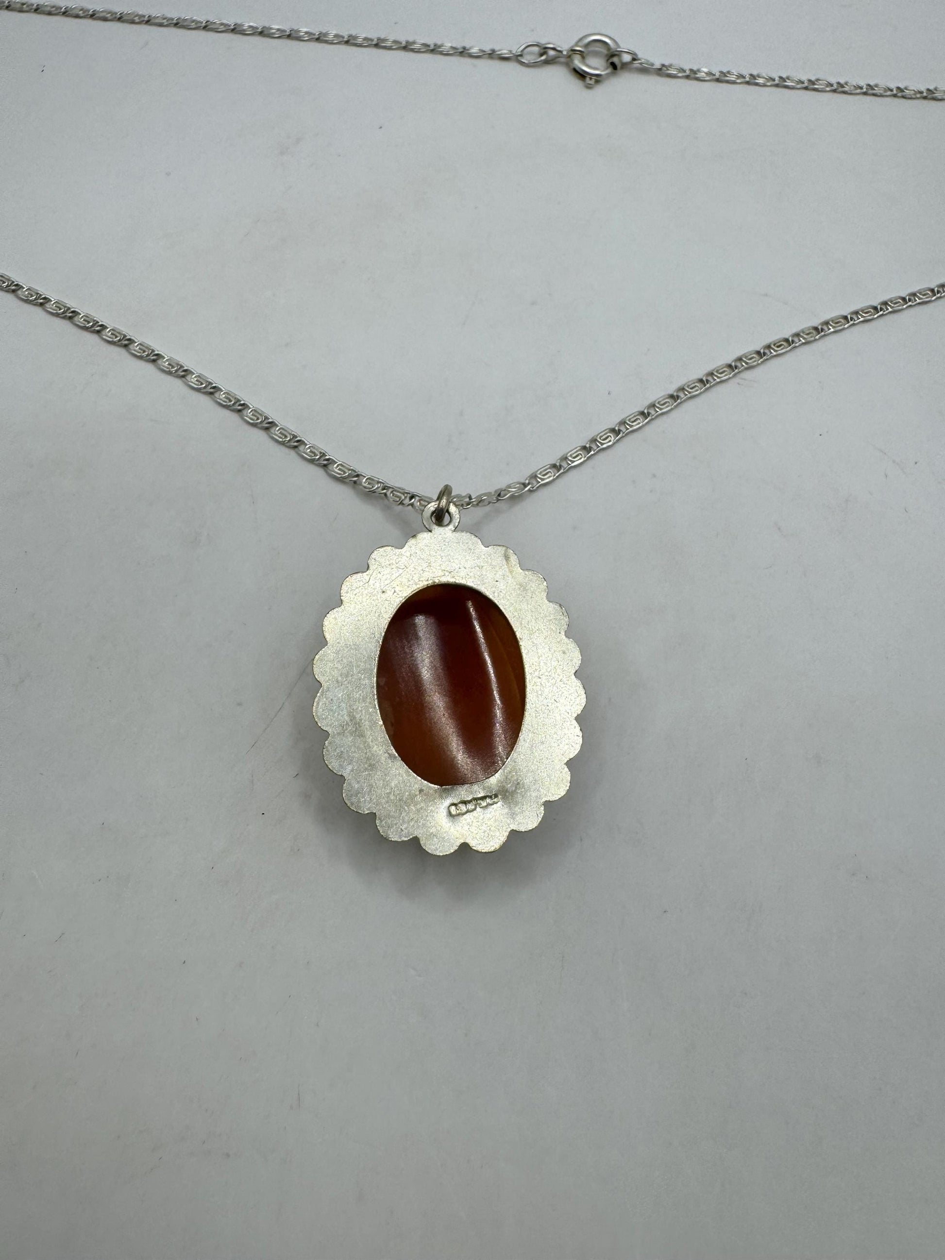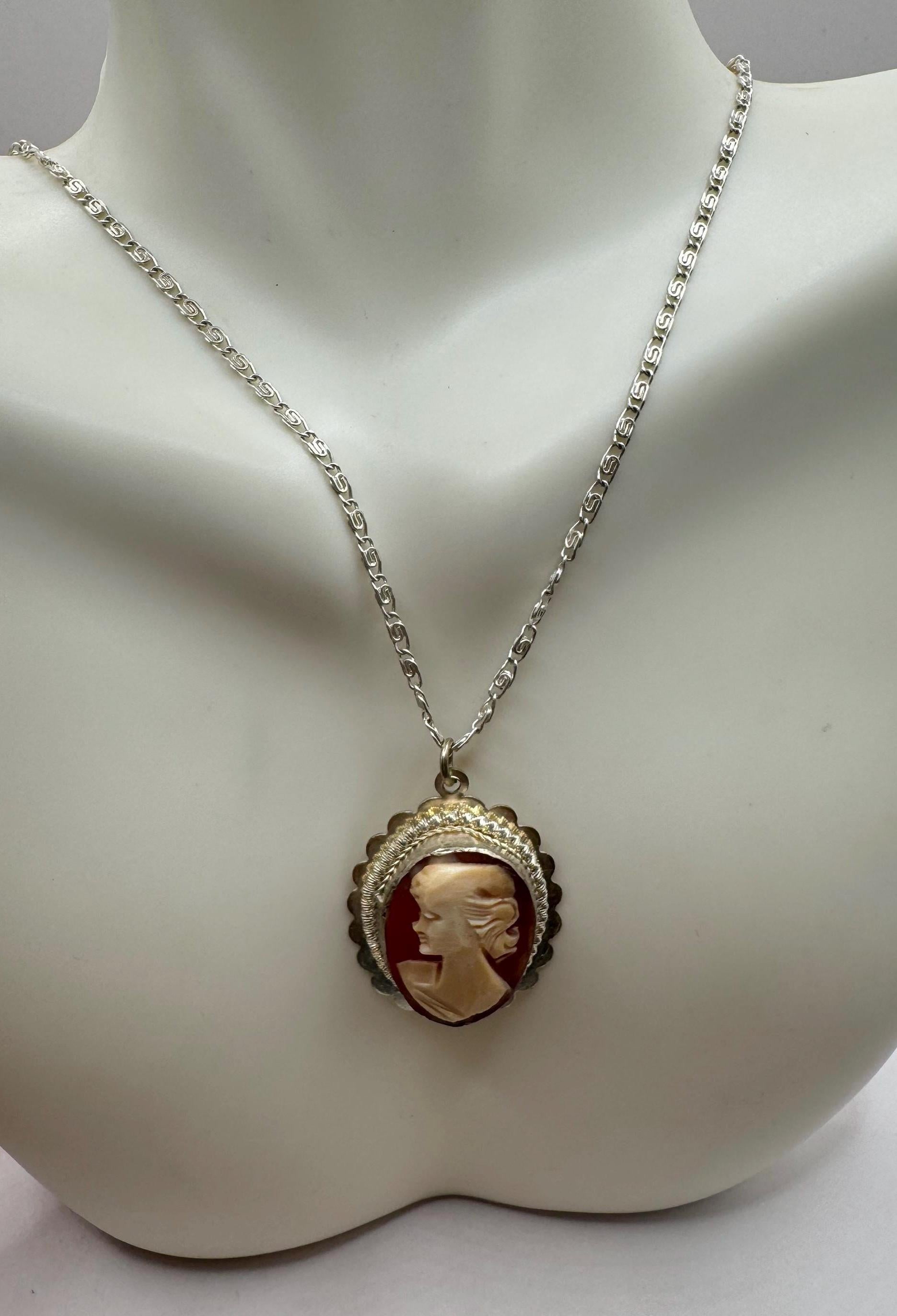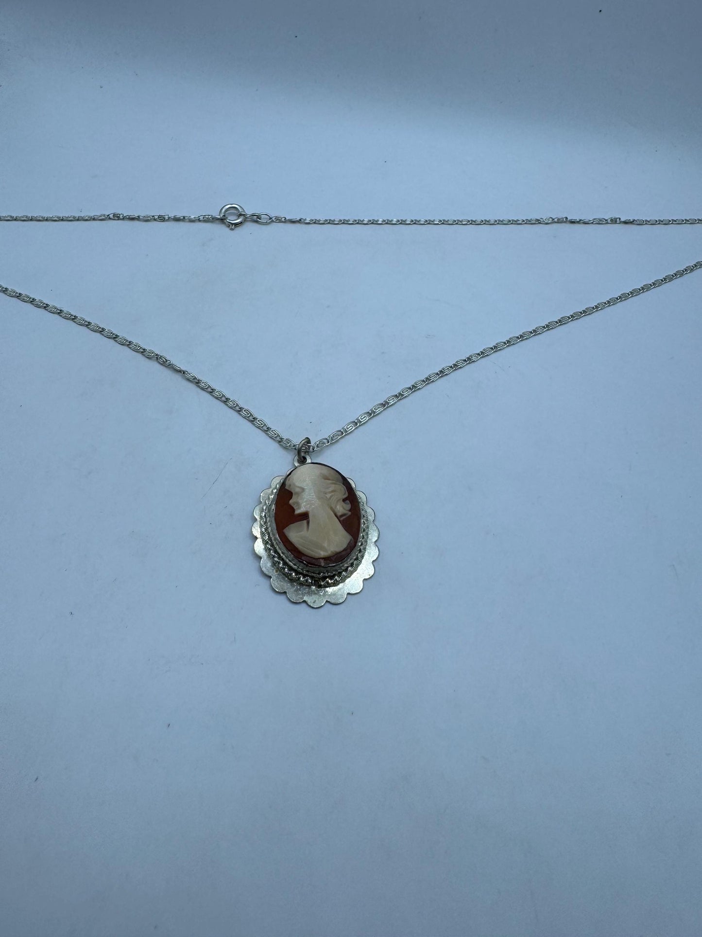 Vintage Shell Cameo 925 Sterling Silver 18 Inch Necklace Choker