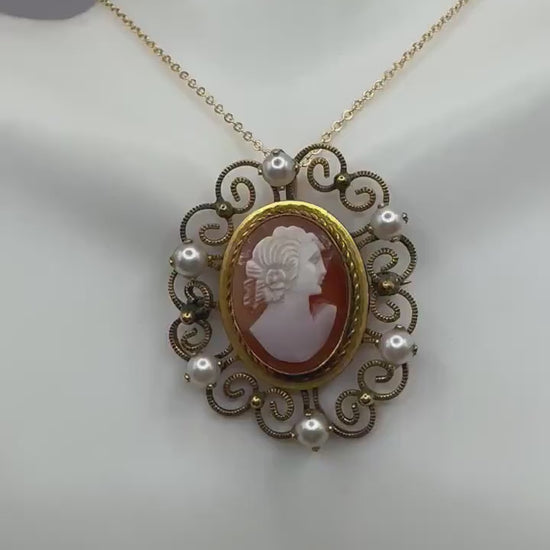 Vintage Shell Cameo Pea Yellow Gold Filled Necklace Choker pin brooch