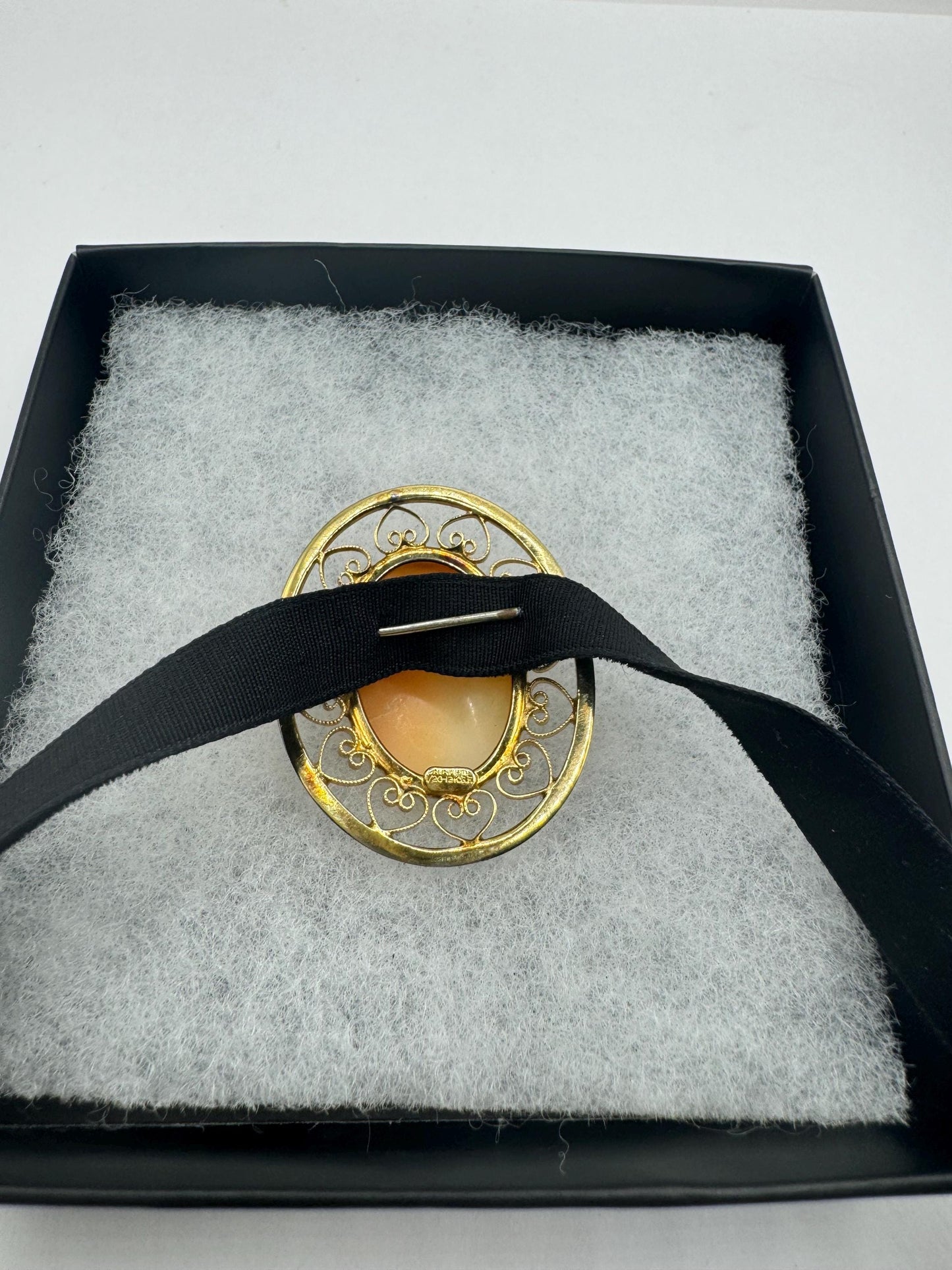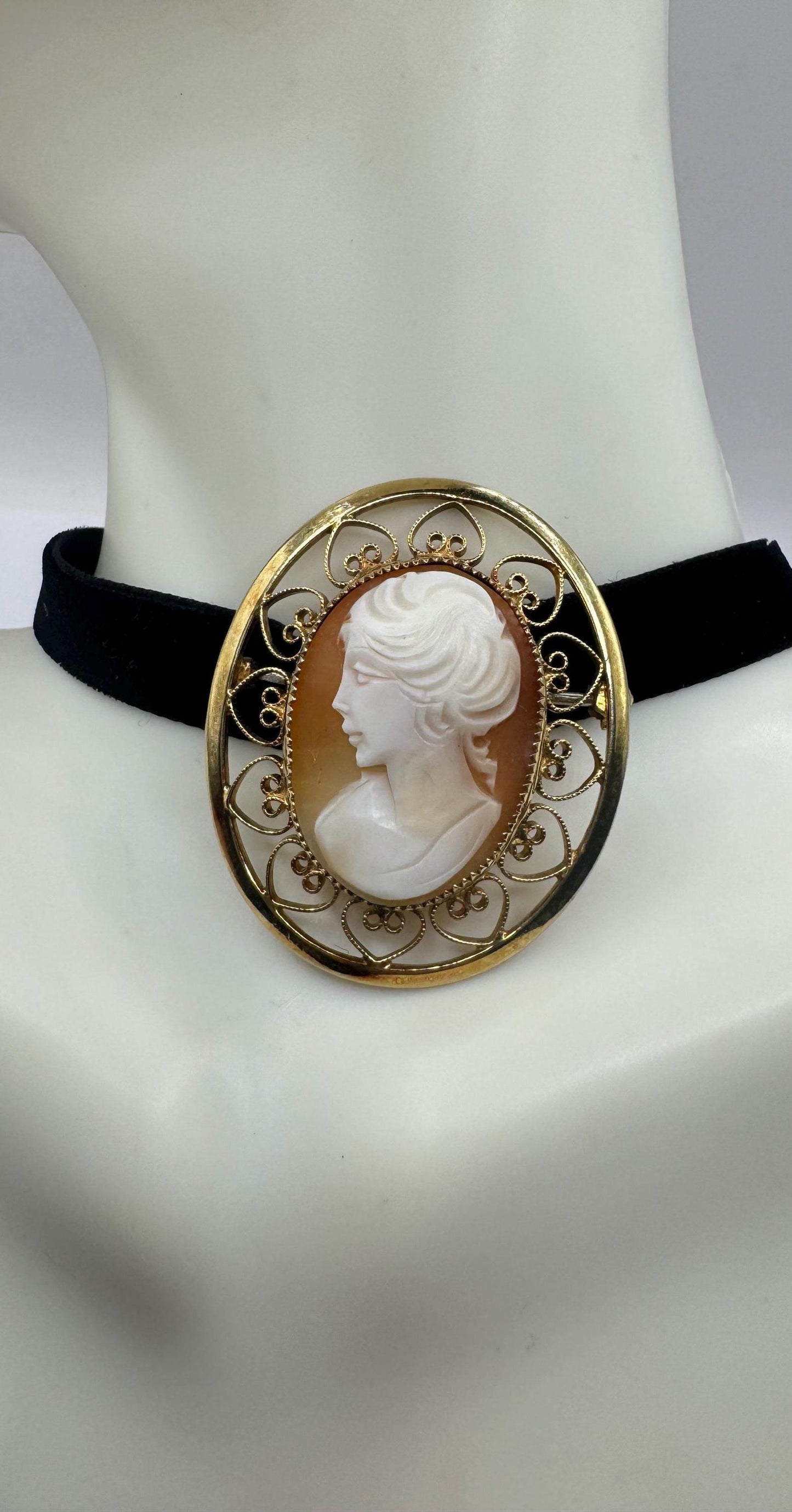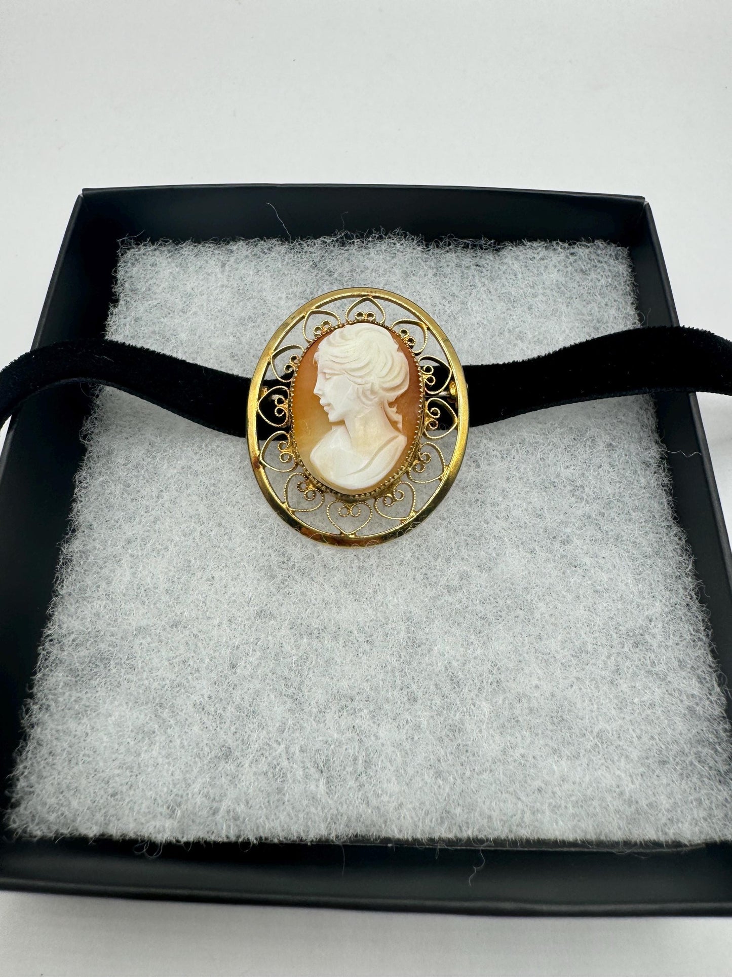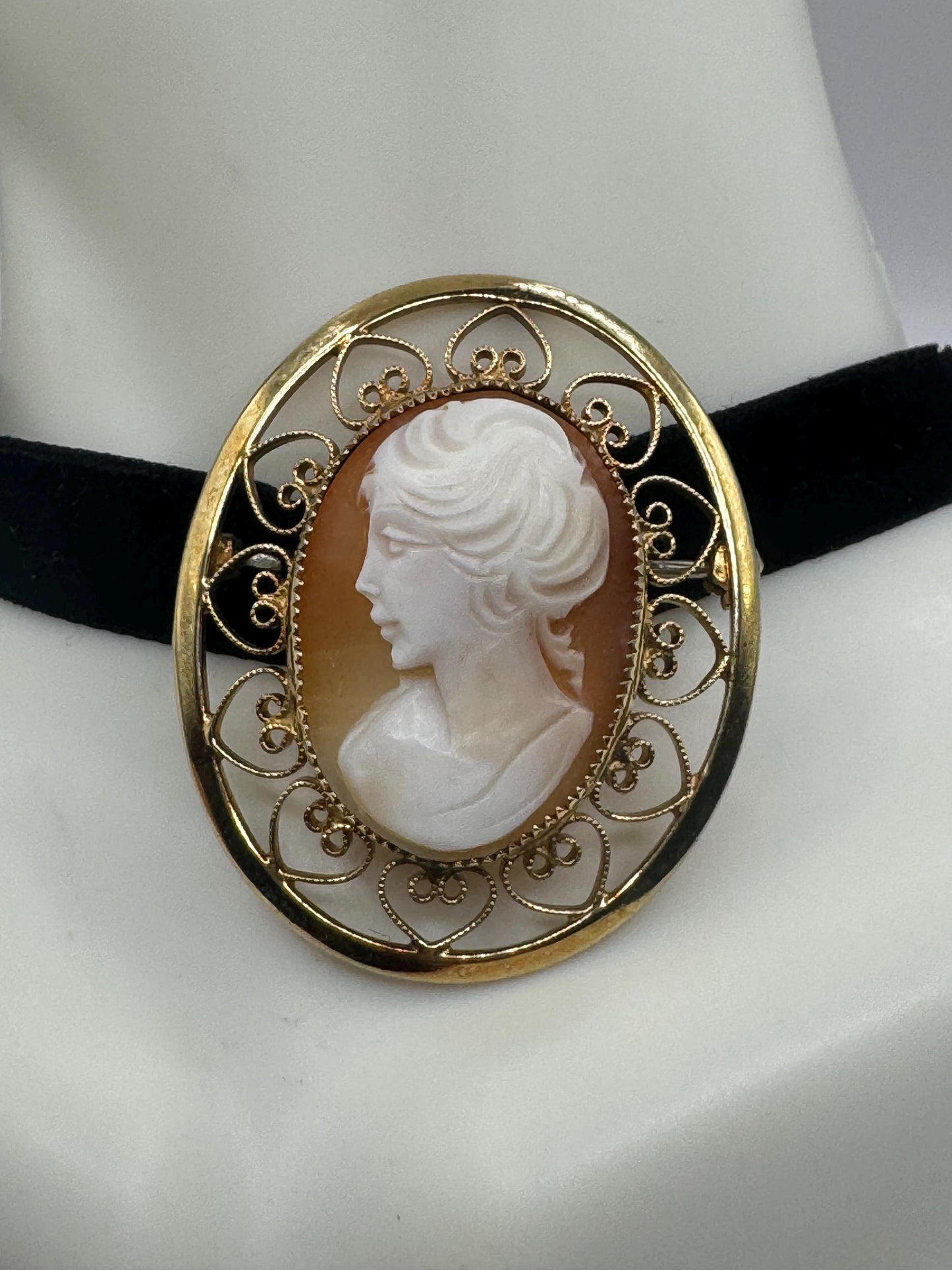 Vintage Shell Cameo Yellow Gold Finished Brooch Pin