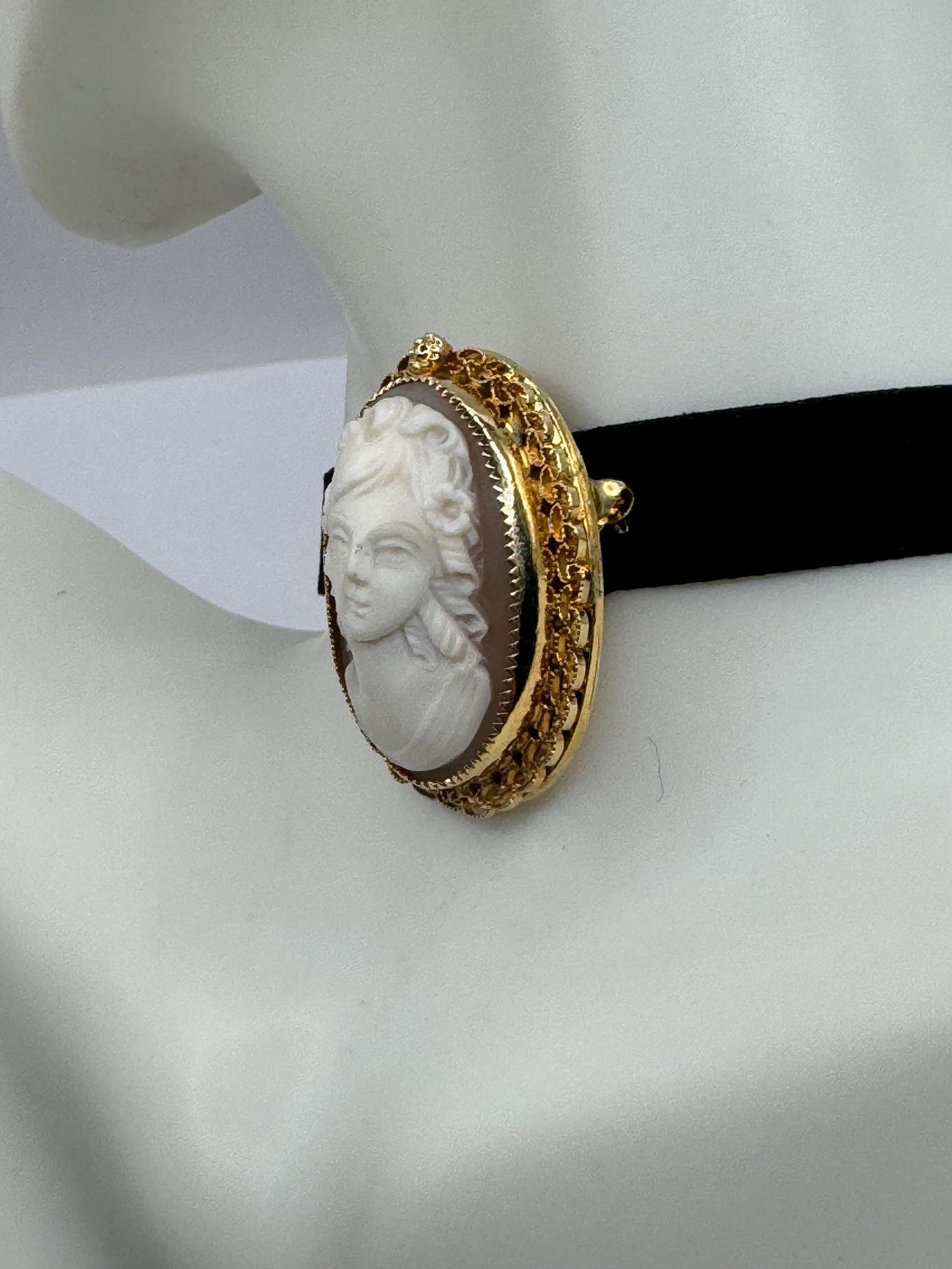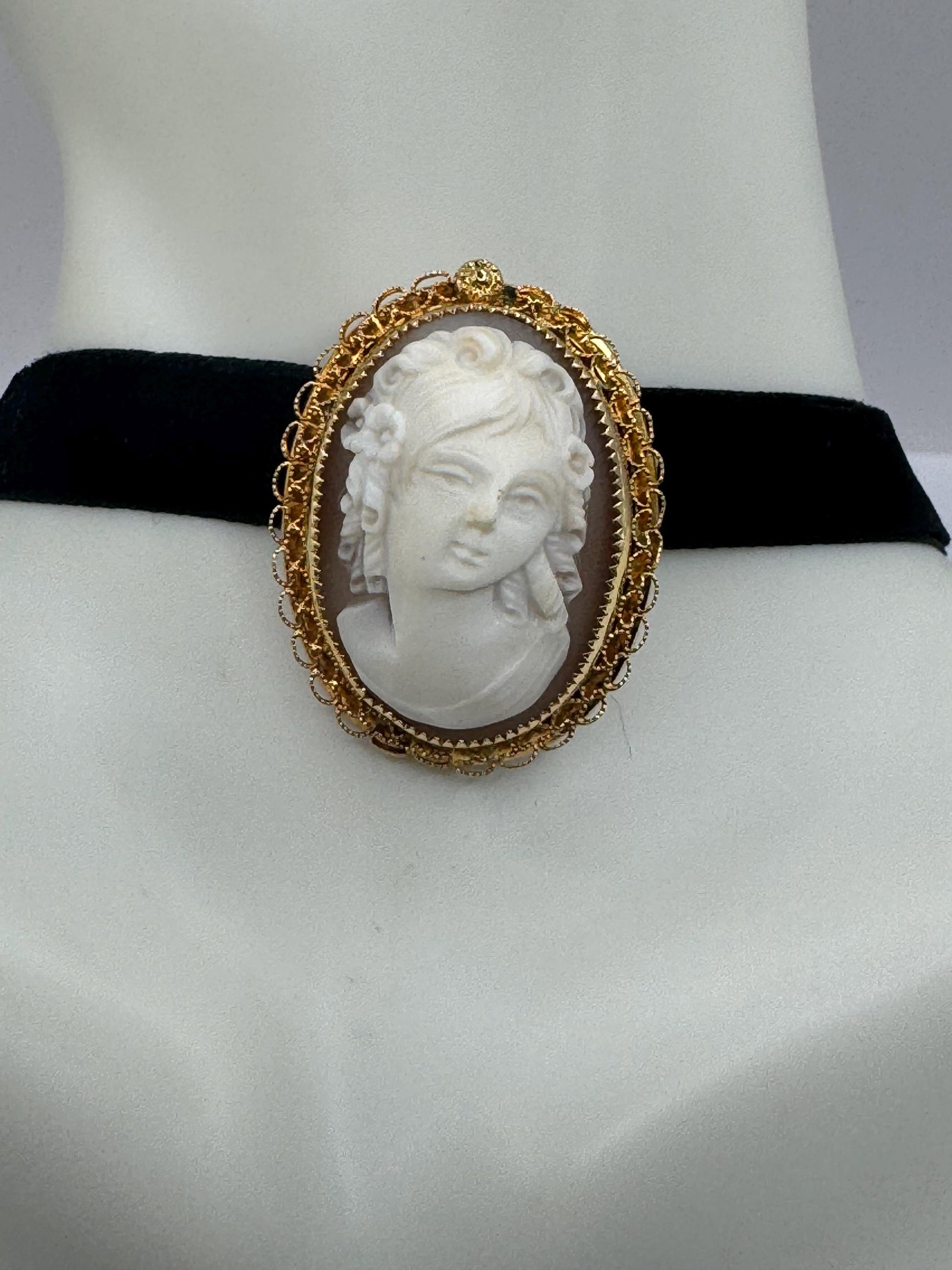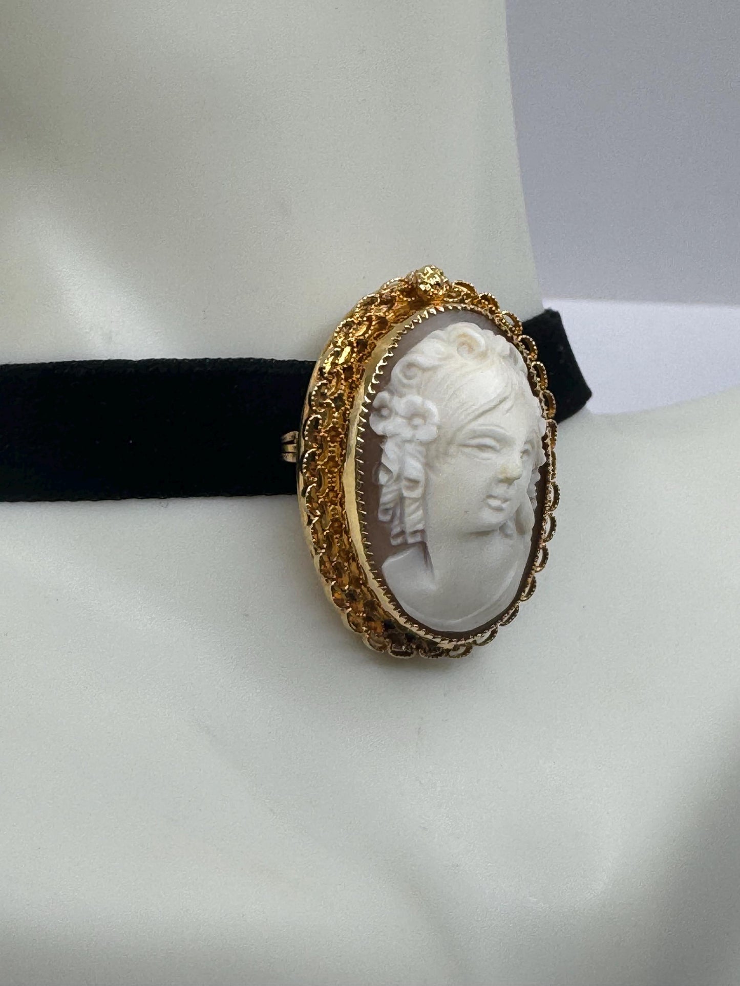 Vintage Shell Cameo Yellow Gold Finished Brooch Pin