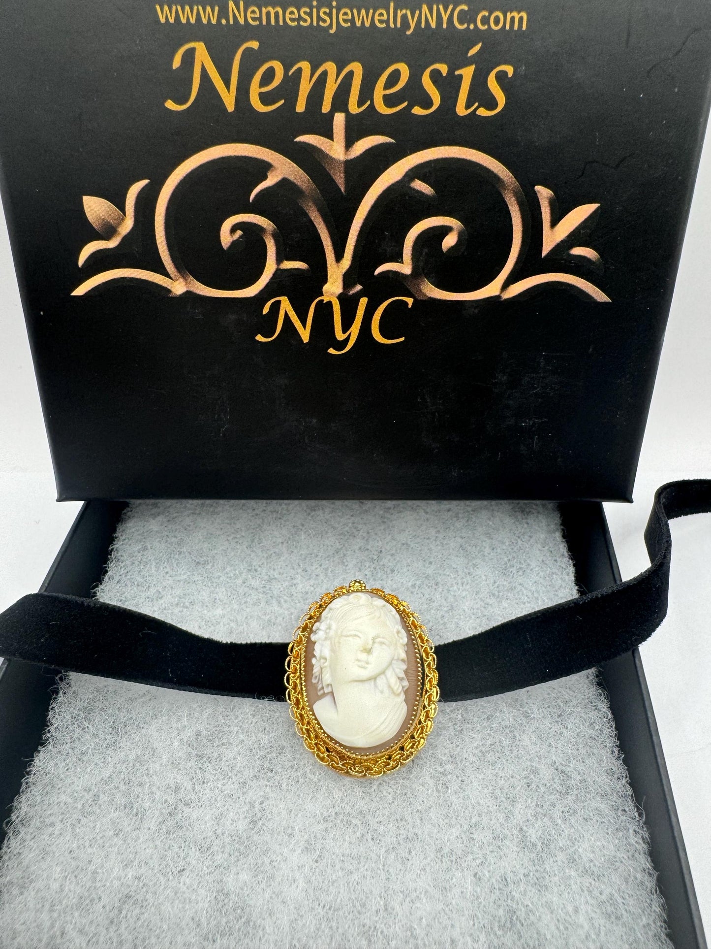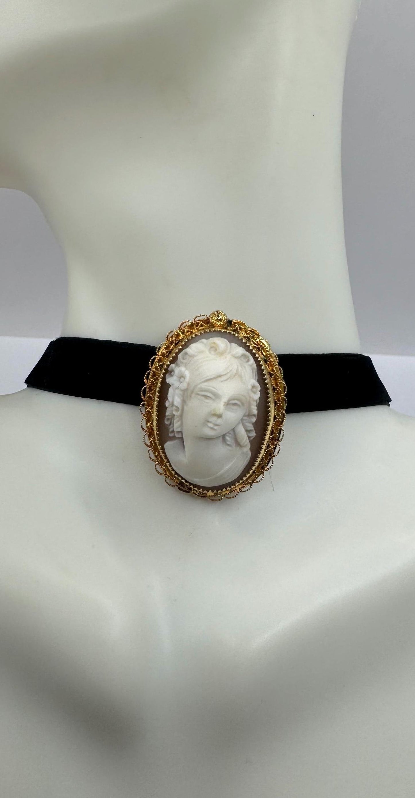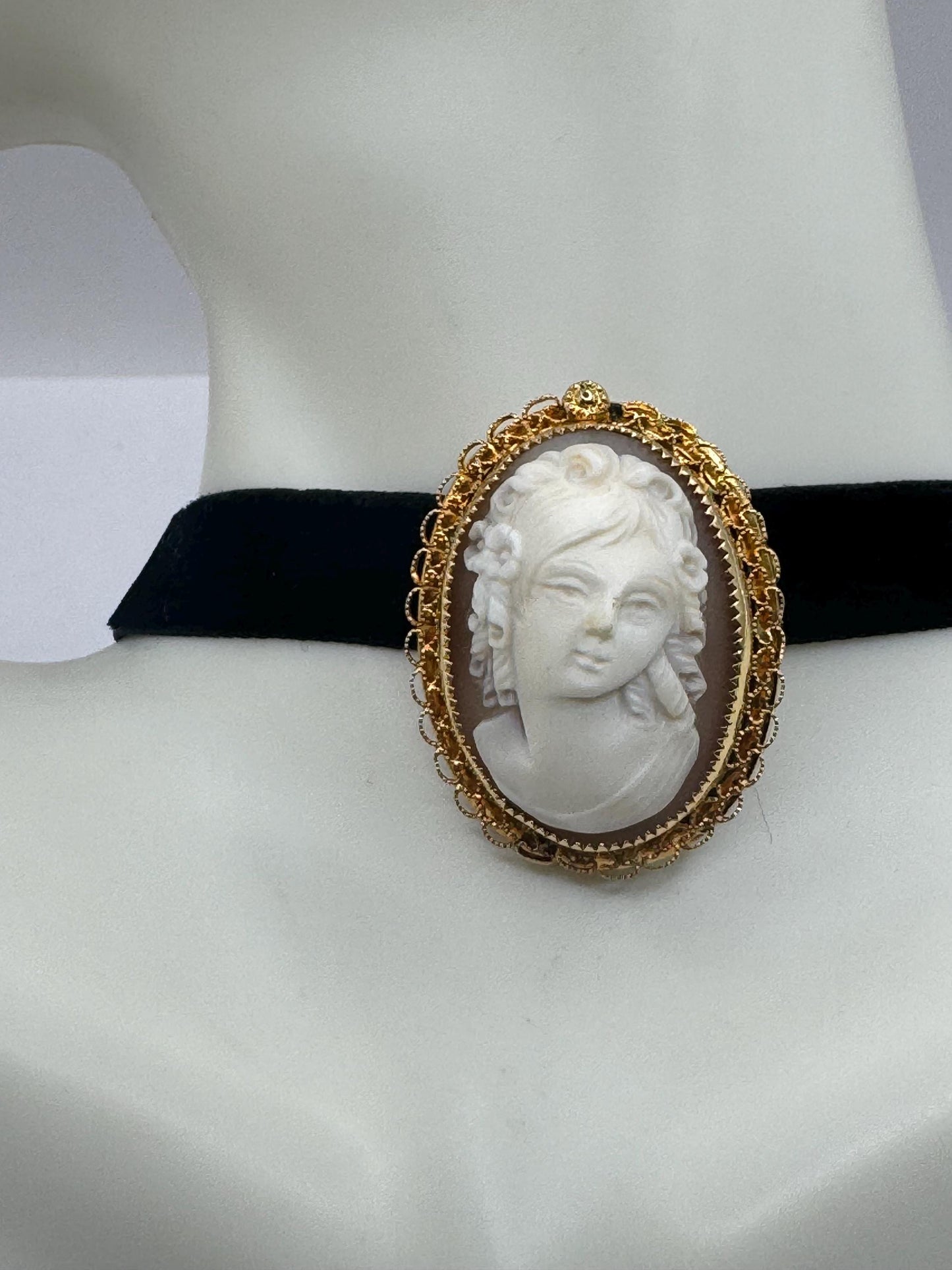 Vintage Shell Cameo Yellow Gold Finished Brooch Pin