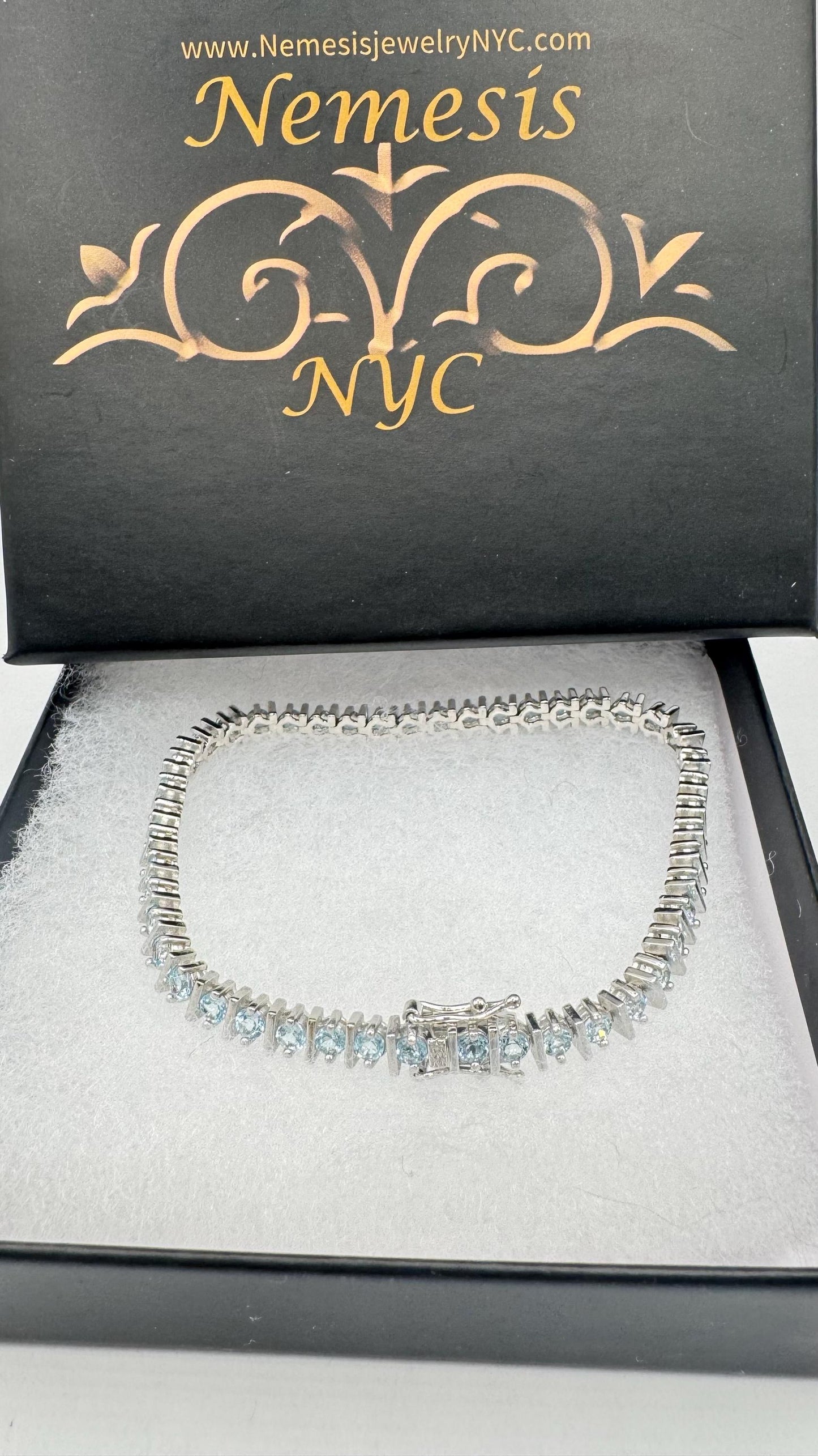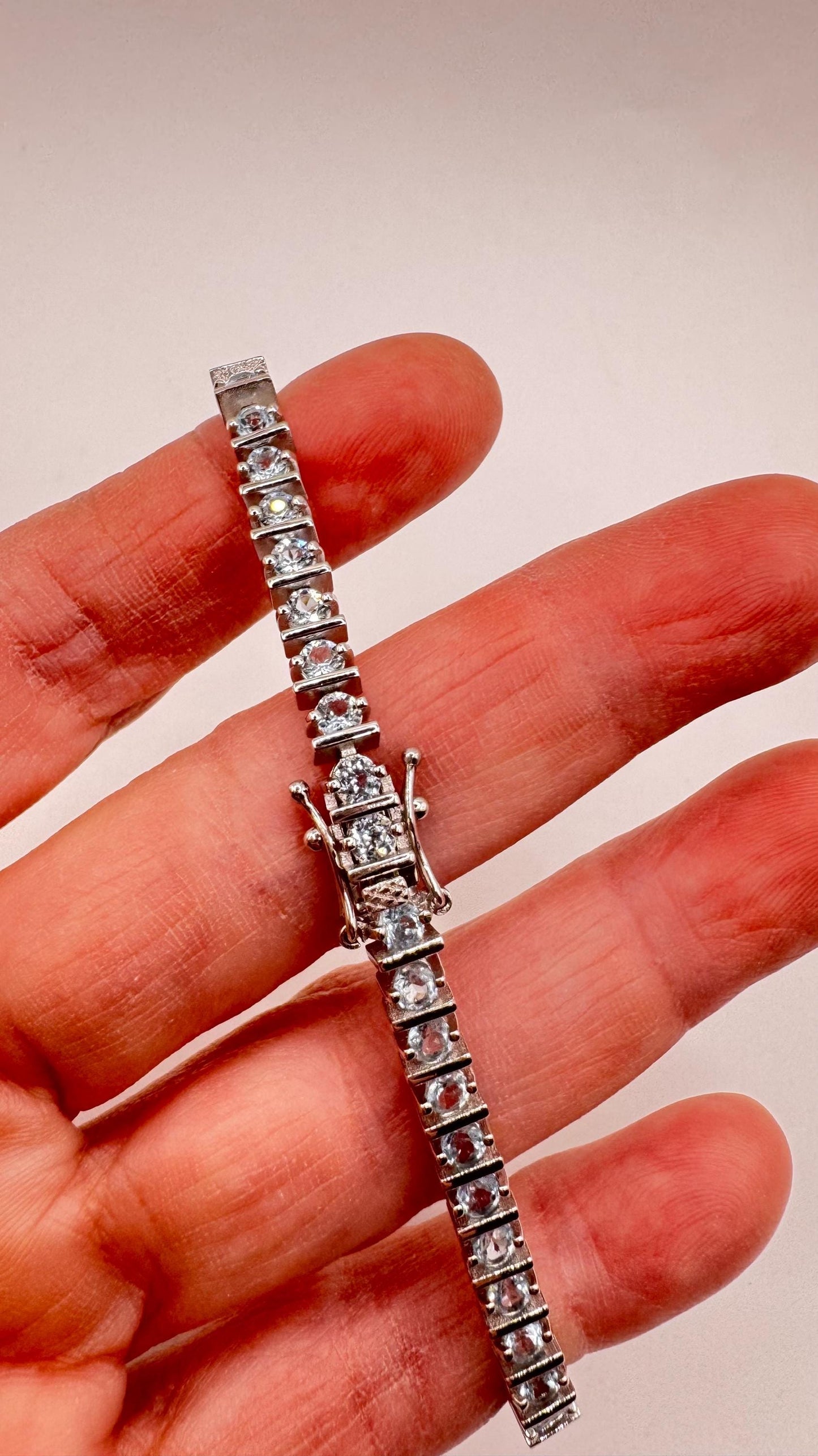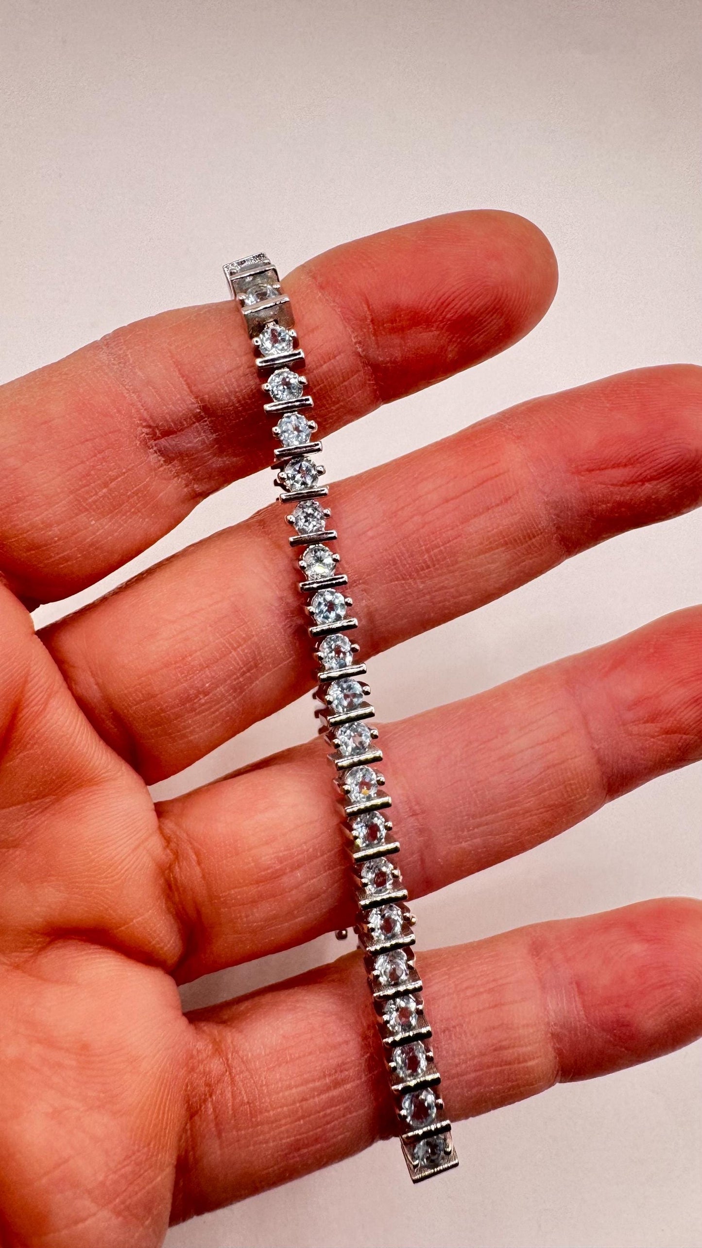 Vintage Silver Tennis Bracelet | Blue Topaz 925 Sterling Silver Tennis Bracelet