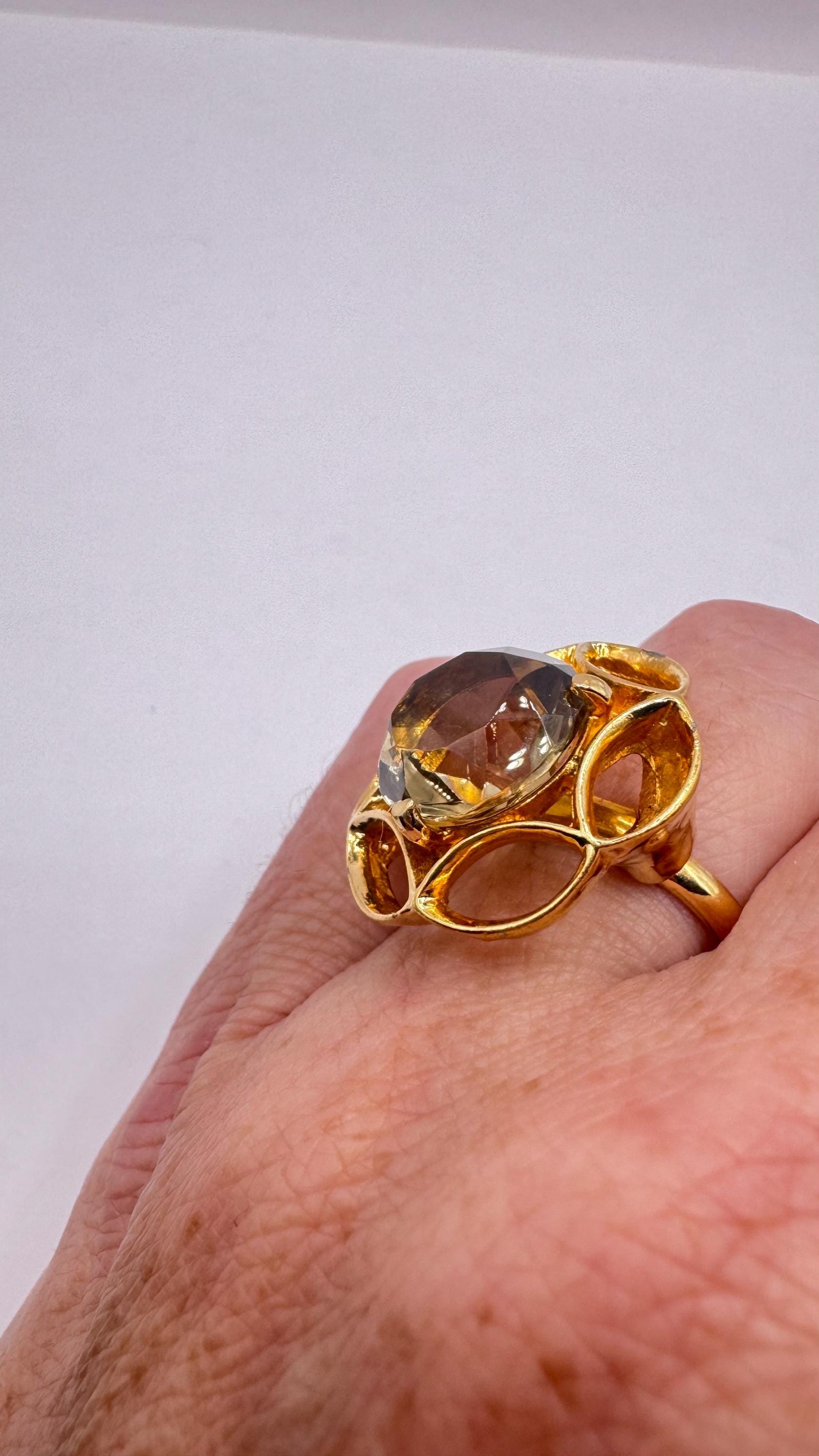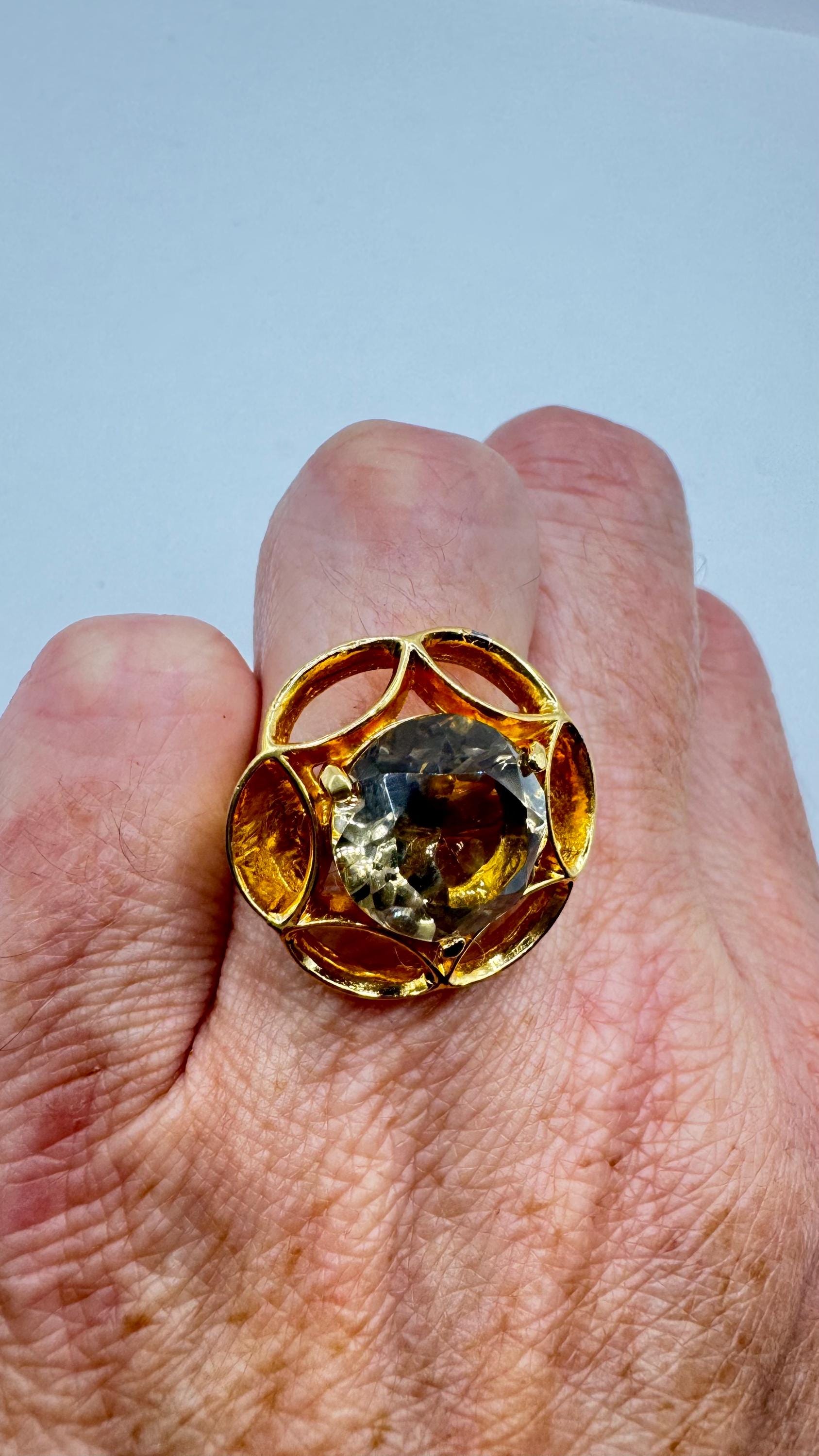 Vintage Smoky Topaz Gold filled cocktail ring