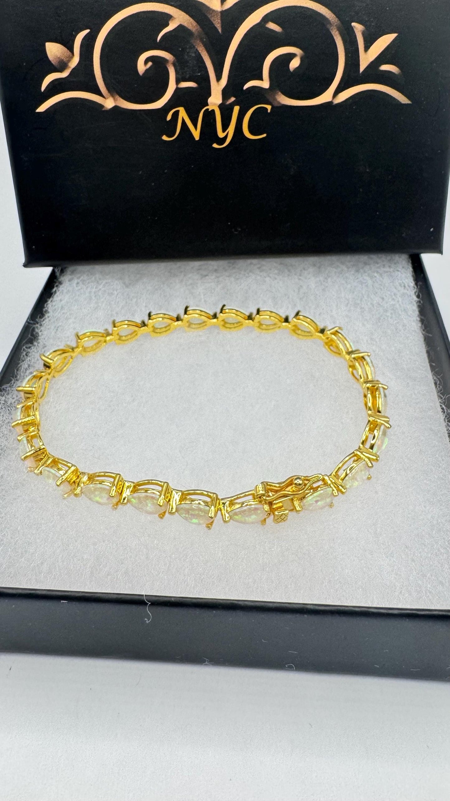 Vintage White Fire Opal Bracelet 925 Sterling Silver