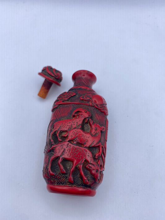 Vintage Rams Bottle Snuff Perfume Flask Cinnabar Resin