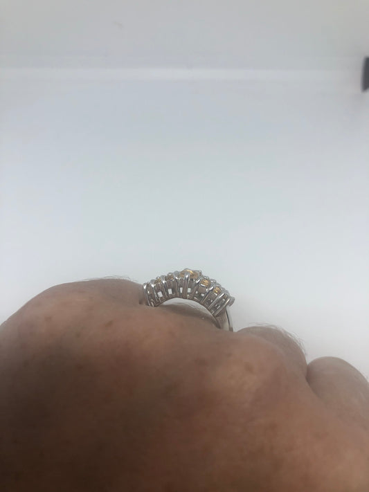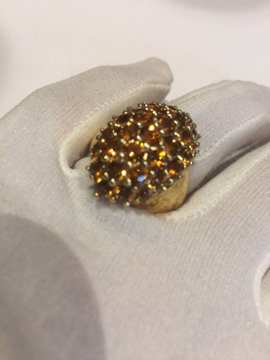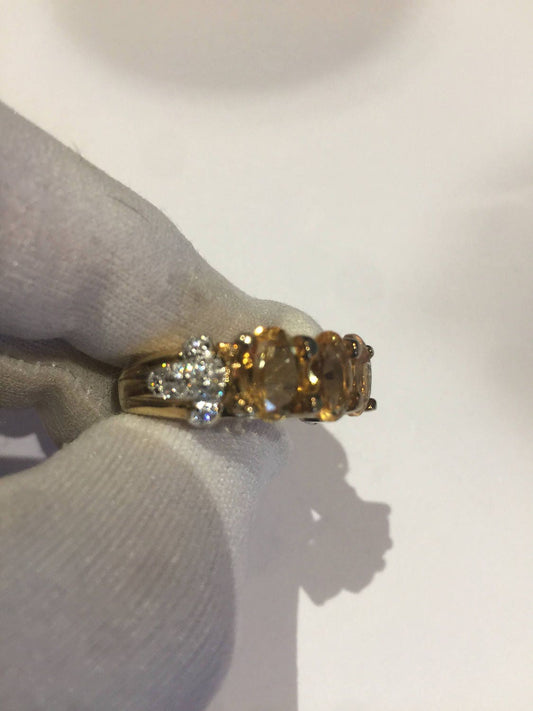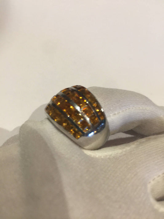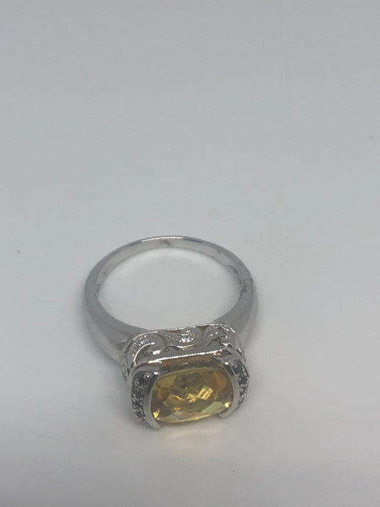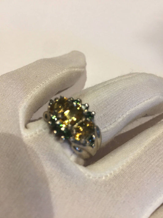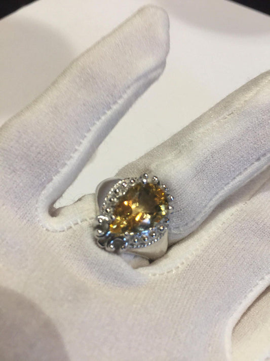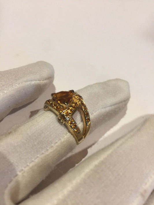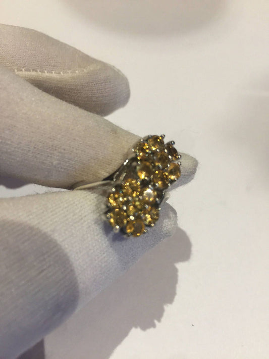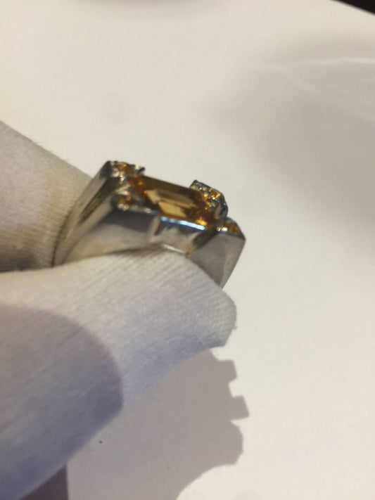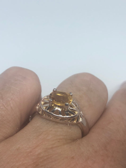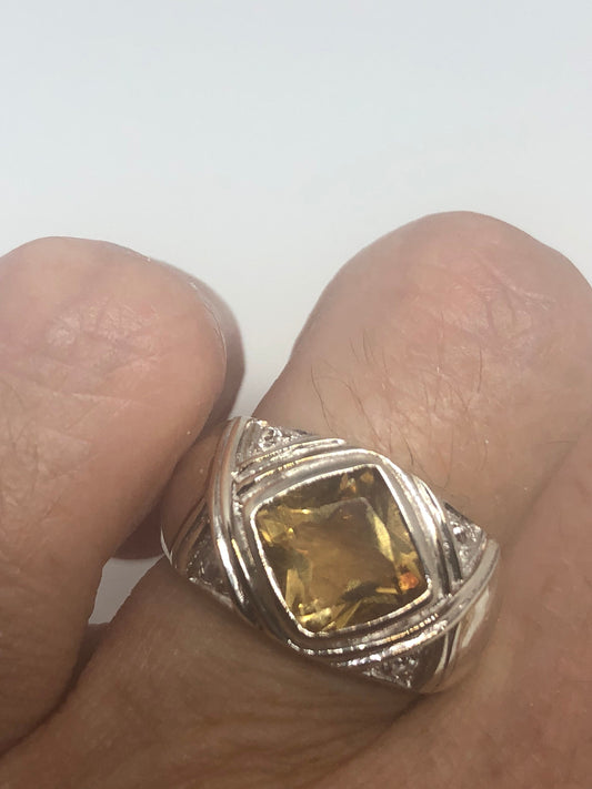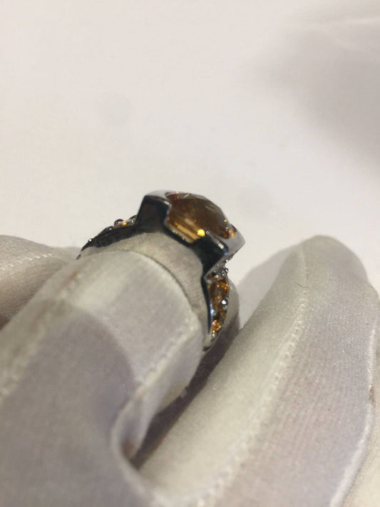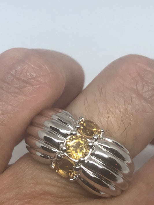 Vintage Handmade Golden Genuine Citrine 925 Sterling Silver Gothic Ring