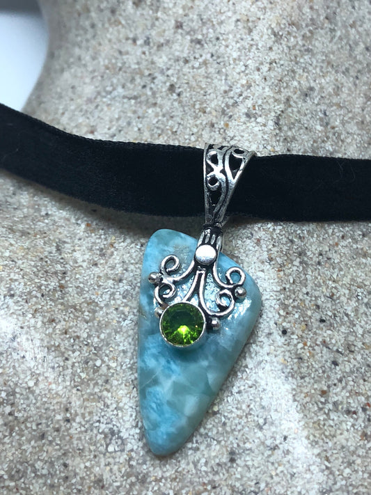 Vintage Handmade Silver Genuine Peridot and Amazonite Pendant