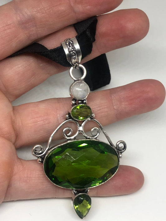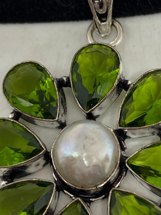 Vintage Handmade Silver Genuine Peridot and Vintage Peridot Glass Pendant