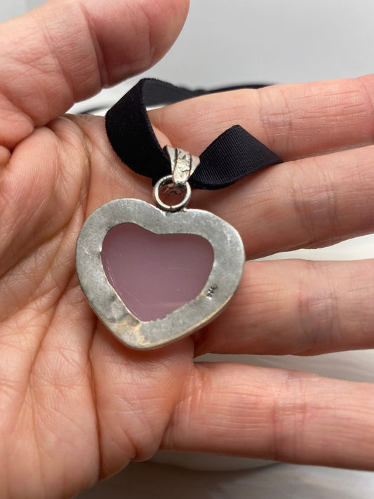 Vintage Handmade Silver Finish Rose Quartz Heart Choker Pendant