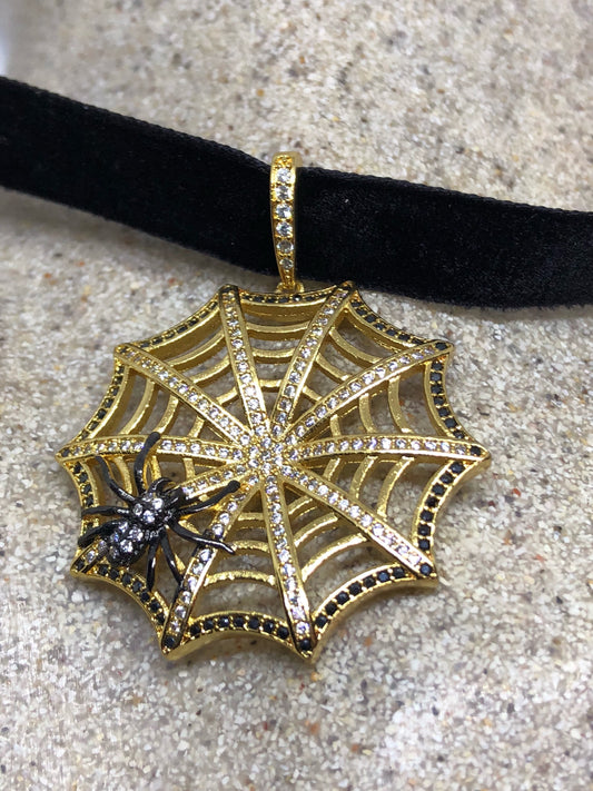 Vintage Handmade Spider web Amulet Gold White Bronze Pendant