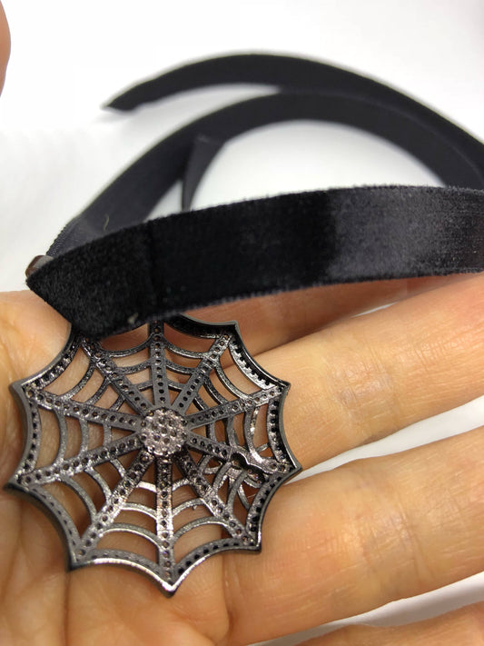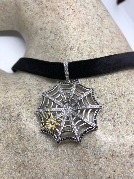 Vintage Handmade Spider web Amulet Silver White Bronze Pendant