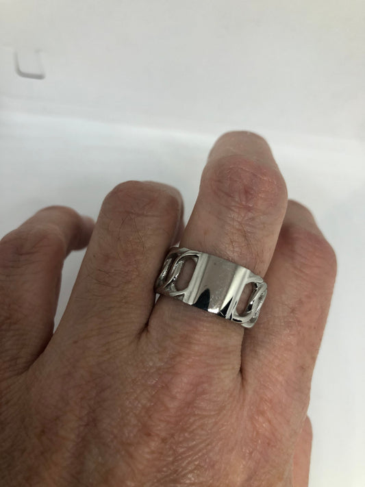 Vintage Insignia Signet Stainless Steel Band Infinity Ring