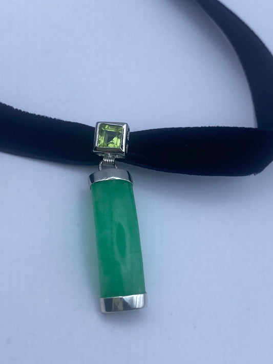 Vintage Jade Peridot Choker 925 Sterling Silver Pendant