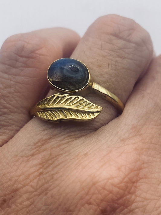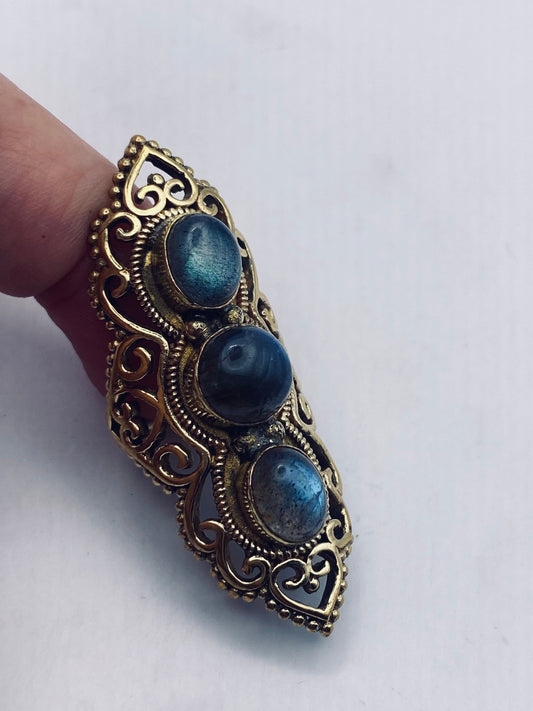 Vintage Labradorite Gold Bronze Cocktail Ring