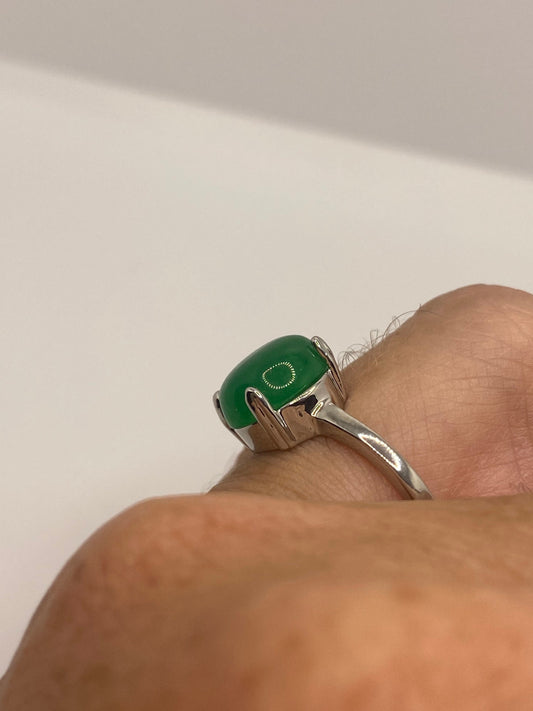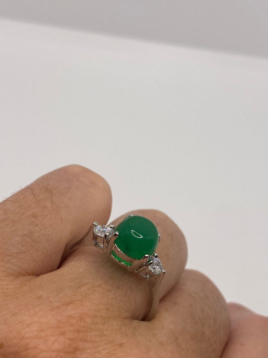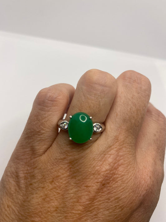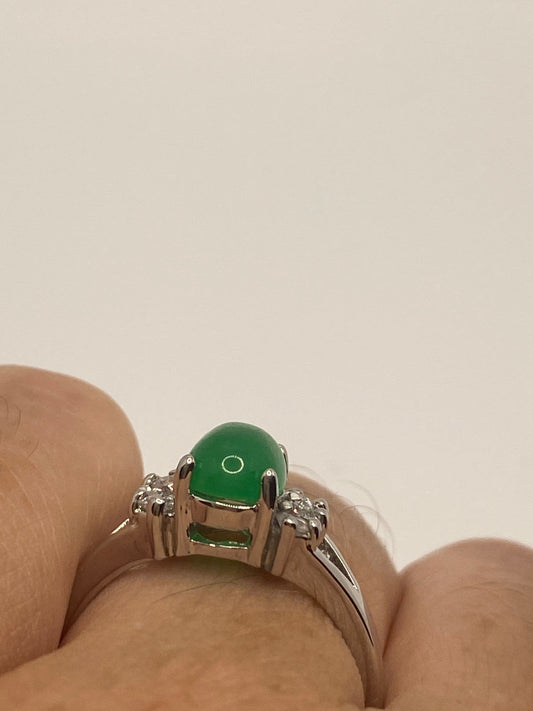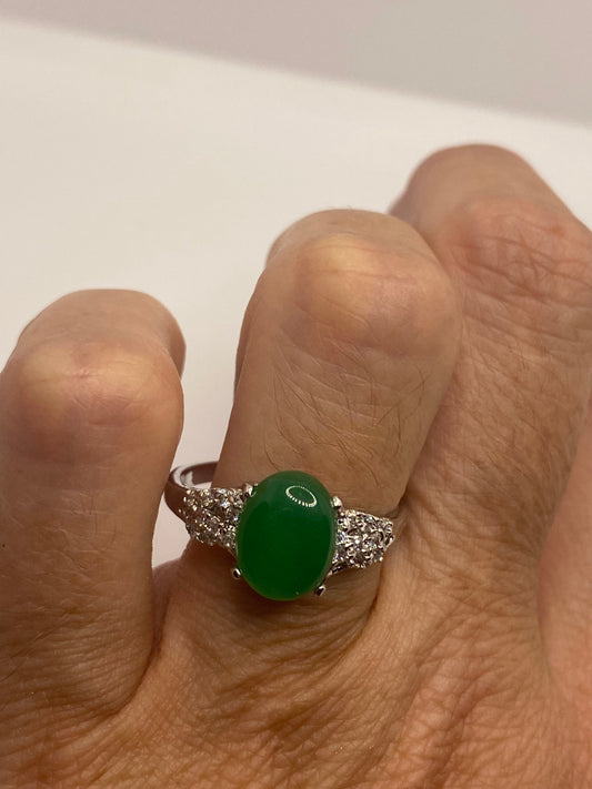 Vintage Lucky Green Nephrite Jade Cocktail Ring