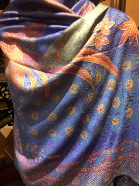 Vintage Peacock feather Brocade Pashmina Scarf Wrap Shawl
