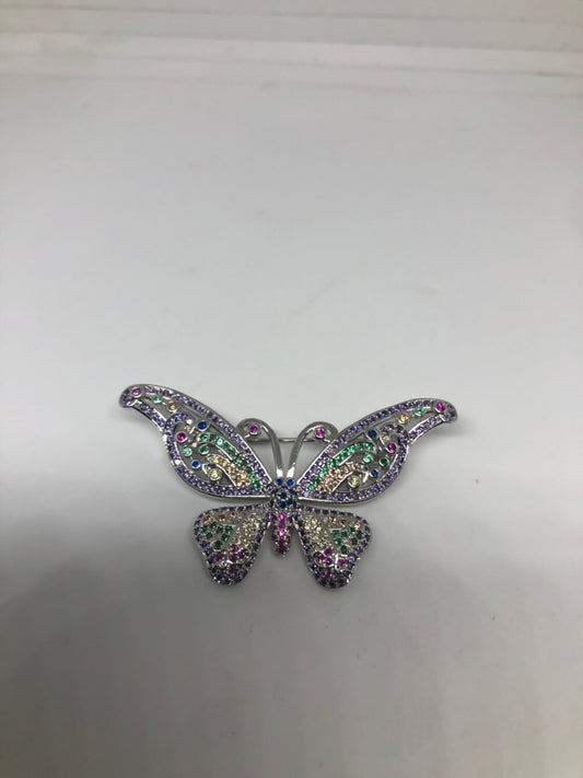 Vintage pastel Crystal Gothic Styled Silver Finished Butterfly Broach