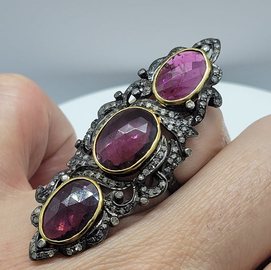 Vintage Pink Tourmaline with Diamond in 925 Sterling Silver and 18k Gold Ring Revival Collection