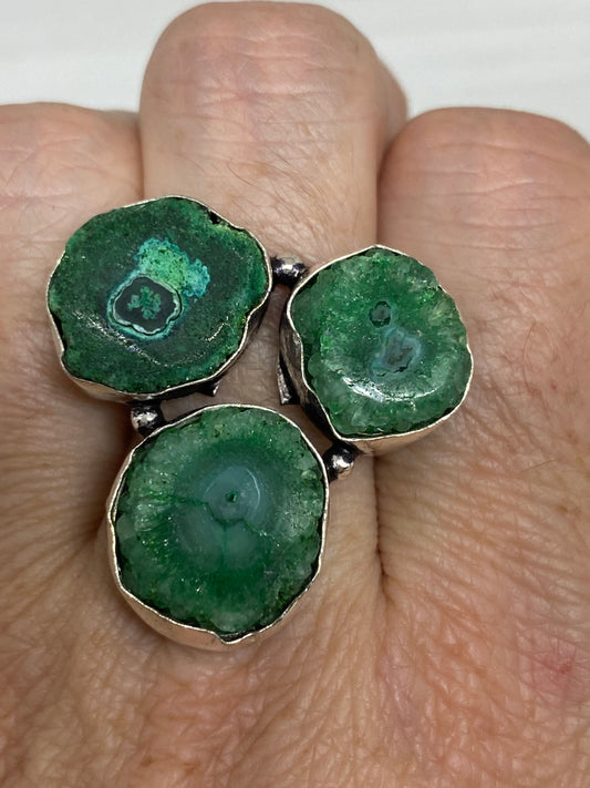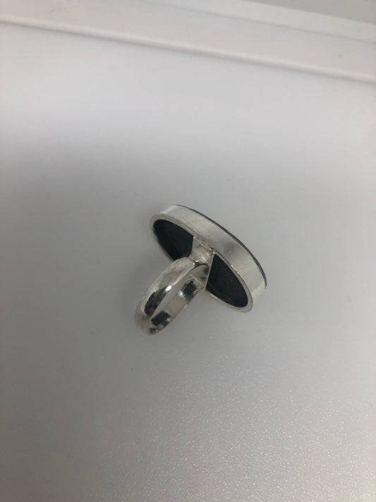 Antique Red Cinnabar Statement Ring 925 sterling silver size 8 1/2