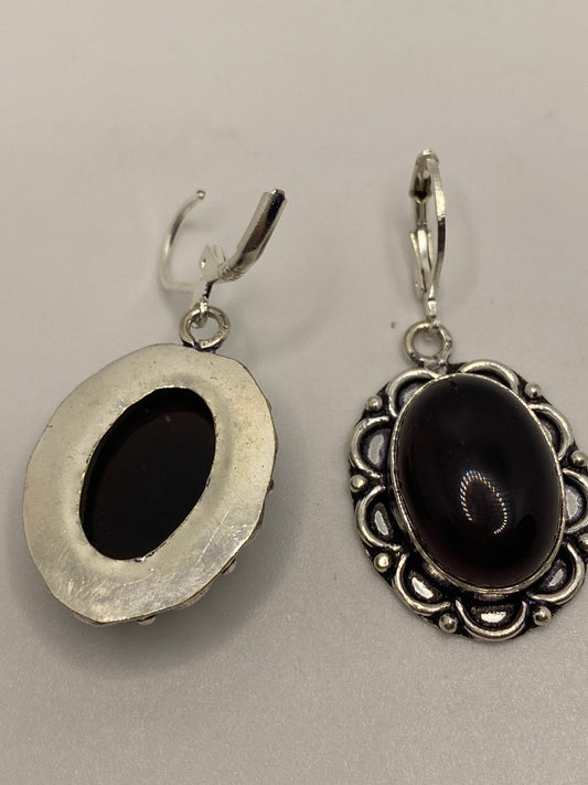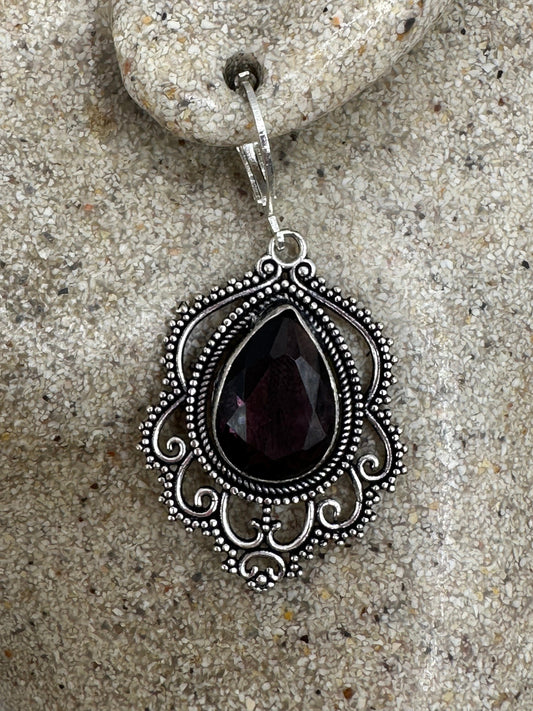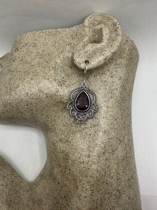 Antique Vintage Amethyst Glass Silver Dangle Earrings
