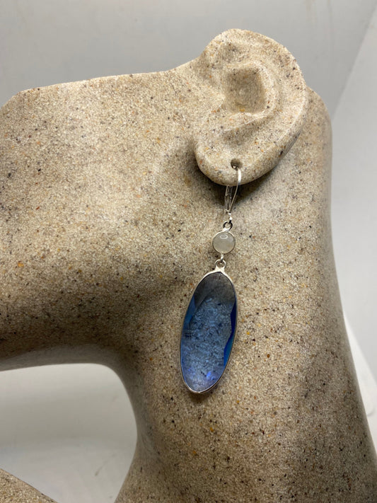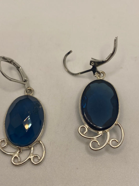 Antique Vintage Aqua Blue Volcanic Glass Silver Dangle Earrings