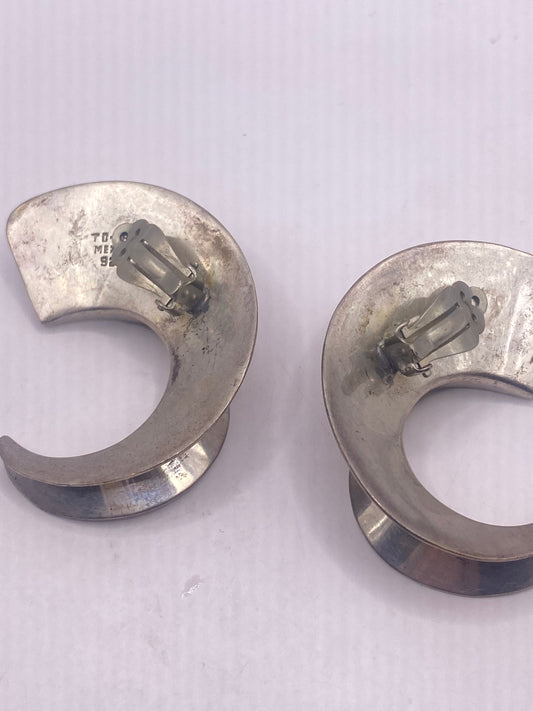 Antique Vintage 925 Sterling Silver Clip On button Earrings