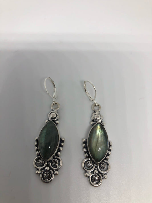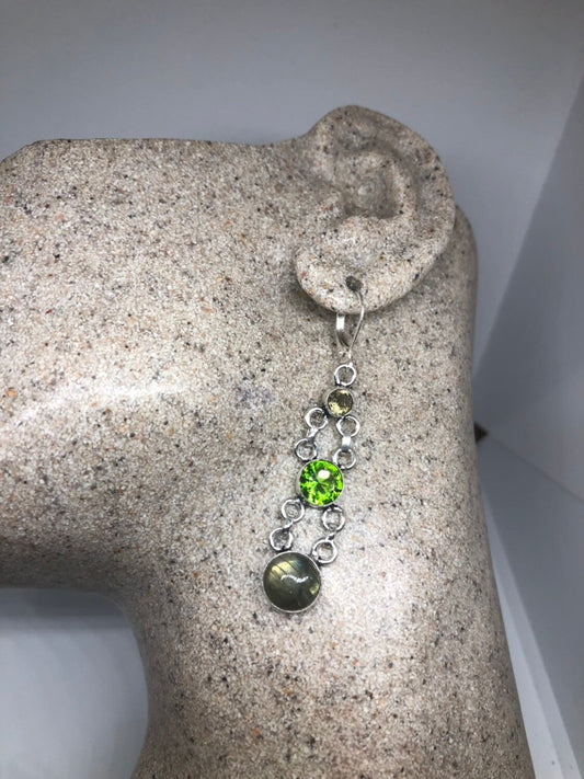 Vintage Rainbow Labradorite Peridot Earrings Silver Dangle 925 Sterling Silver Leverbacks