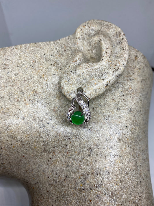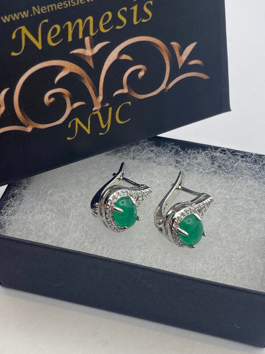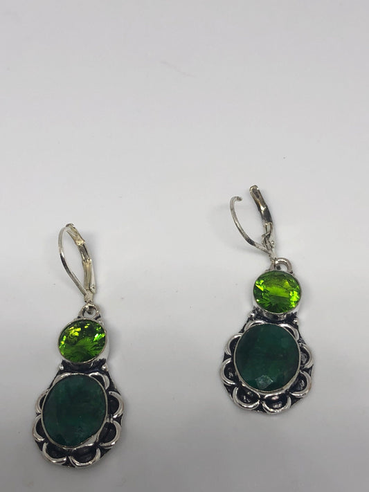 Antique Vintage Green Peridot Color Treated Emerald Silver Dangle Earrings