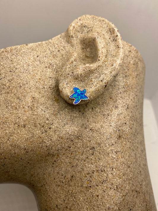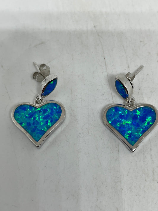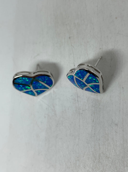 Vintage Blue OpalHEart Earrings 925 Sterling Silver Stud Button