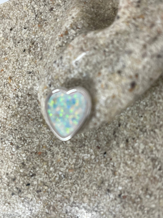 Vintage White Opal HEart Earrings 925 Sterling Silver Stud Button