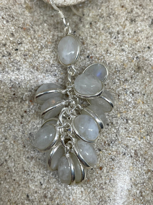 Vintage Rainbow Moonstone Sterling Silver Lever Back Dangle Earrings