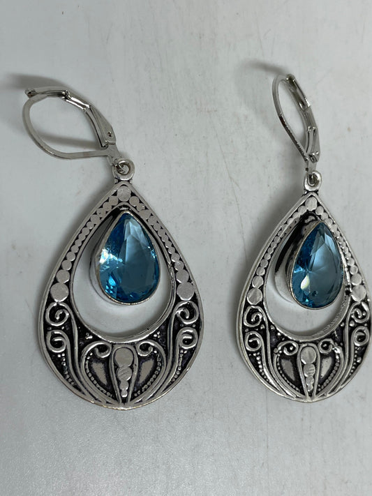 Vintage Genuine Blue Topaz 925 Sterling Silver Lever Back Earrings